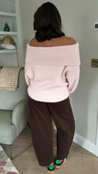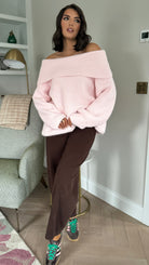 Kimberleigh Pink Ribbed Off The Shoulder Jumper
