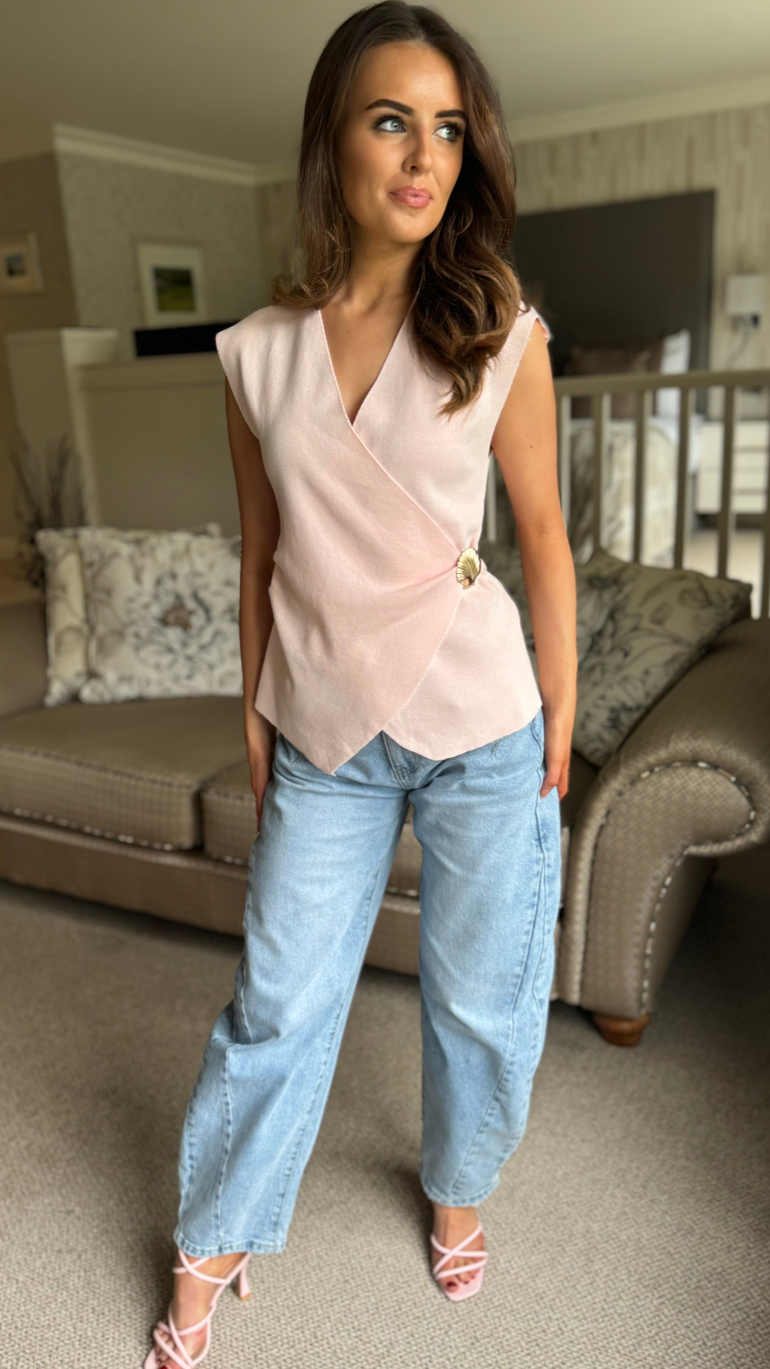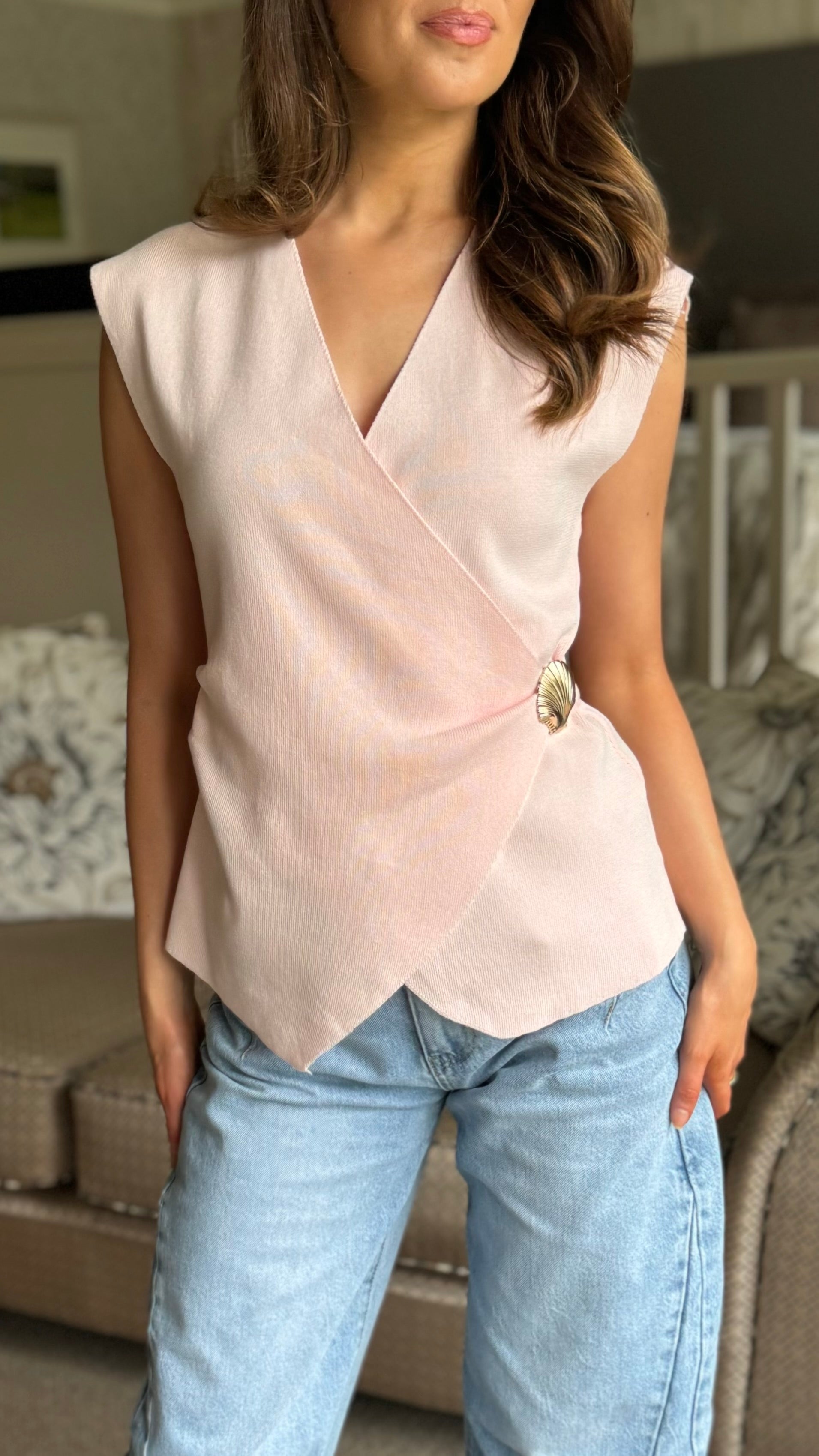 ✨ Layer up with effortless elegance! This crisp pink knit waistcoat features delicate shell detailing that adds a touch of seaside charm to any outfit. Perfect for elevating your everyday look or dressing up for something special. Cosy, chic, and endlessly versatile.