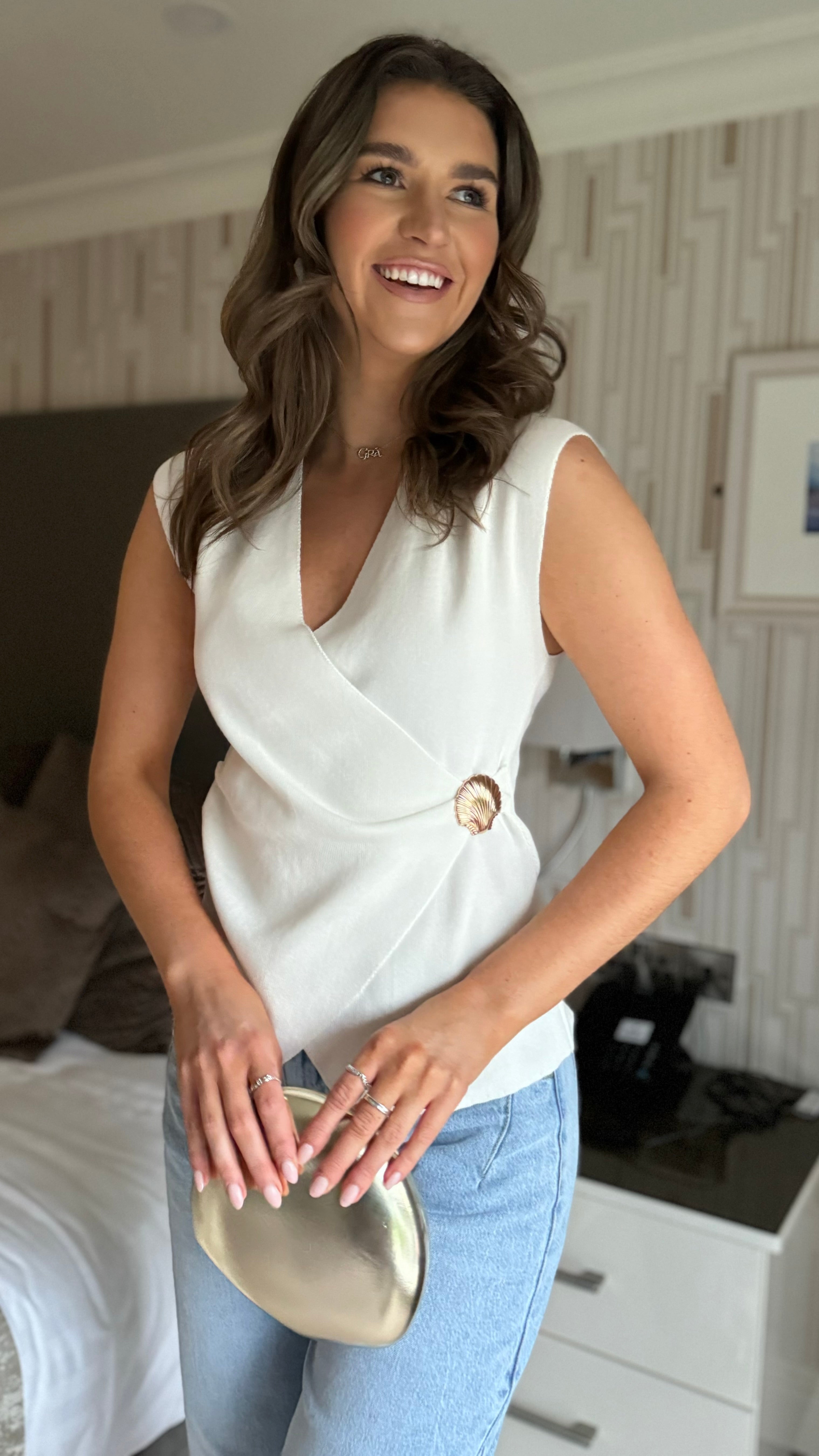 ✨ Layer up with effortless elegance! This crisp white knit waistcoat features delicate shell detailing that adds a touch of seaside charm to any outfit. Perfect for elevating your everyday look or dressing up for something special. Cosy, chic, and endlessly versatile.