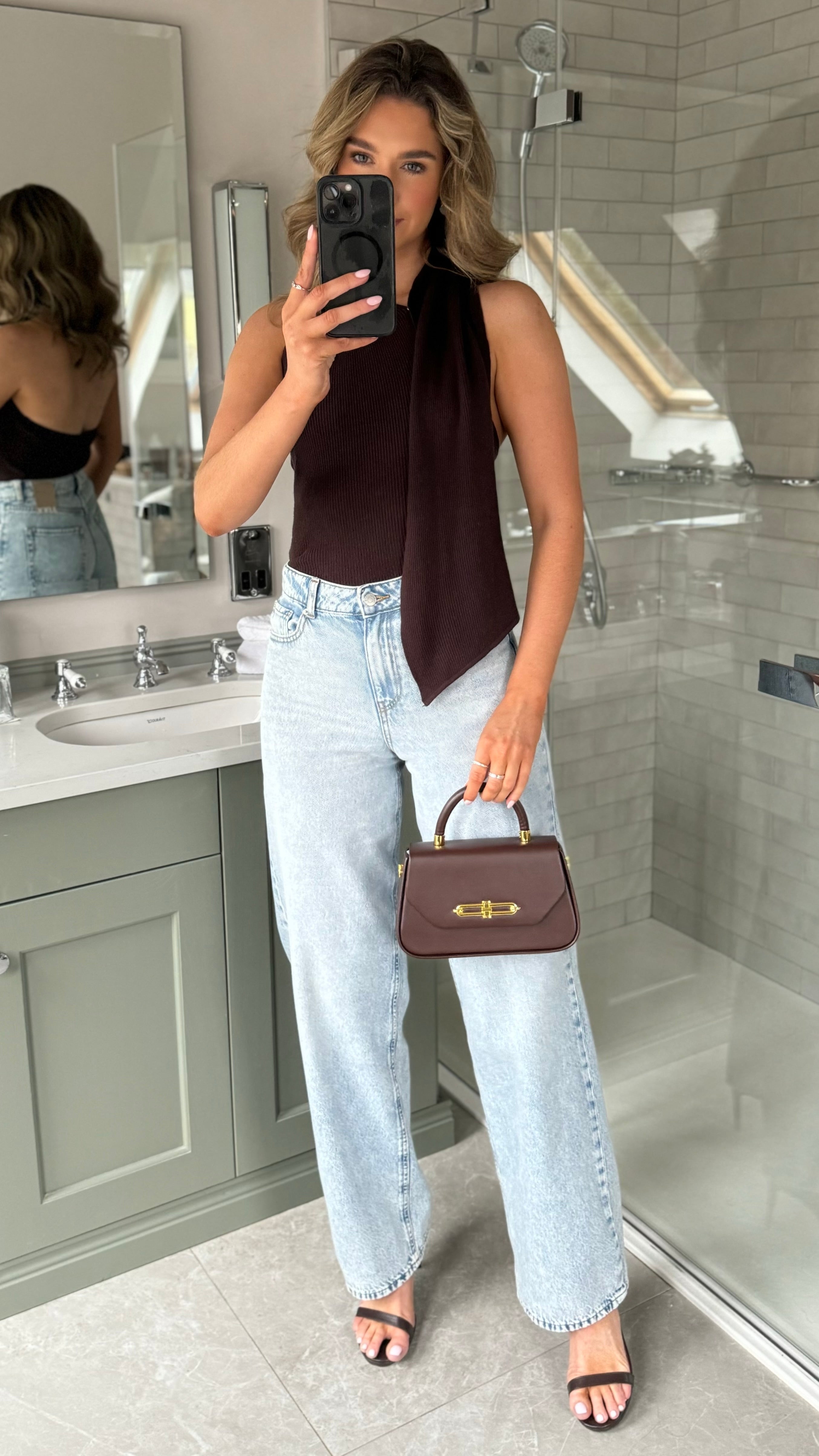 Elevate your everyday look with this chic knitted top featuring a scarf-style halterneck detail in gorgeous gold tones. The delicate knit fabric drapes beautifully, creating an effortlessly sophisticated silhouette that works equally well dressed up for nights out or layered casually during the day. Perfect for adding a touch of glamour to your wardrobe without the fuss.