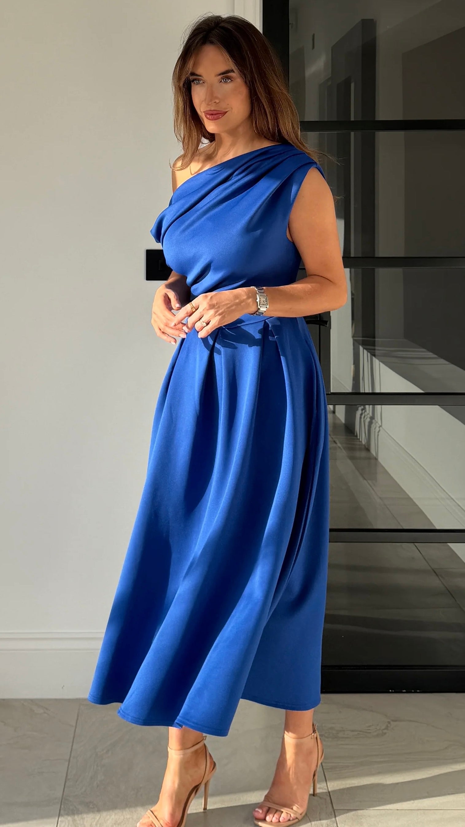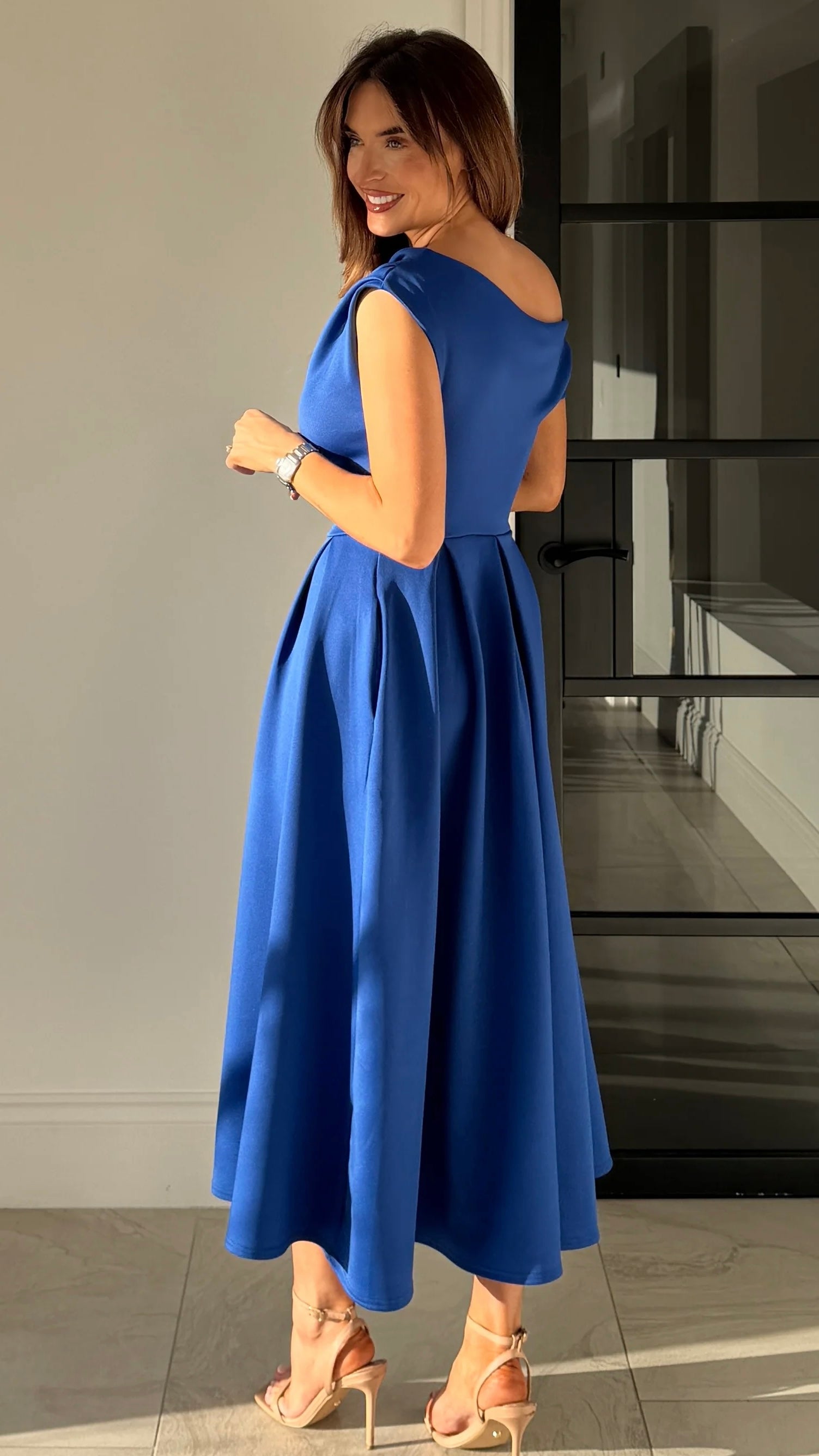 Turn heads with the Jezebel Blue Asymmetric Neck Skater Dress. Featuring a fun asymmetric neckline and a flattering skater skirt, it brings playful charm to any occasion. The concealed zip fastening keeps your silhouette sleek, while handy pockets add a touch of practicality to this flirty, vibrant dress. Perfect for dancing the night away or a spontaneous adventure!