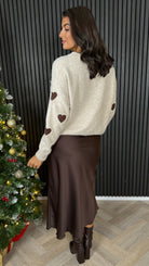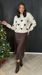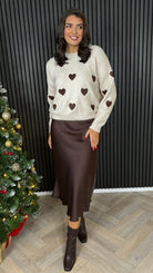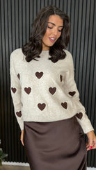 Austen Beige & Brown Heart Print Round Neck Jumper