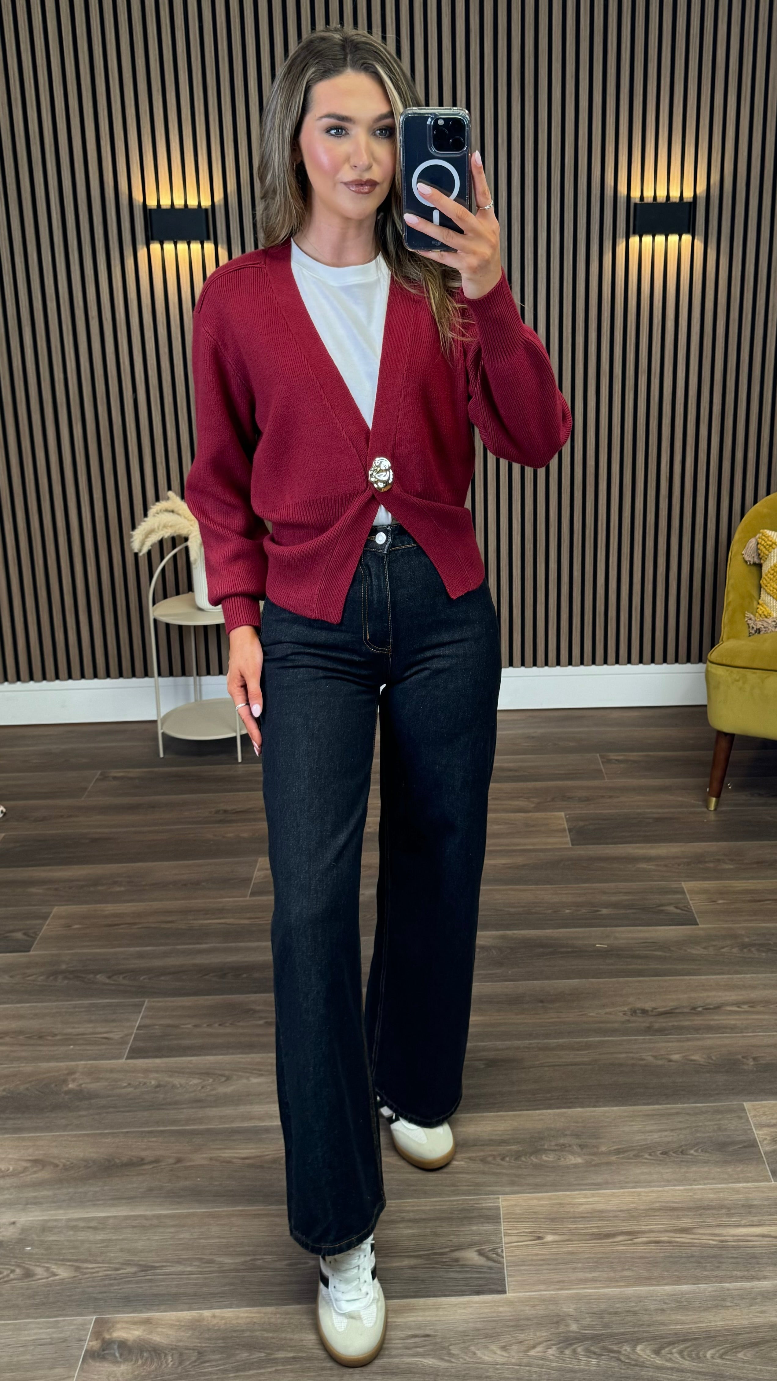 Cosy up in the Brinley Burgundy Gold Button Cardigan 🍂✨! This vibrant burgundy piece shines with fun gold buttons, making every outfit pop. Perfect for layering those chillier days, it’s your new go-to for warmth and style with a playful twist. Stay chic, comfy, and a little bit sparkly! 💖🧥