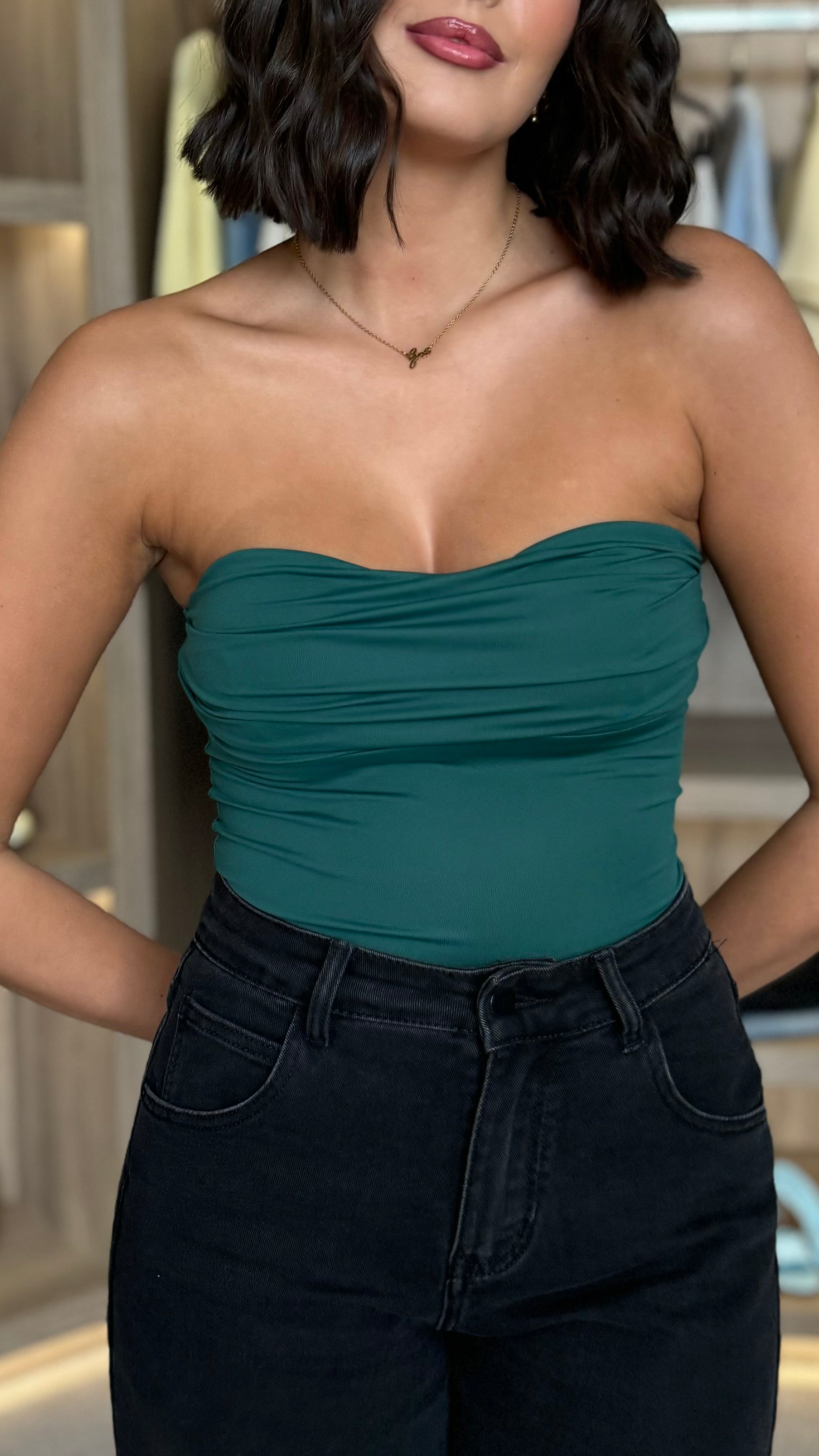Flynn Green Strapless Bustier Top