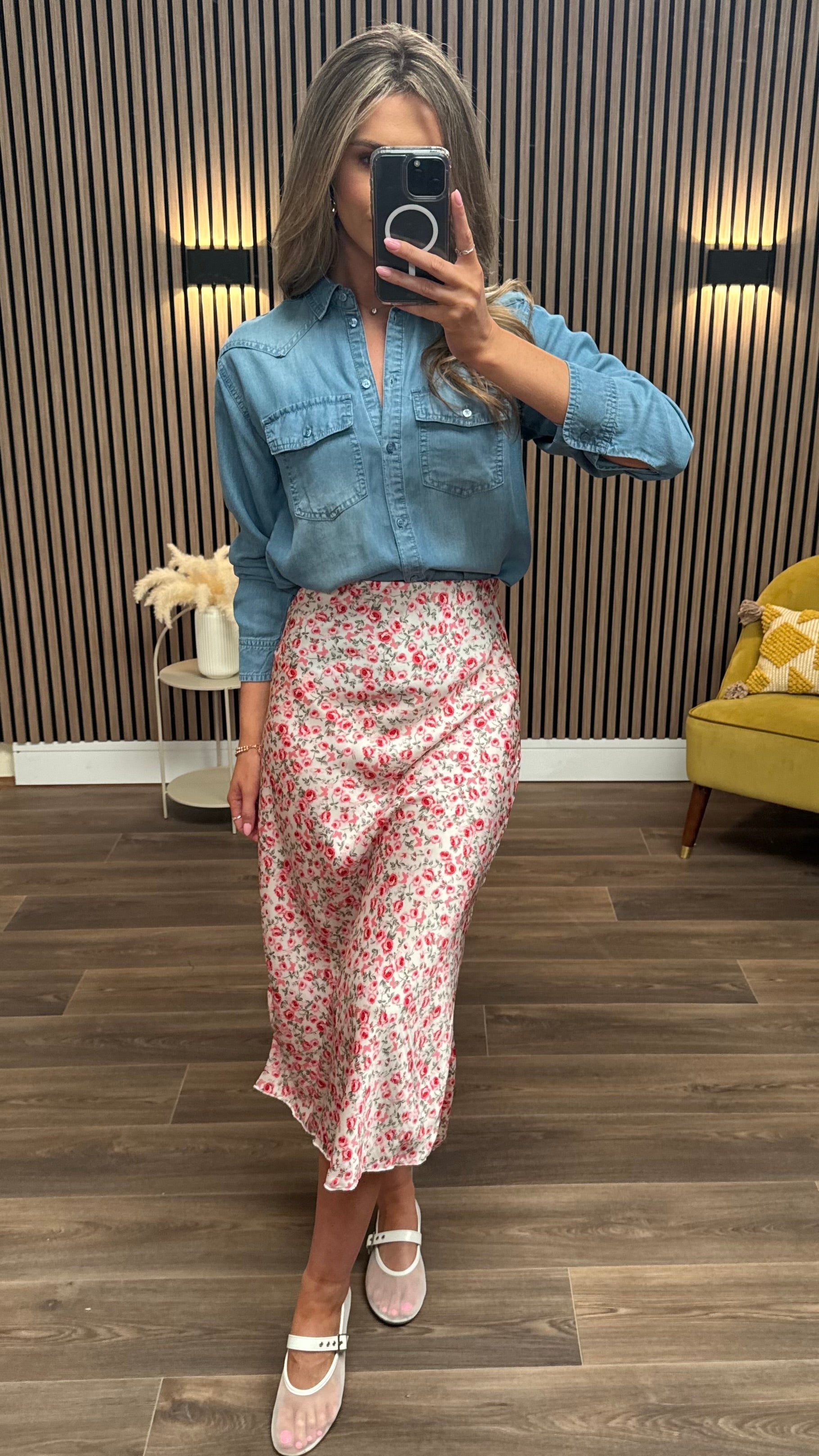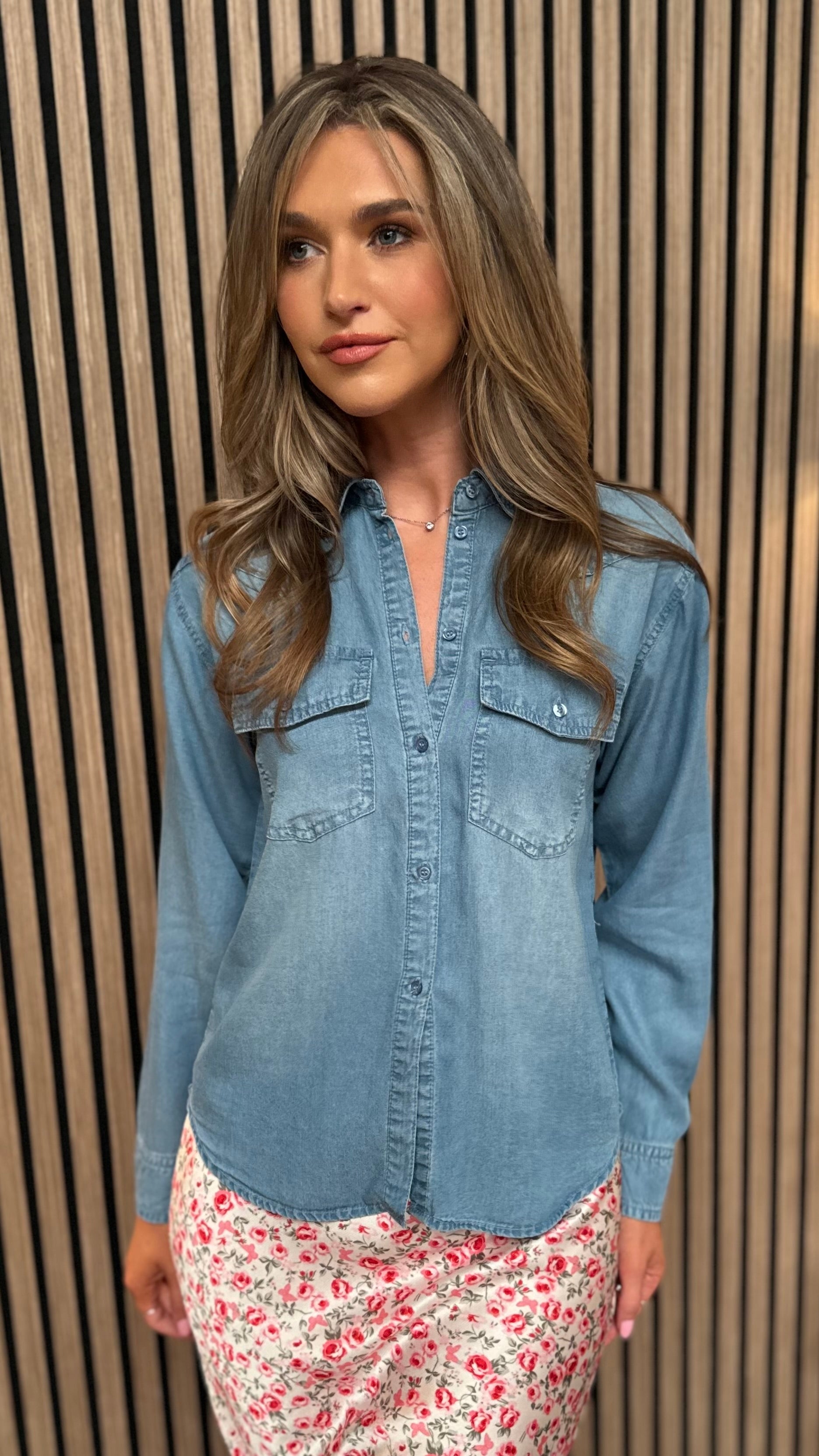 Add a playful touch to your wardrobe with the Orla Blue Long Sleeve Denim Shirt! This unique shirt features breast pockets and western style front yokes for added style. Perfect for casual outings or a night out on the town, this shirt is sure to make a statement. 😉