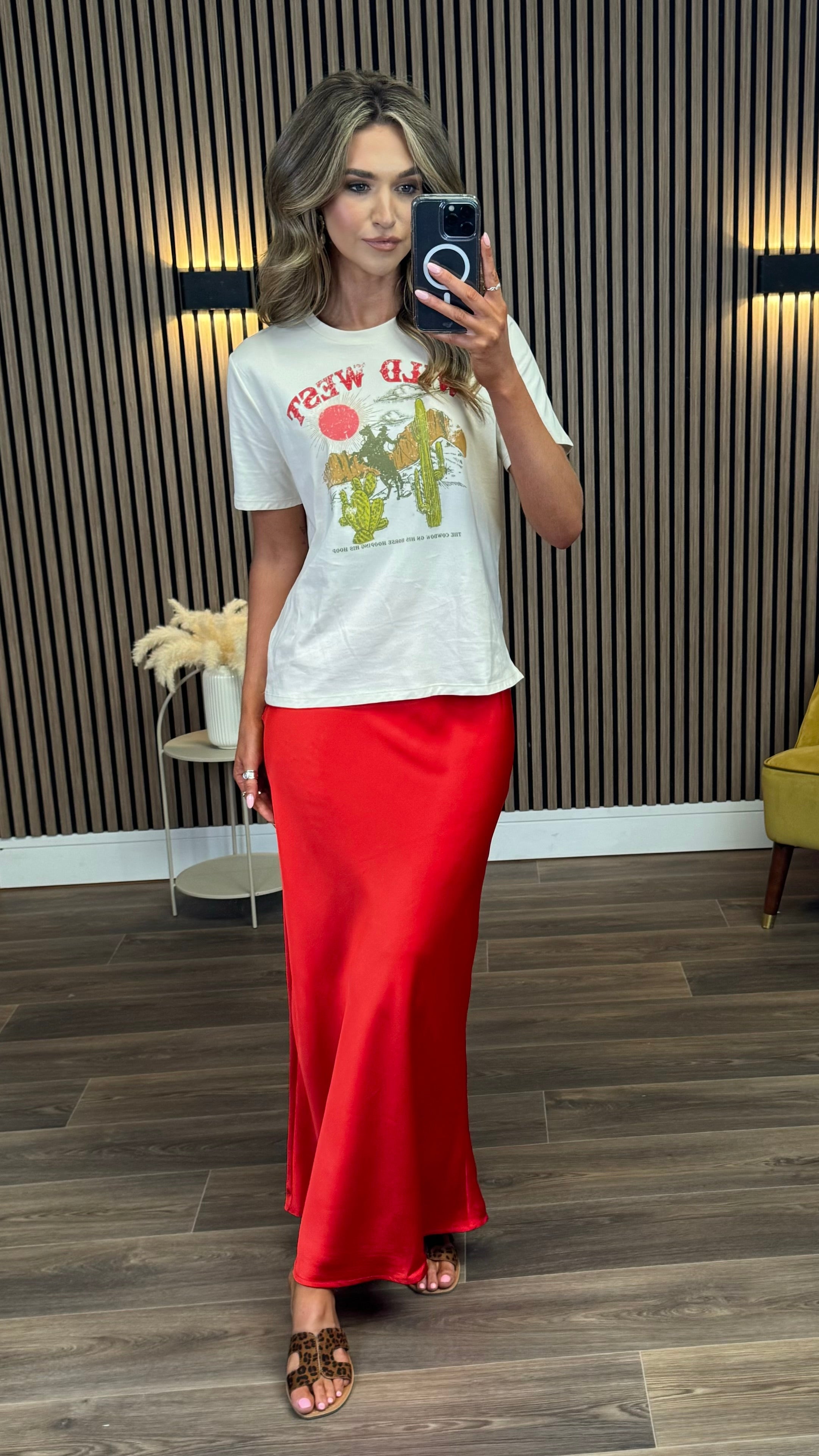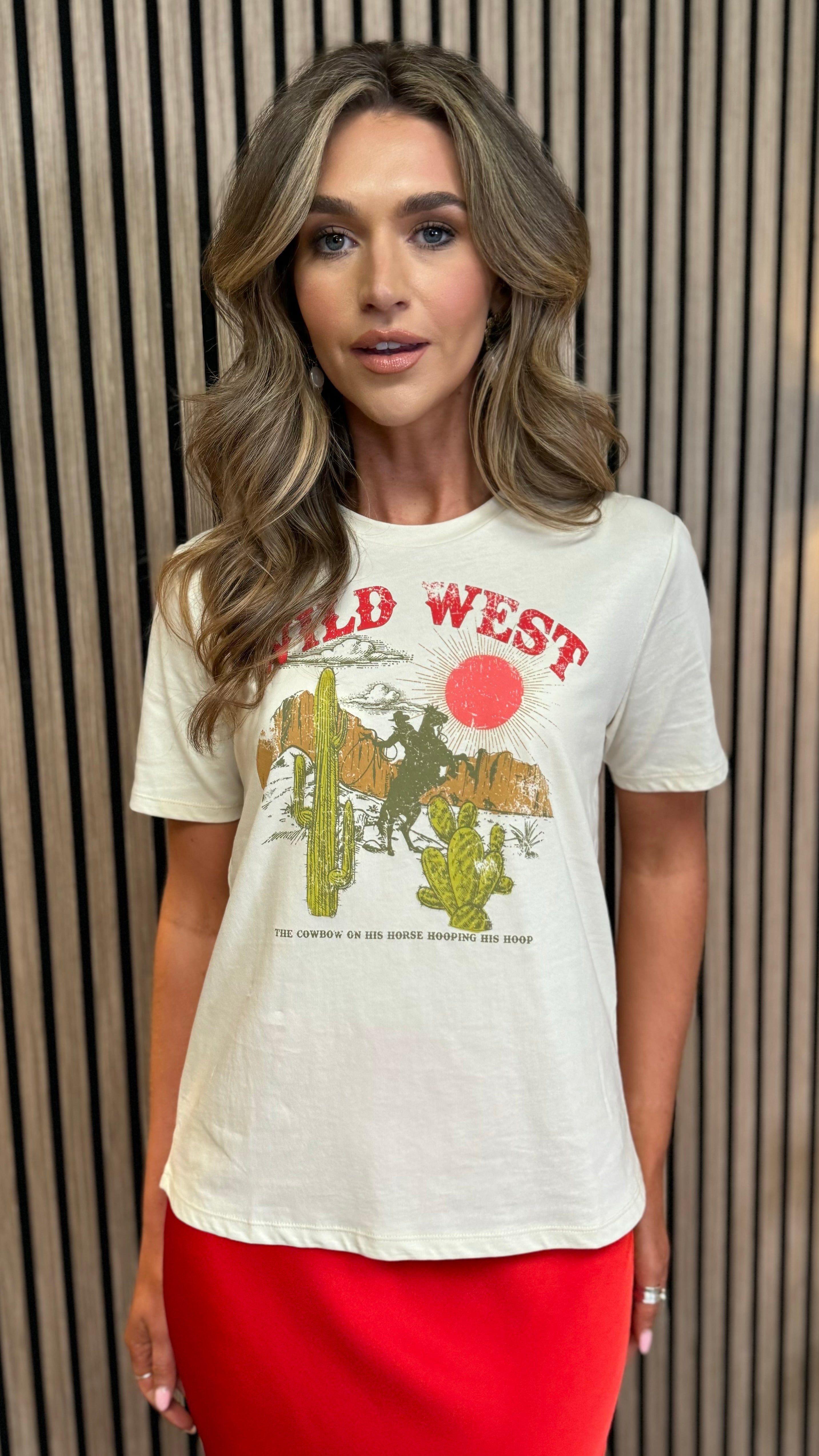Saddle up for style with our Paris Cream 'Wild West' Print T-Shirt! This playful tee combines frontier flair with fashion-forward design, featuring a rustic Western-inspired graphic on a soft cream backdrop. Perfect for casual adventures or adding a touch of cowboy cool to your everyday wardrobe. Giddy up and stand out from the herd!