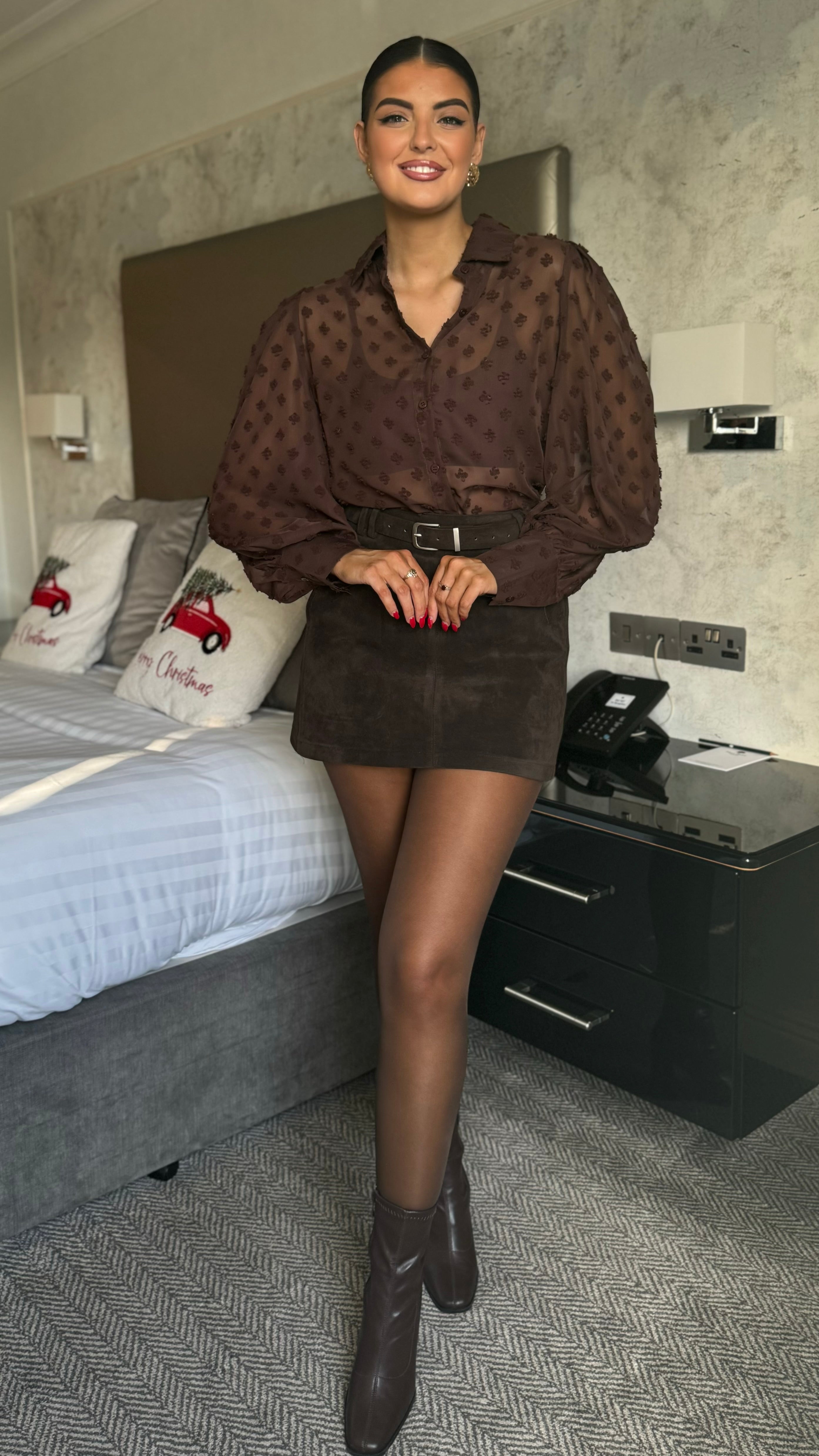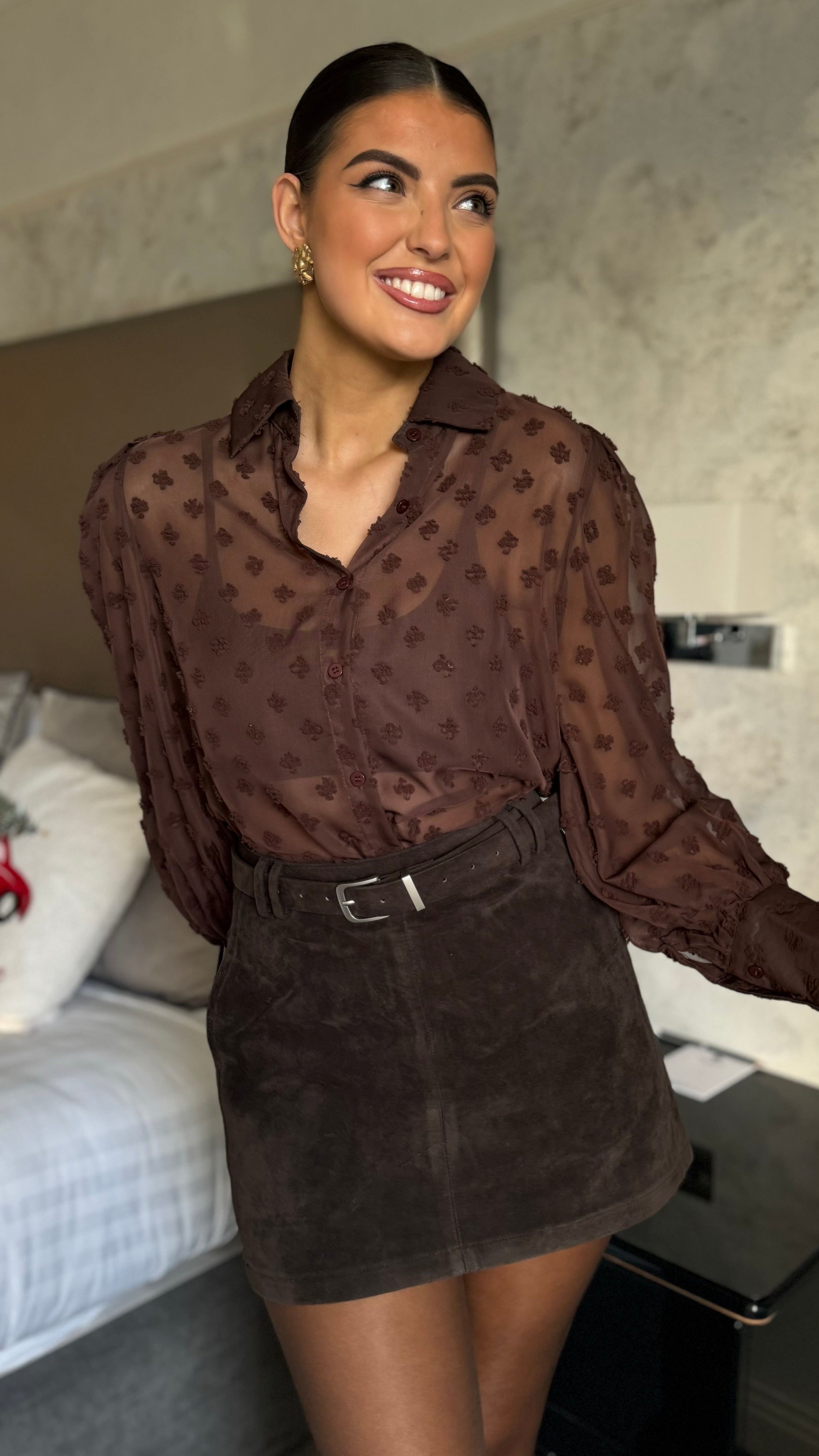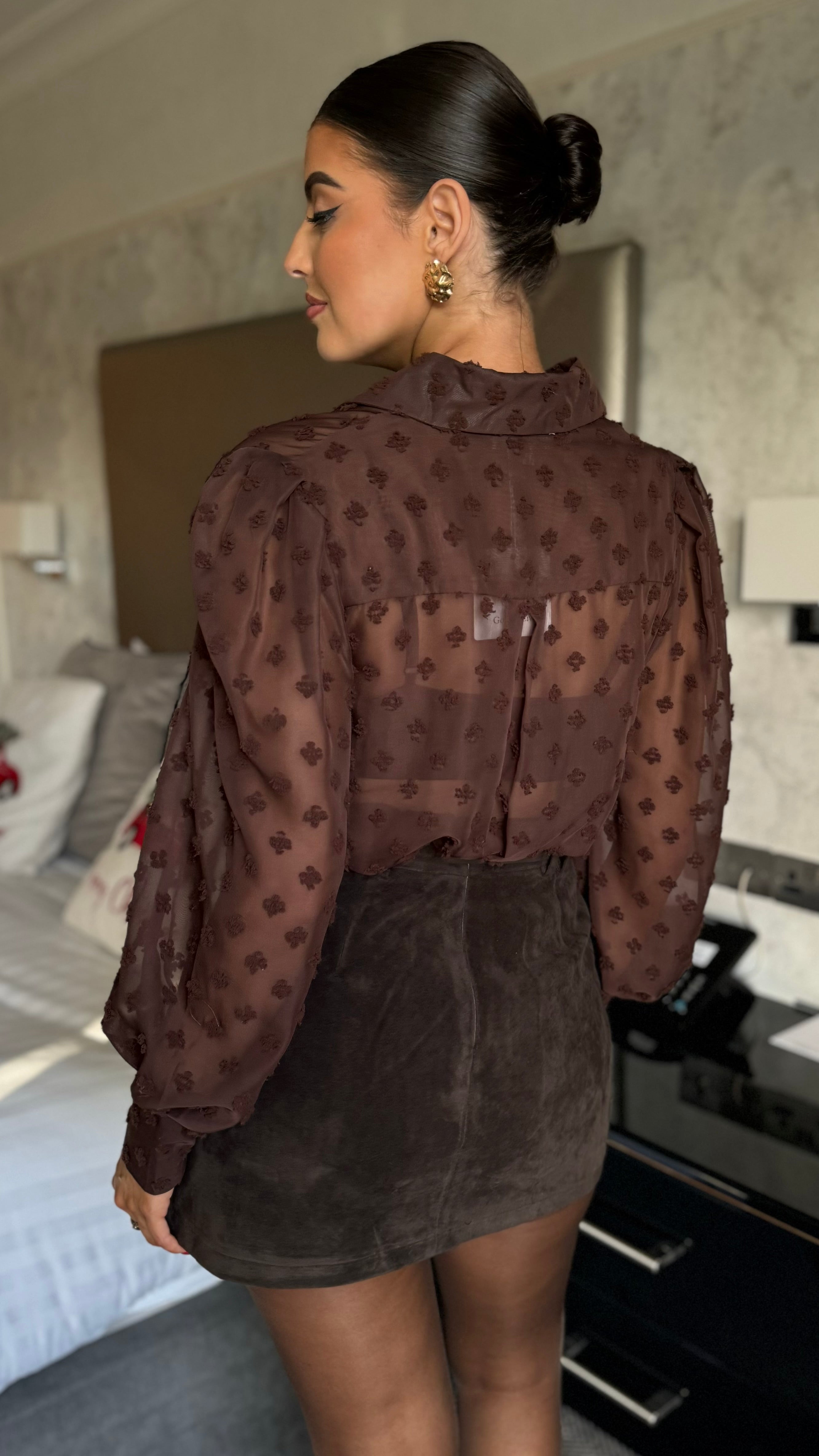 Penny Chocolate Brown Sheer Chiffon Textured Shirt