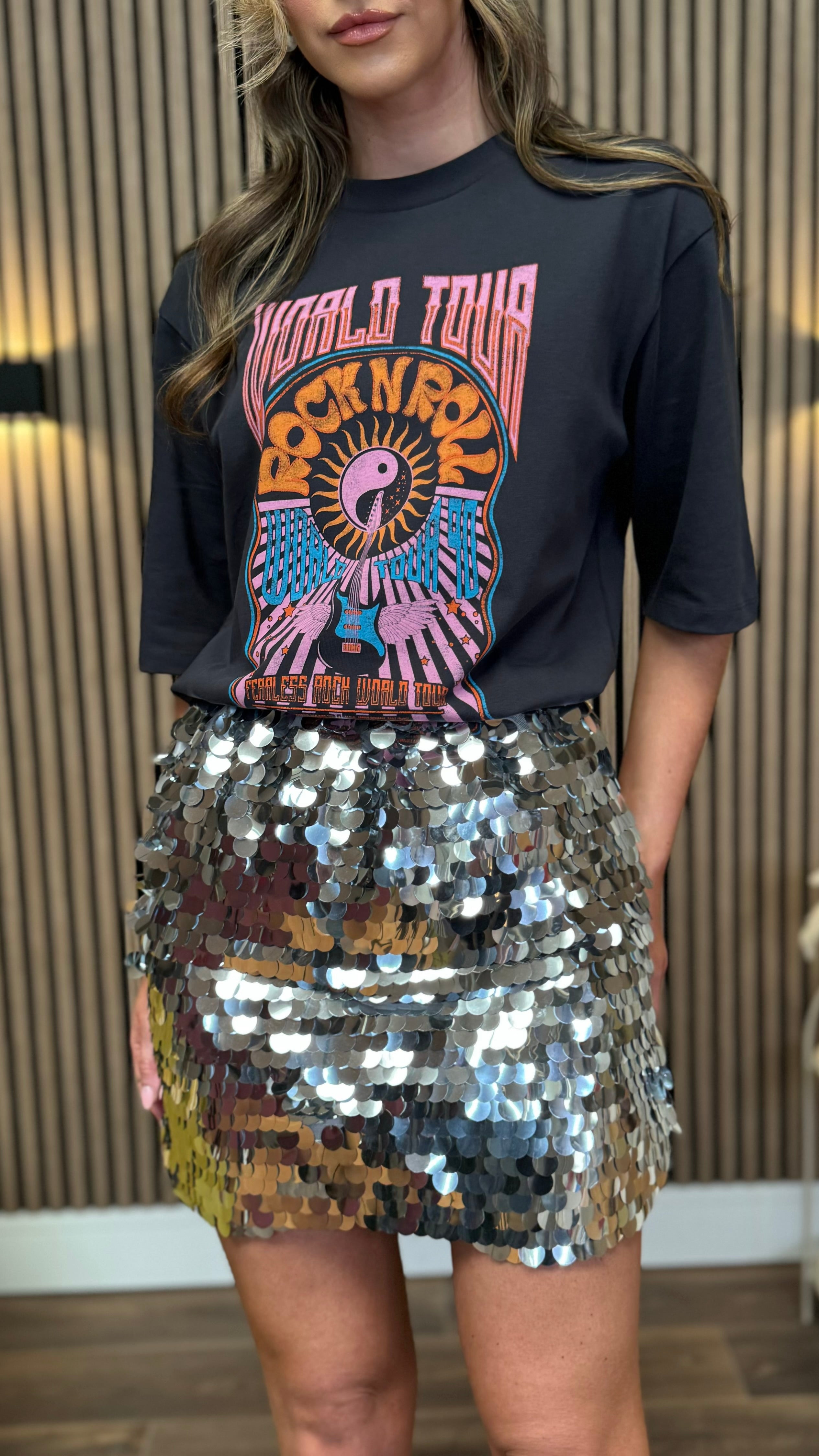 Step into the spotlight with the Alba Silver Disco Mini Skirt ✨ Its dazzling silver shimmer and flattering mini length make it the ultimate party essential 💃 Feel confident and stylish as you dance the night away, turning heads with every move 🌟 Add this sparkling statement piece to your wardrobe and shine like never before! ✨