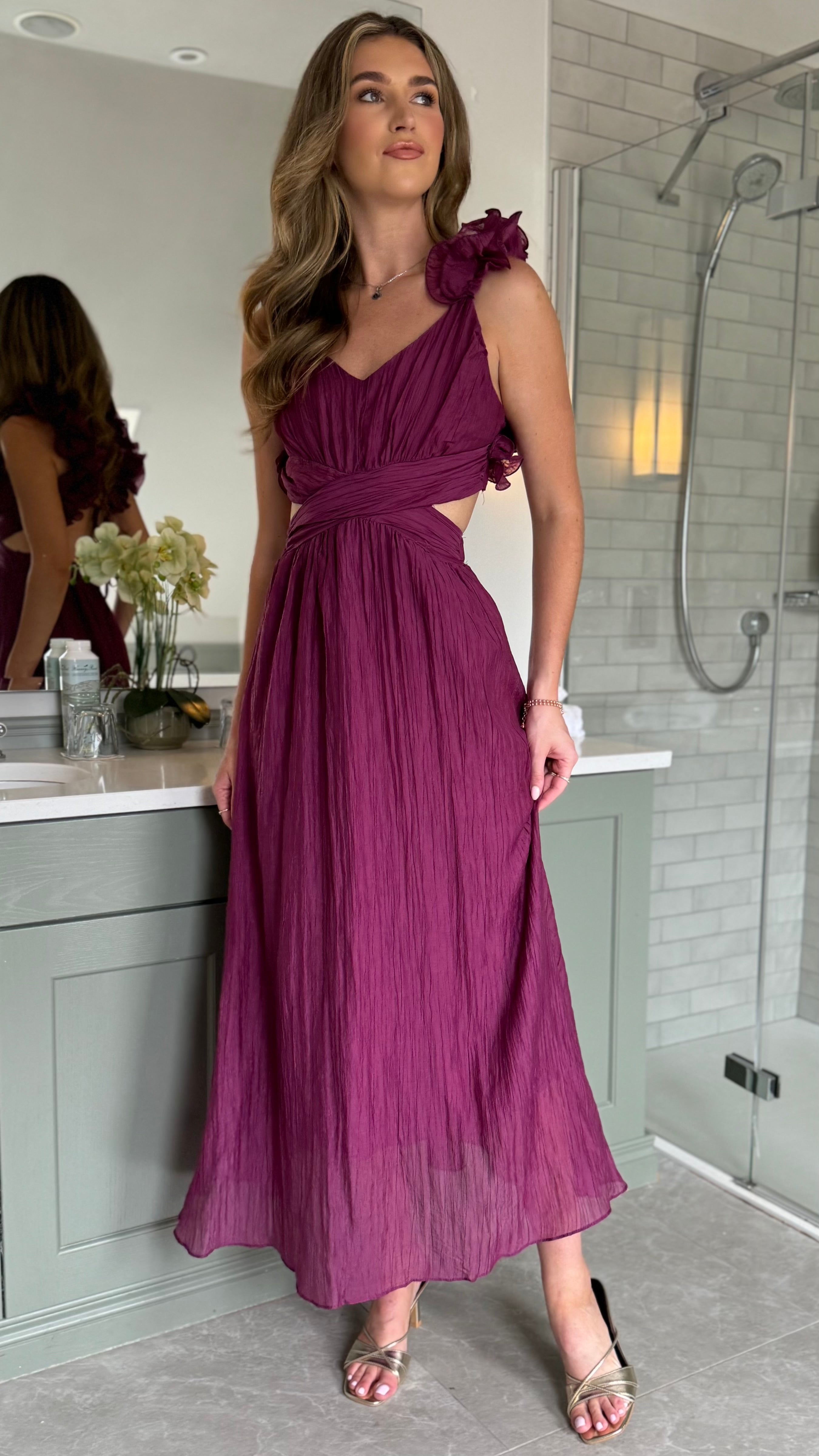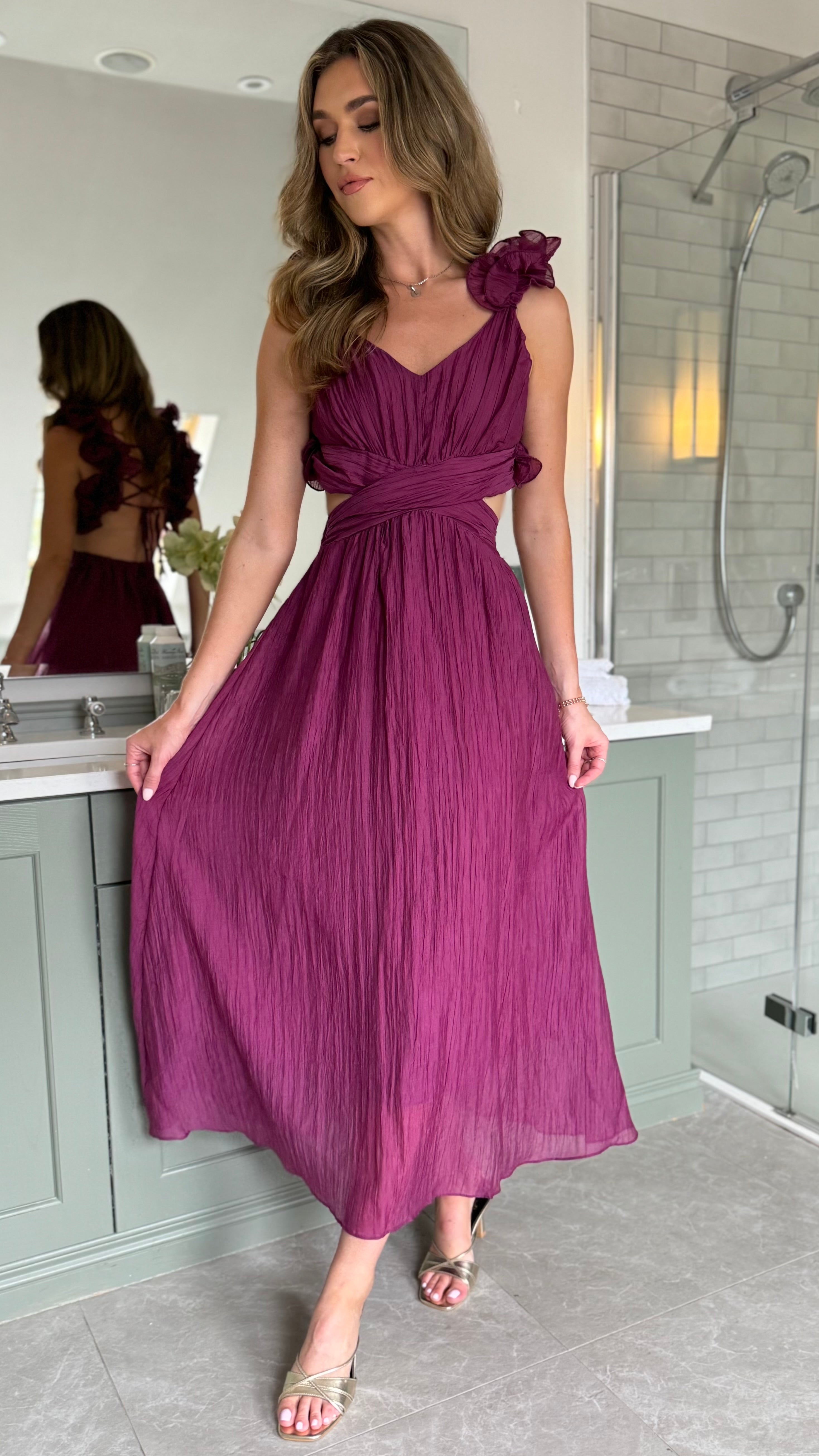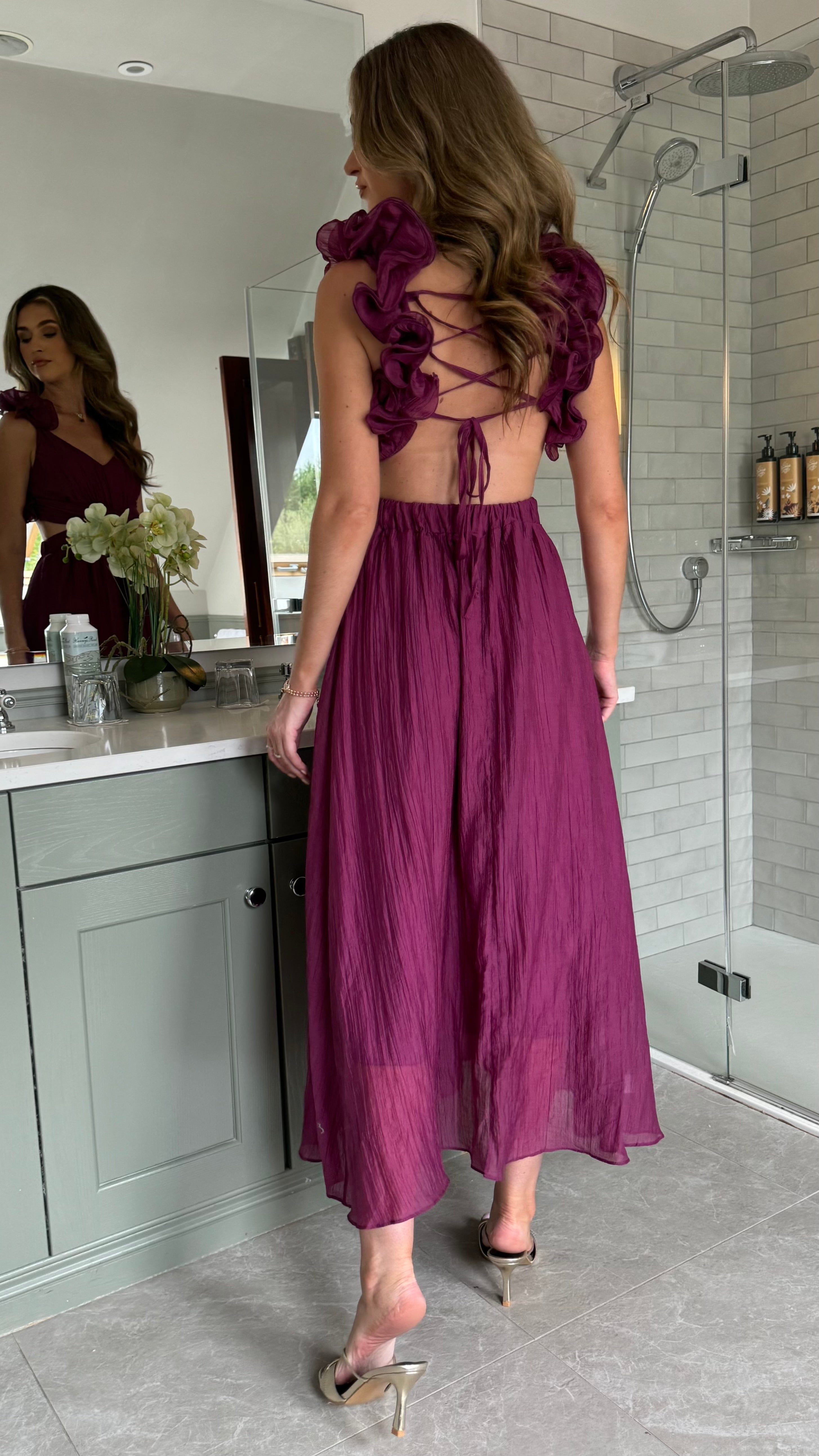 Elsa Mauve Ruffle Details Backless Midi Dress