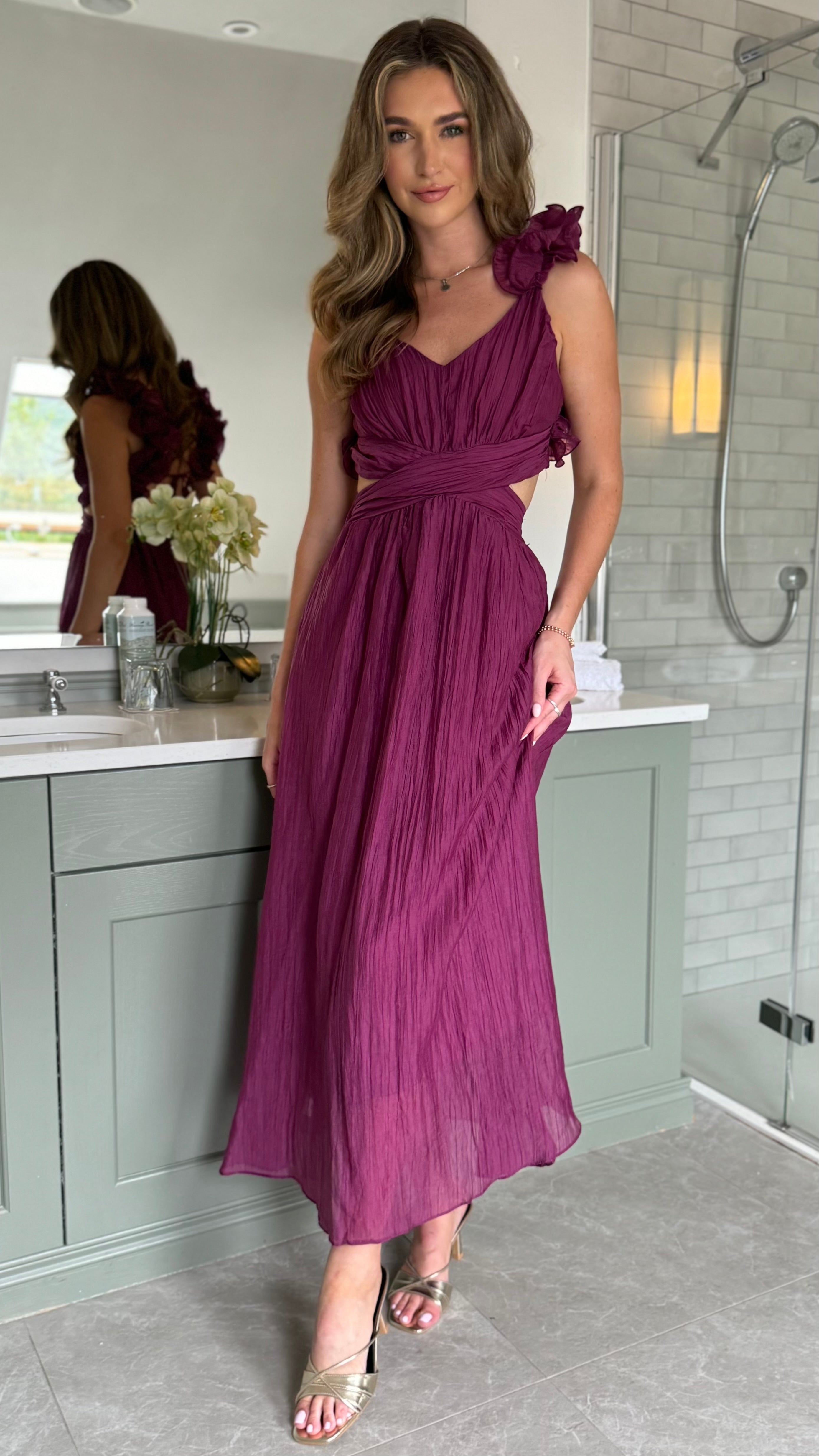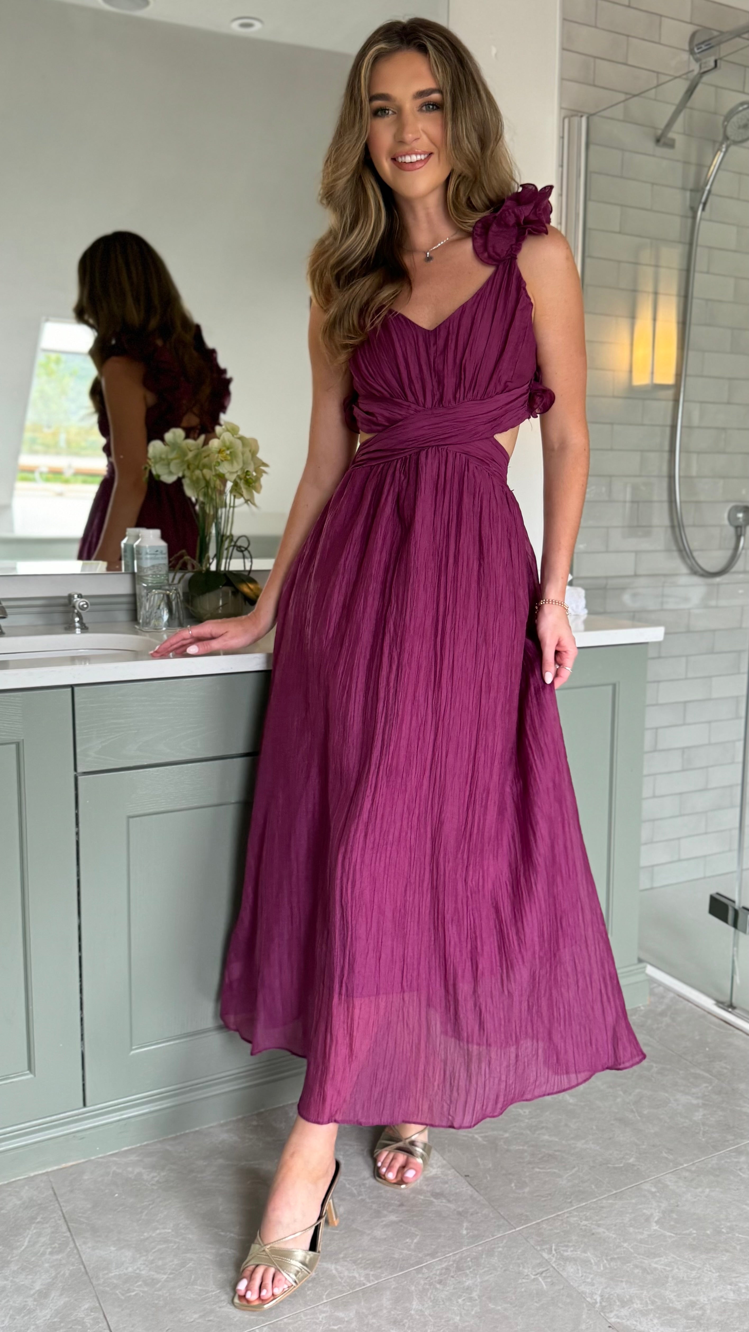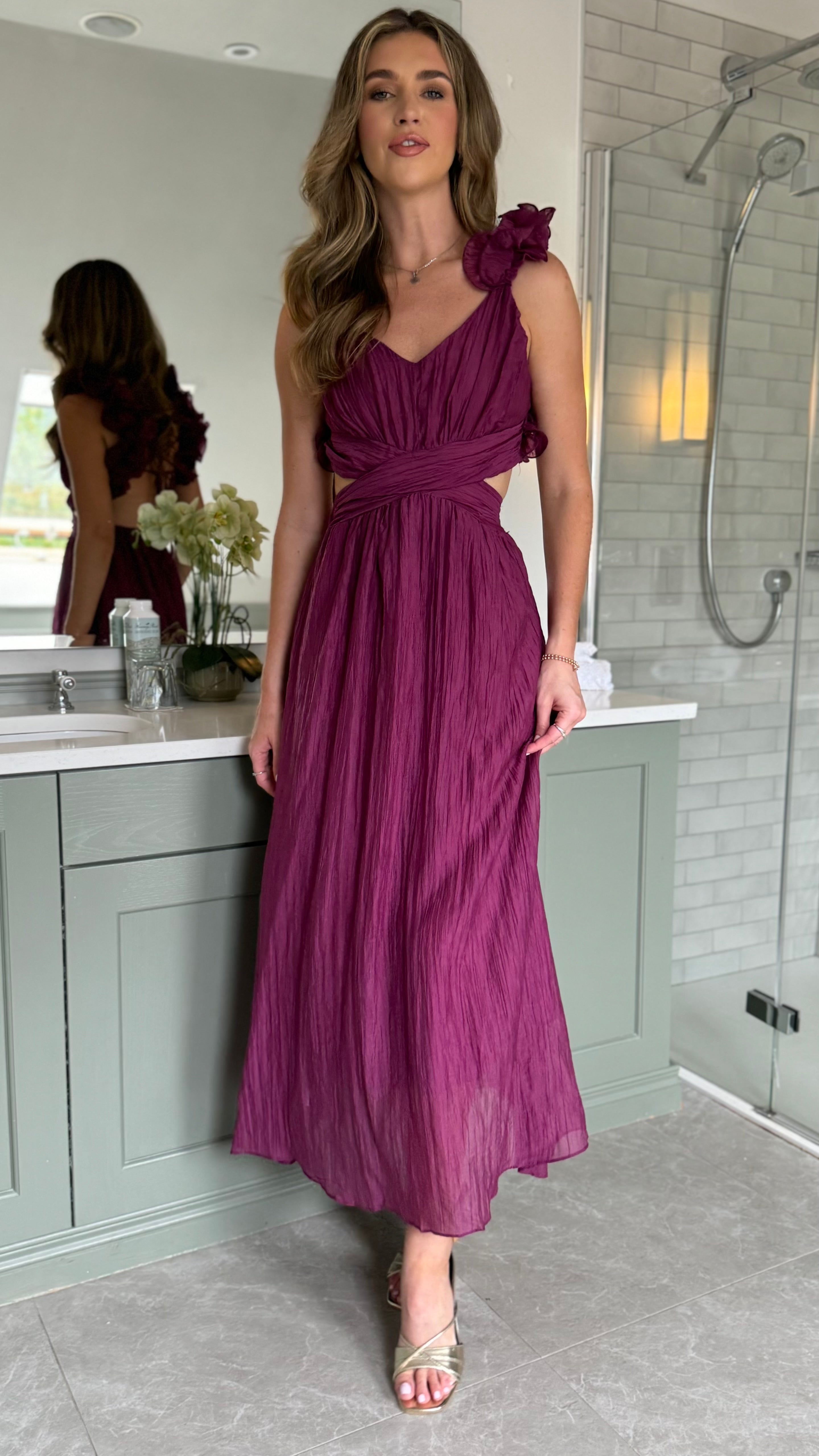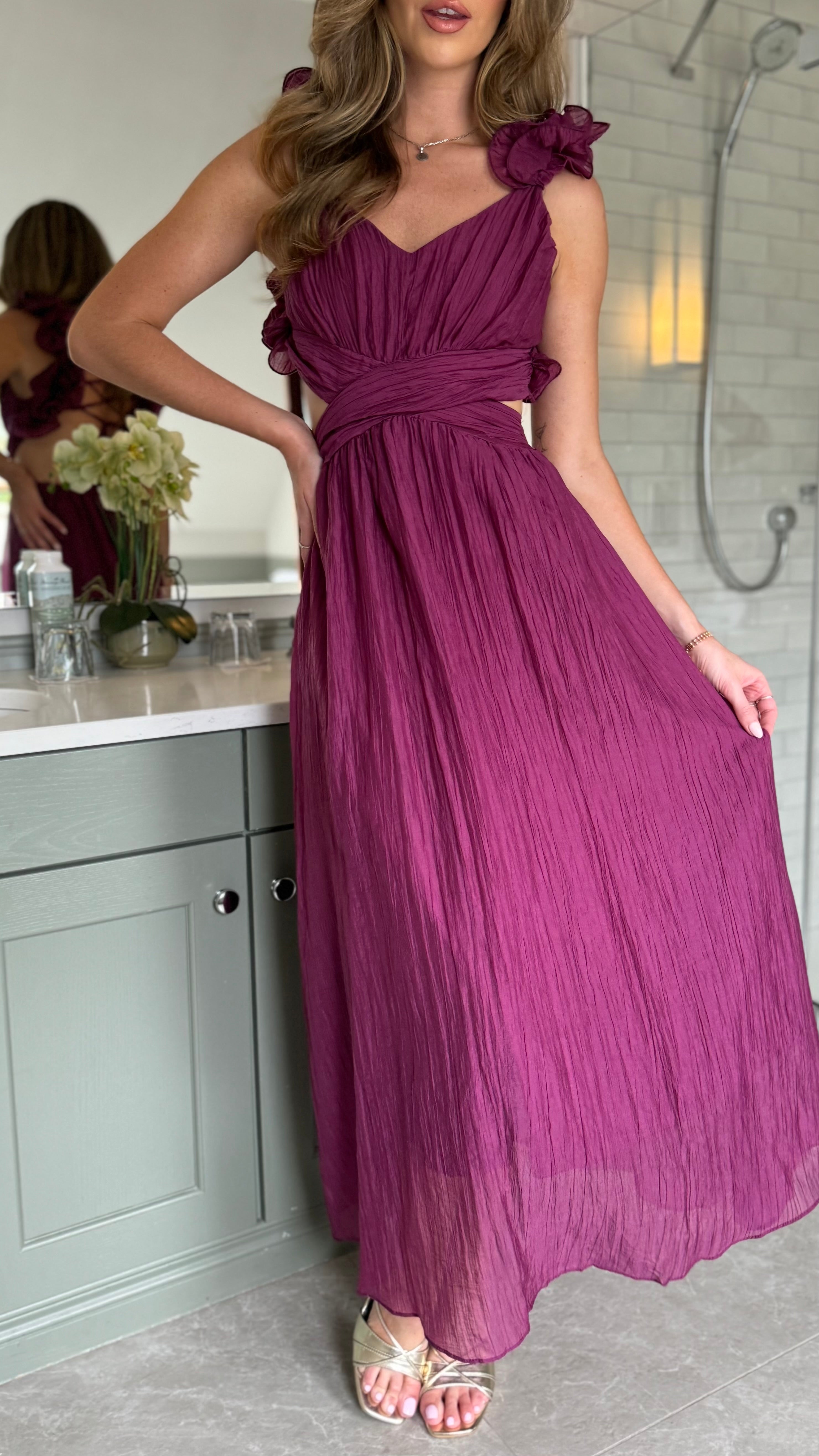 Elsa Mauve Ruffle Details Backless Midi Dress