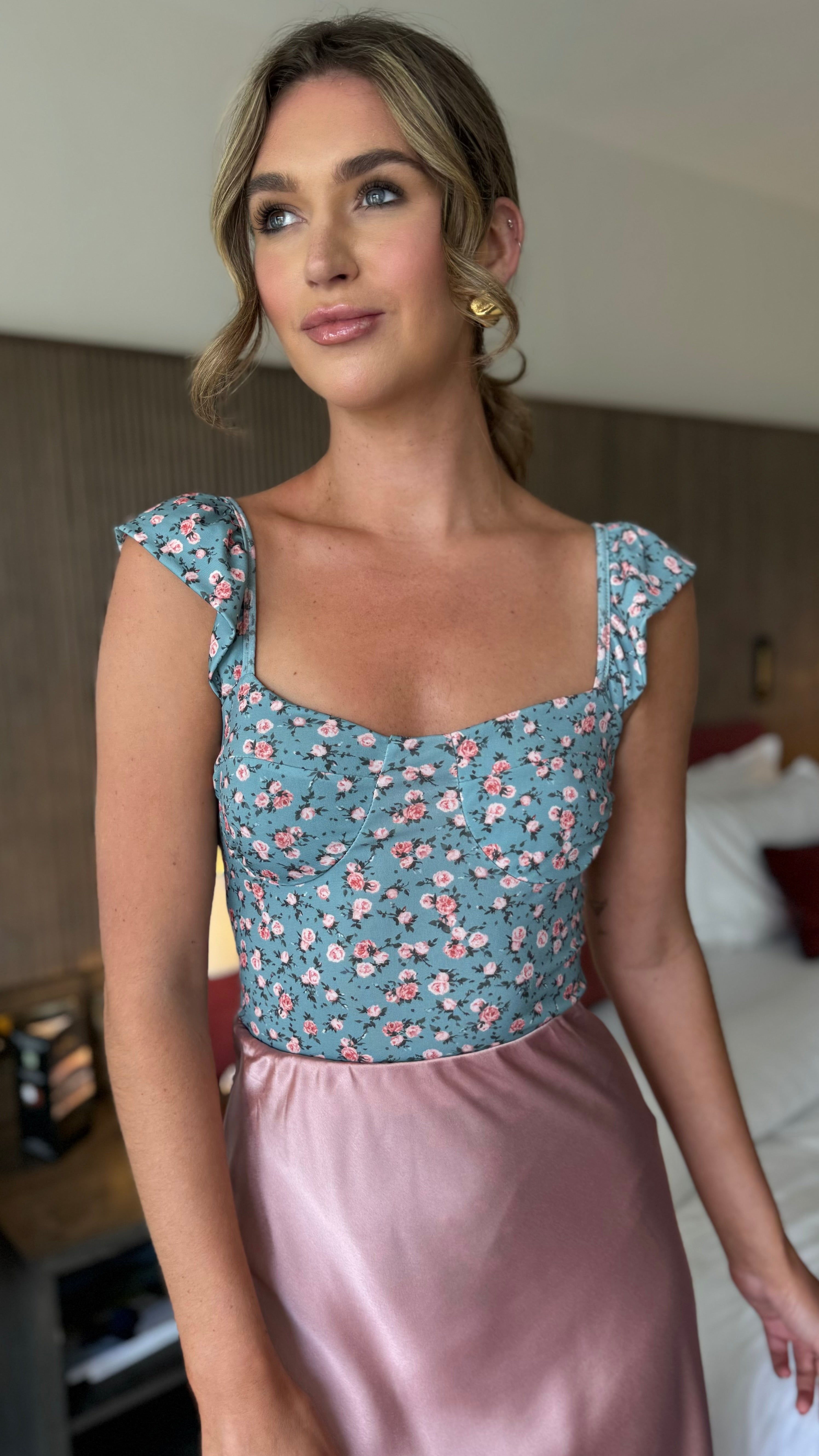 Add a touch of charm with this Heather Teal & Pink Roses Cupped Bodysuit 🌸. Designed with comfortable cups for a flattering fit, it offers gentle support and beautiful floral detail that brightens your day. Perfect for layering or wearing on its own, it combines style and comfort in one lovely piece 💖.