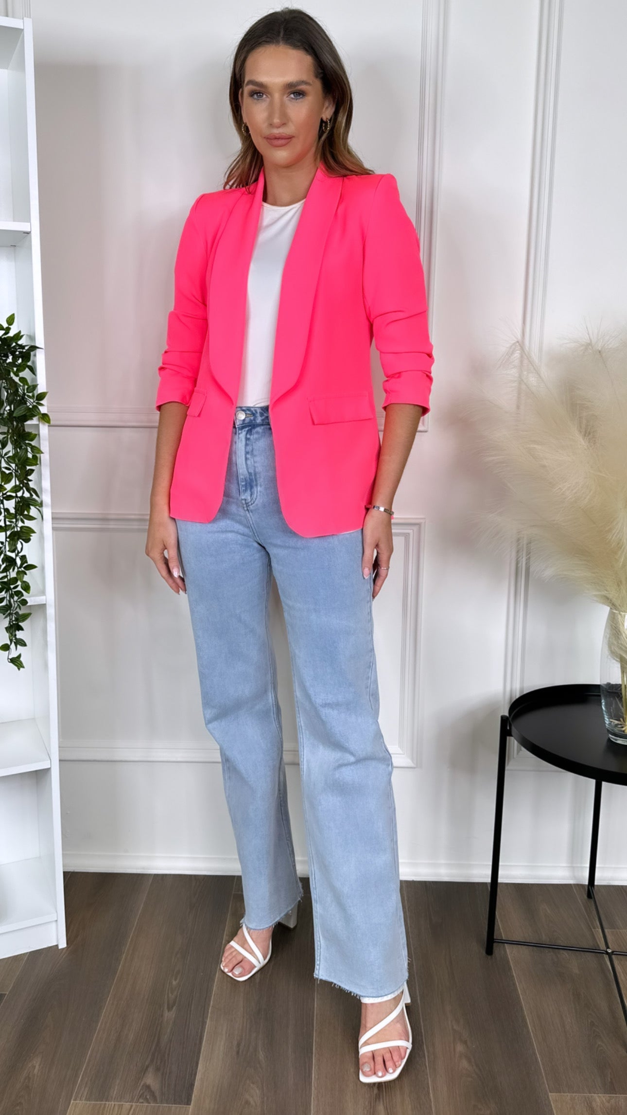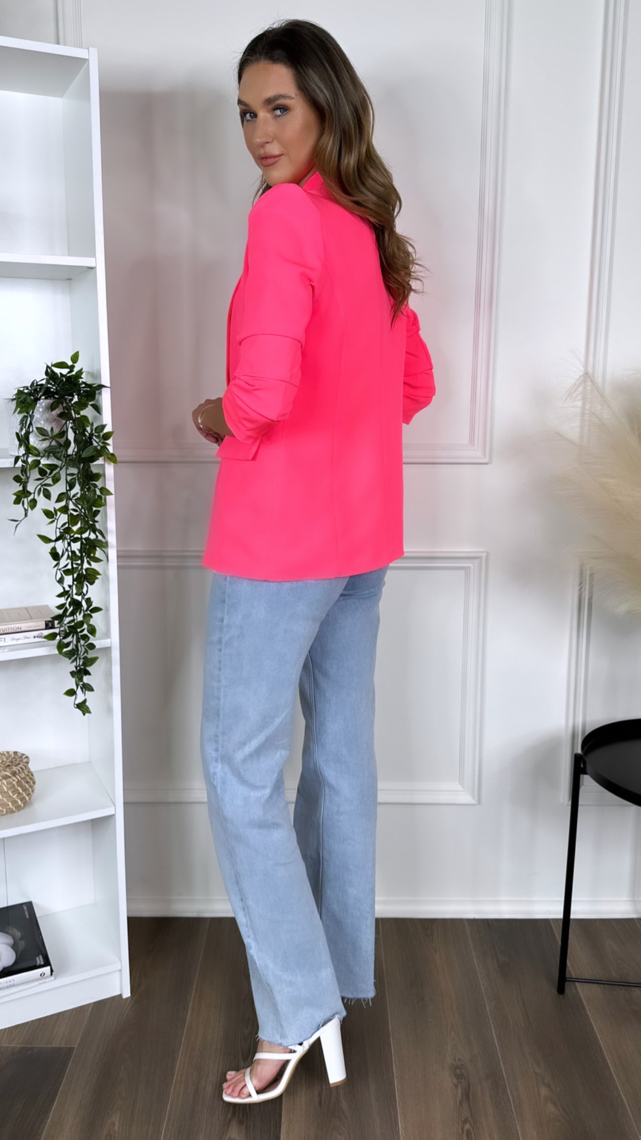Look sharp and feel comfy with this McKinley Bright Pink Ruched Sleeve Blazer! It's got all the features you need and then some: vivid pink colour, ruched sleeves, a trendy collar detail, faux pockets, and a lining to keep you comfortable 🔥