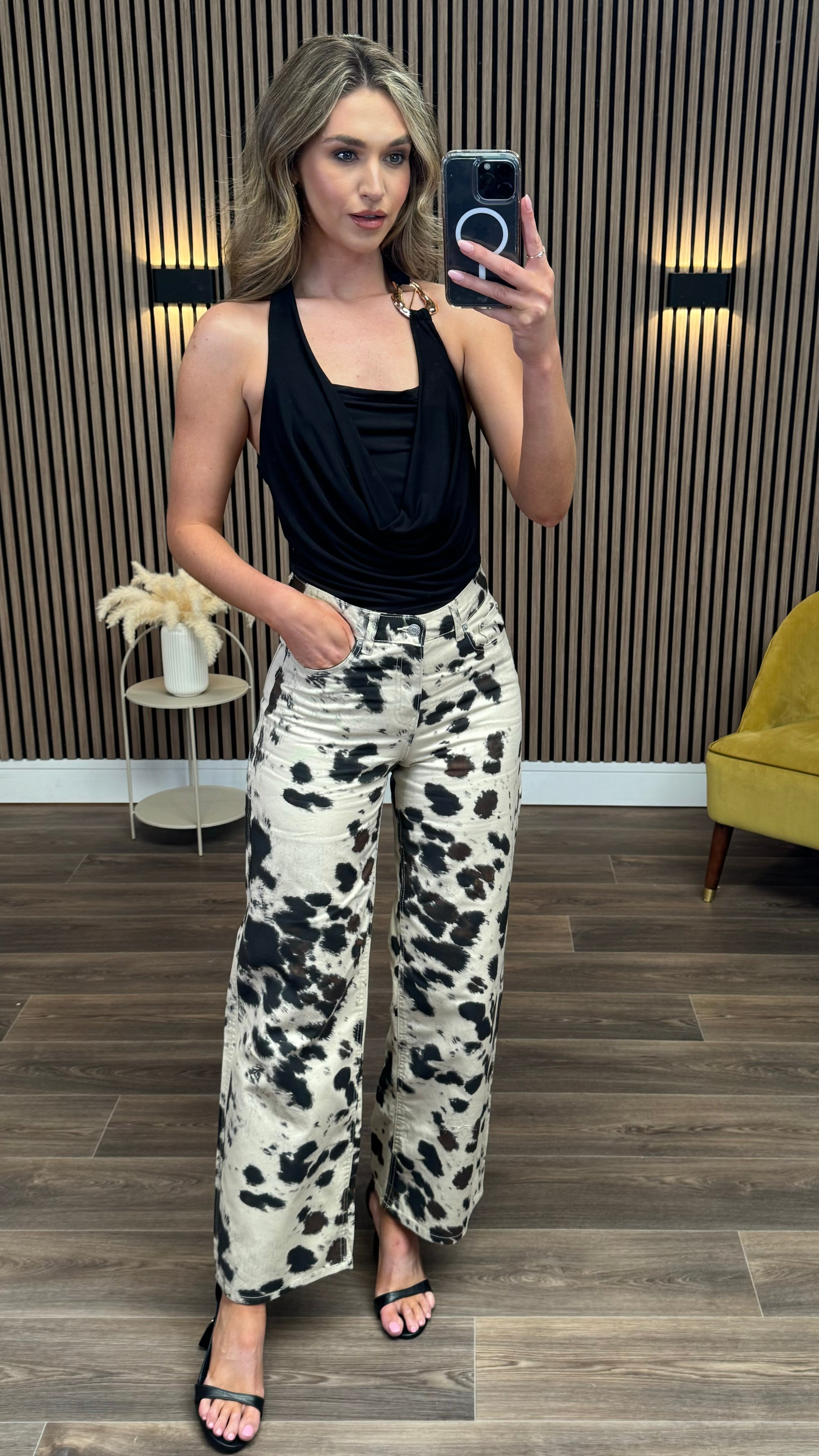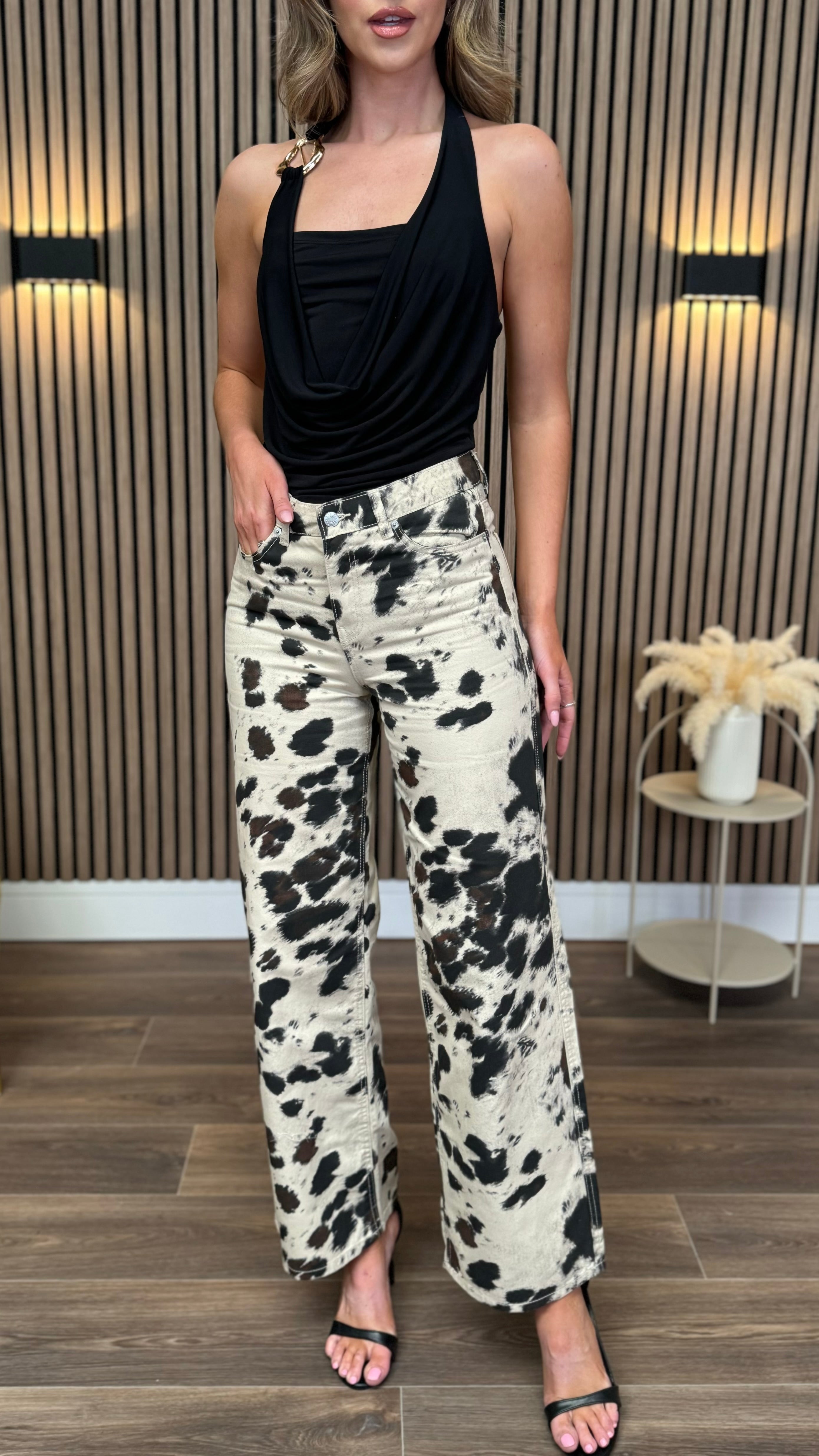 Step out boldly with the Mora Cow Print Wide Leg Trousers 🐄. These eye-catching pants combine wild style with ultimate comfort, featuring a relaxed fit that moves with you. Perfect for making a statement, they bring a playful edge to any outfit. Dare to stand out and own your look! 🔥