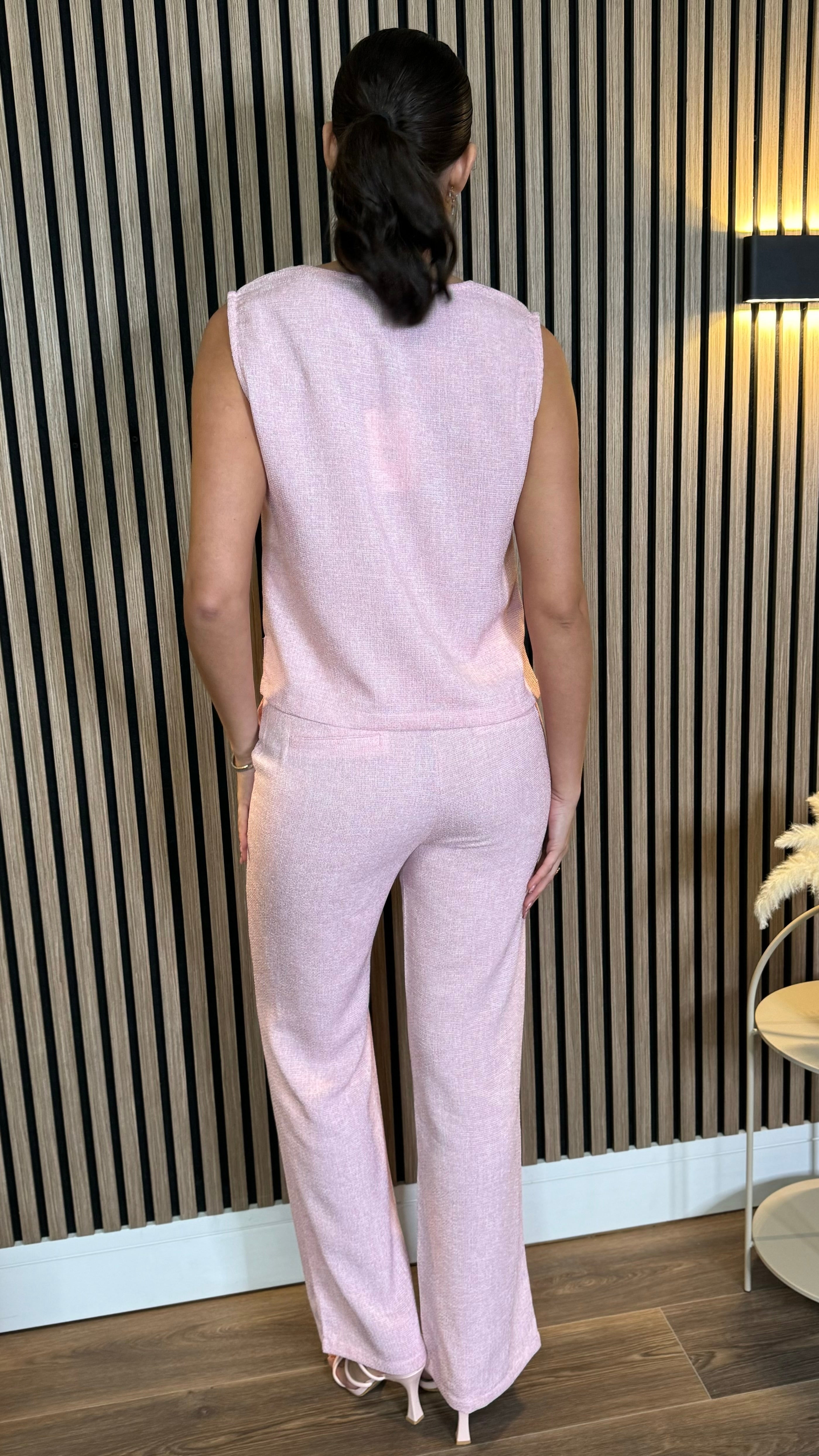 Patti Pink Wide Leg Trouser and V Neck Top Co-Ord