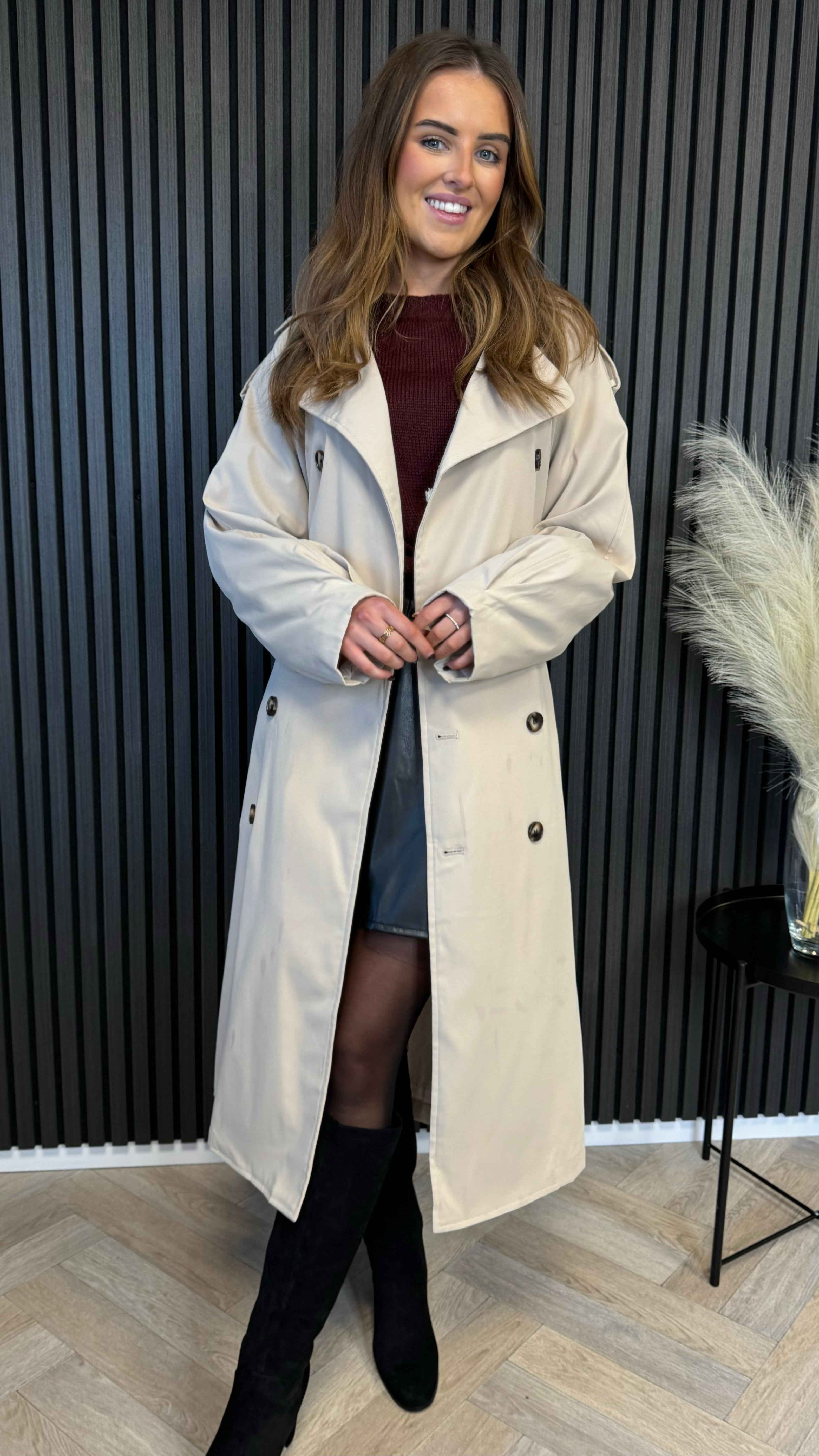Regina Beige Midi Trench Coat With Belt