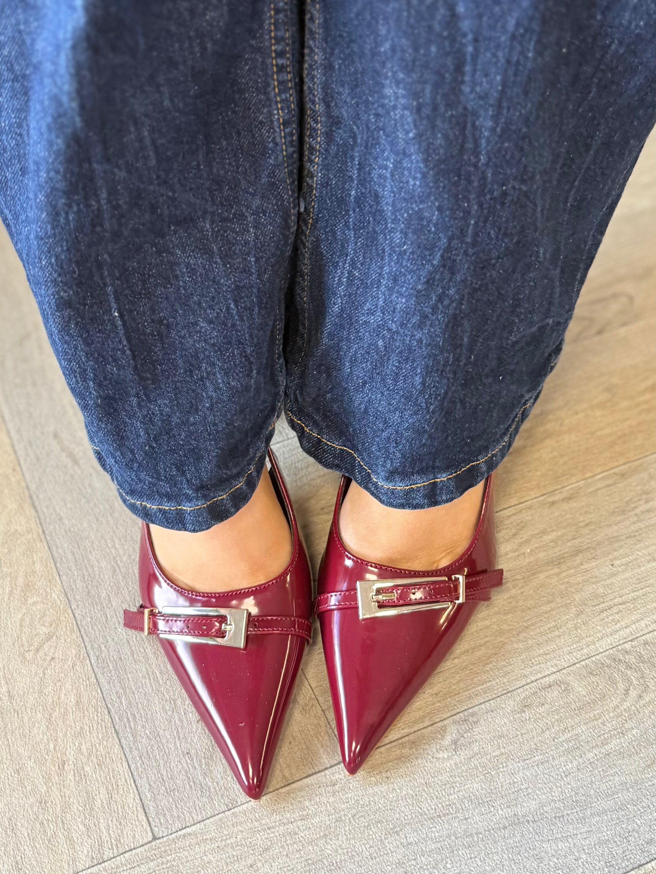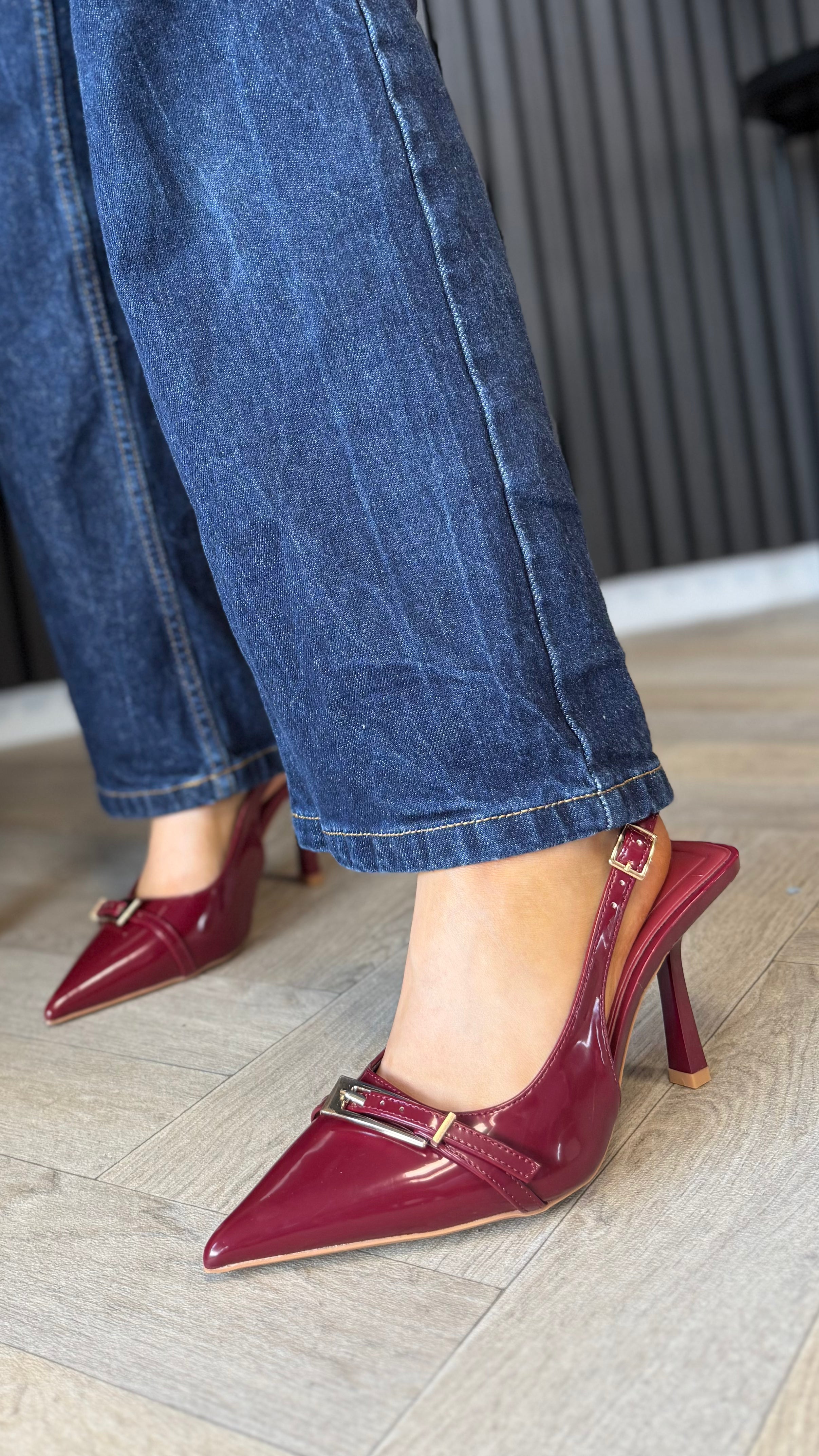 Romy Wine Slingback Faux Leather Buckle Detail Stiletto Heels