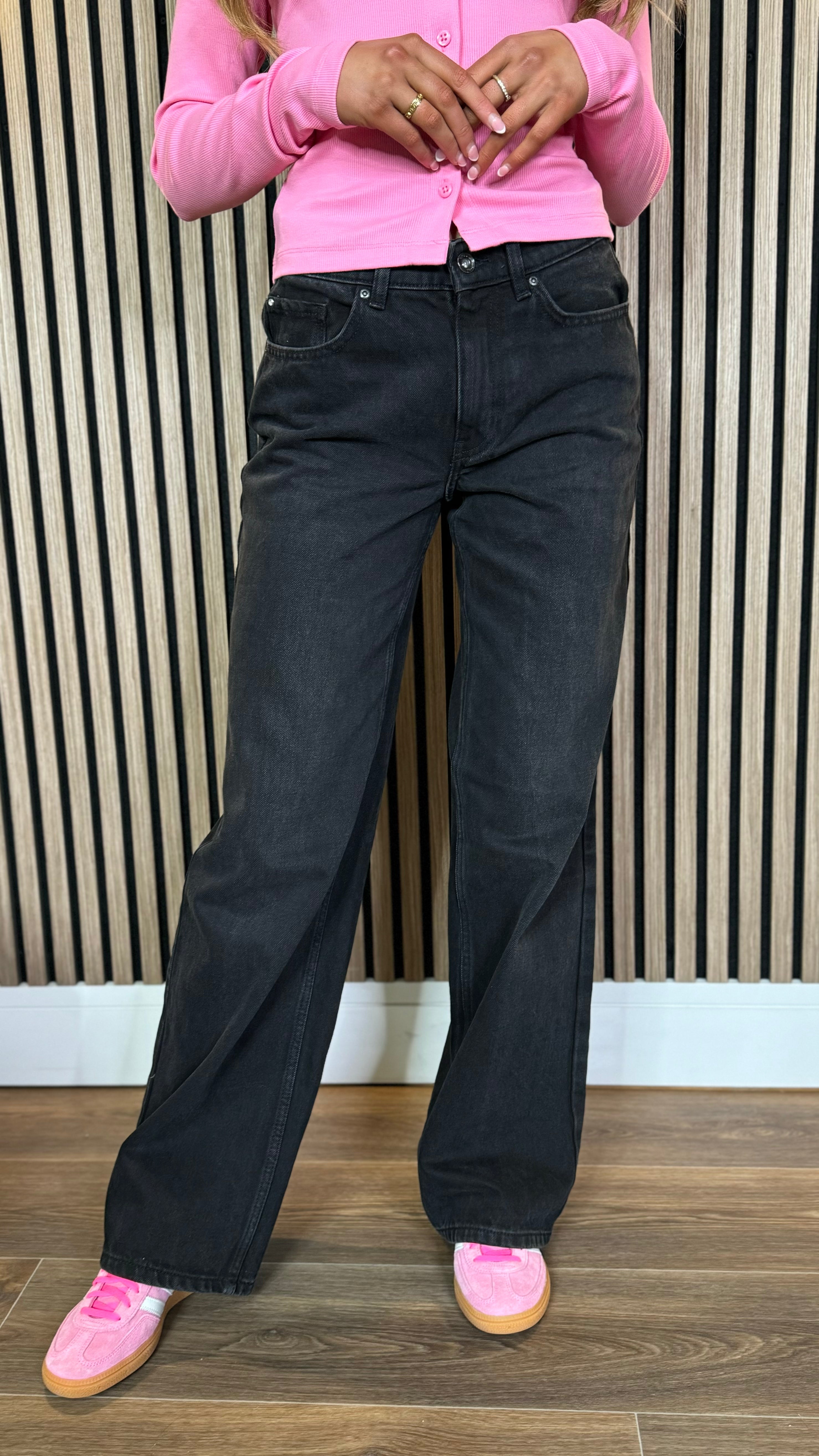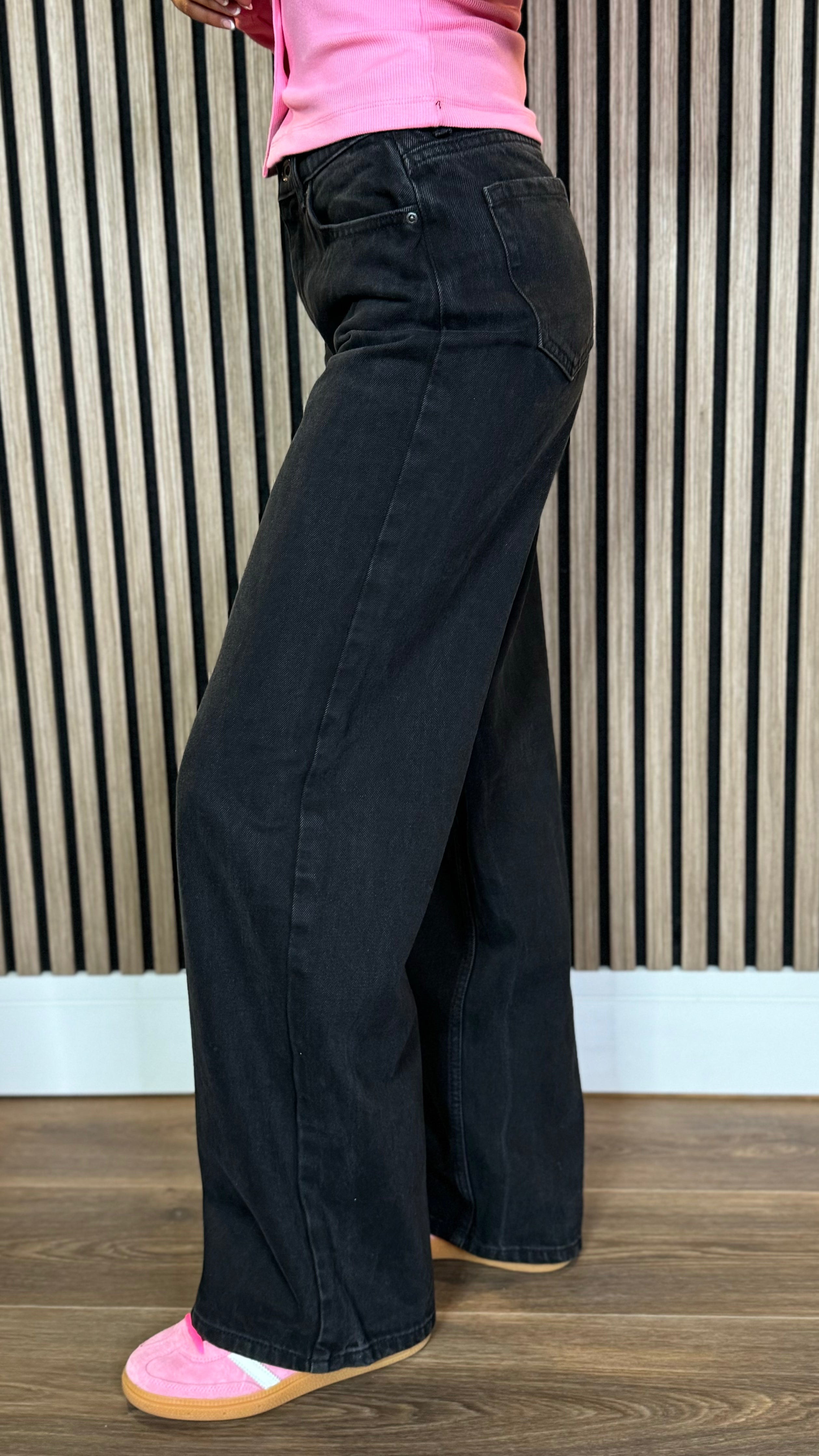 Upgrade your denim game with these Ruthie Black Mid Waist Wide Leg Jeans. These jeans offer a flattering mid-rise waist and a trendy wide leg cut. Perfect for adding a touch of style to any outfit. ππ