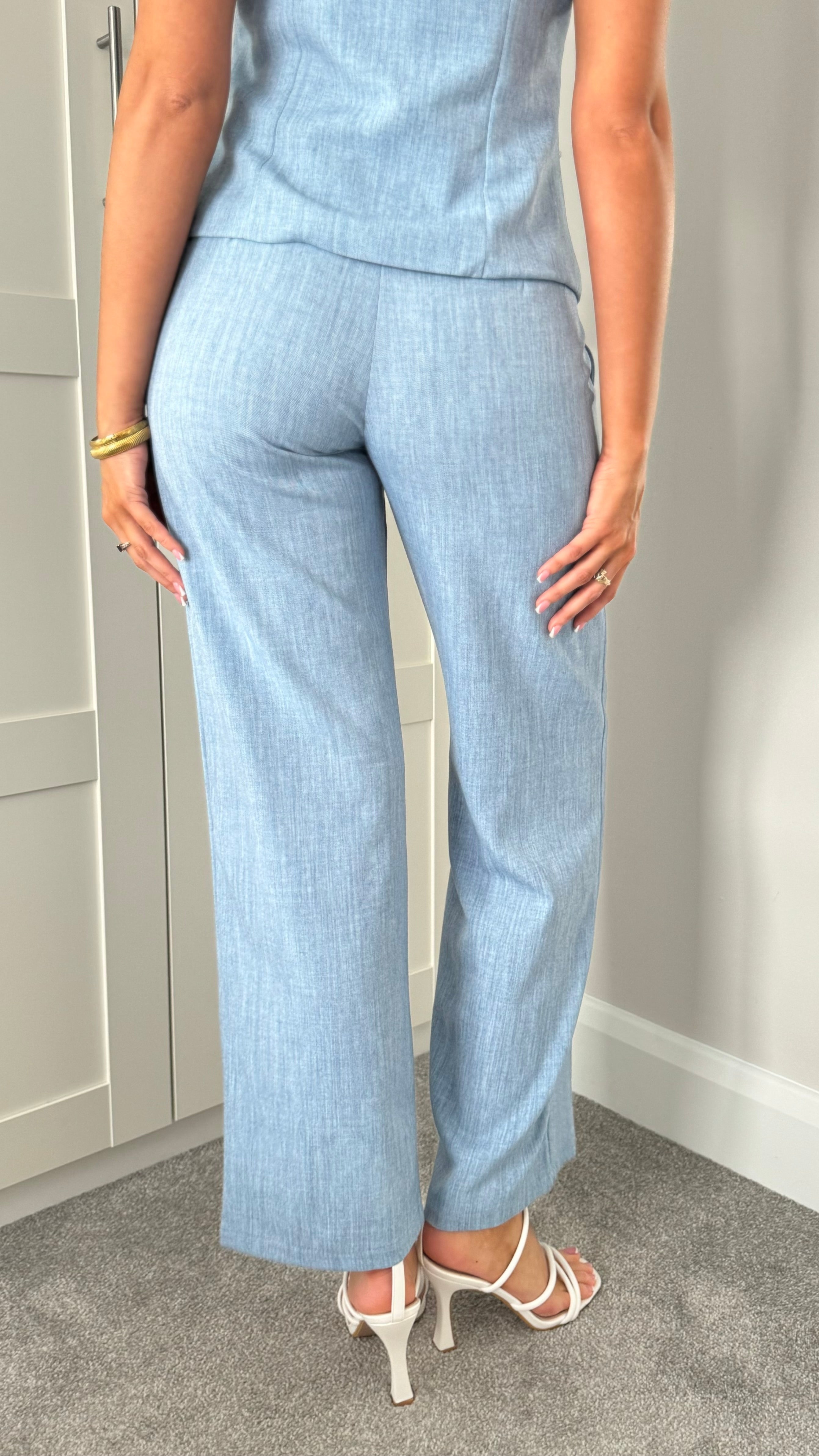 Turn heads in these quirky blue trousers. The Tessie Straight Leg Trousers provide comfort and style with their straight leg fit. Make a statement with these unique trousers!