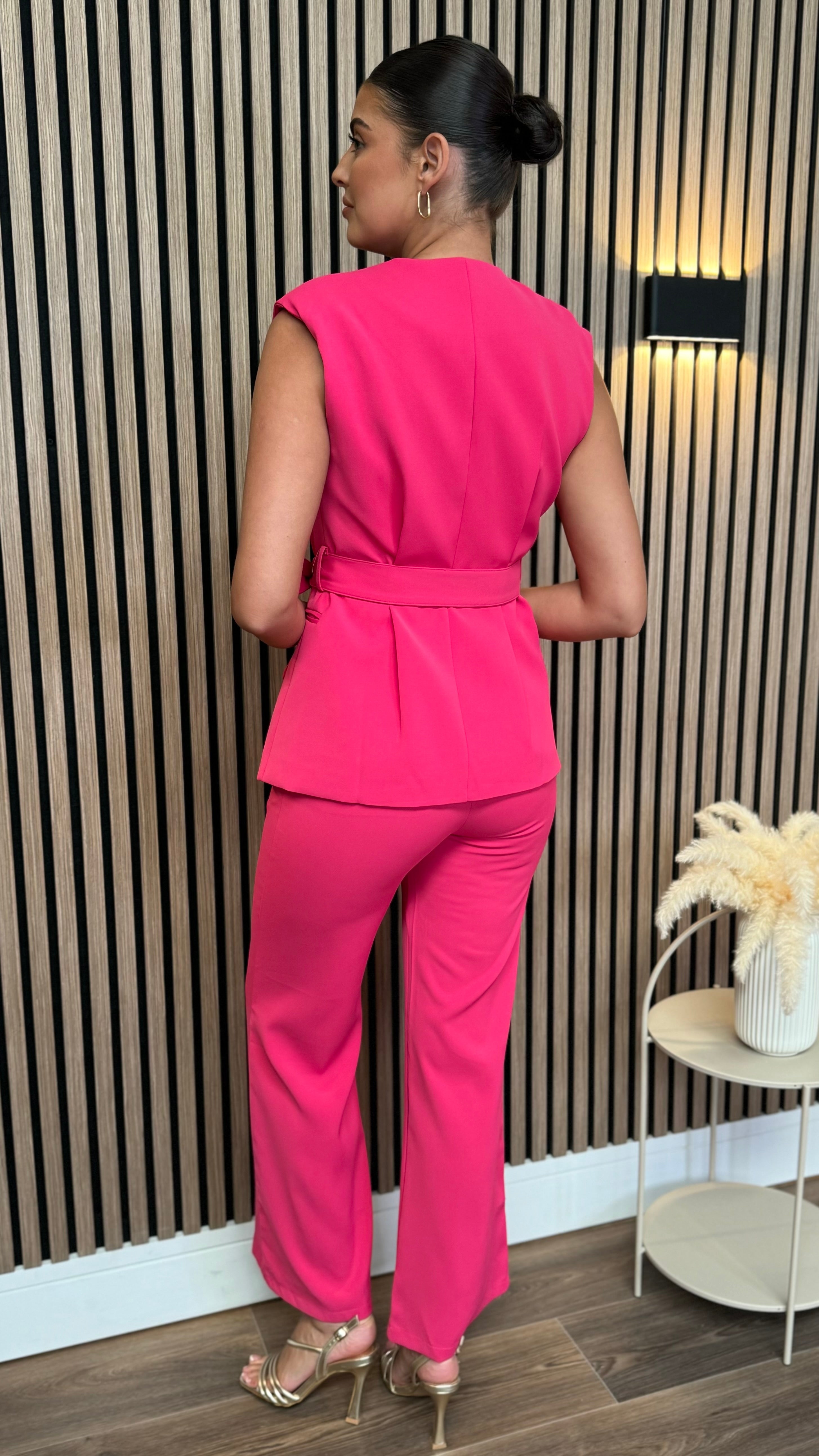 Yasmin Pink Fuchsia Wide Leg Trouser & Waistcoat Co-Ord