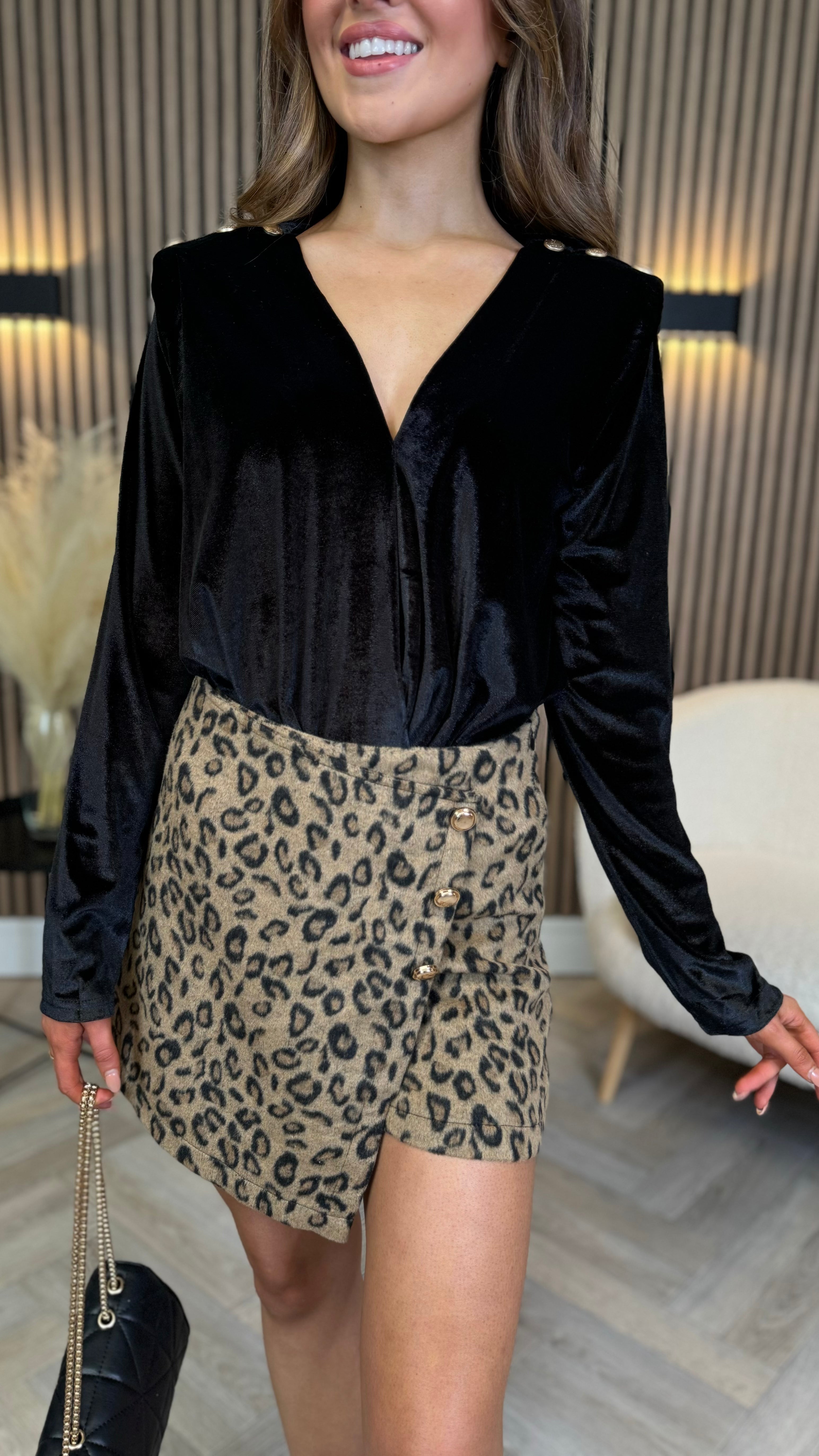 Bexley Black Velvet Finish Button Detail Bodysuit