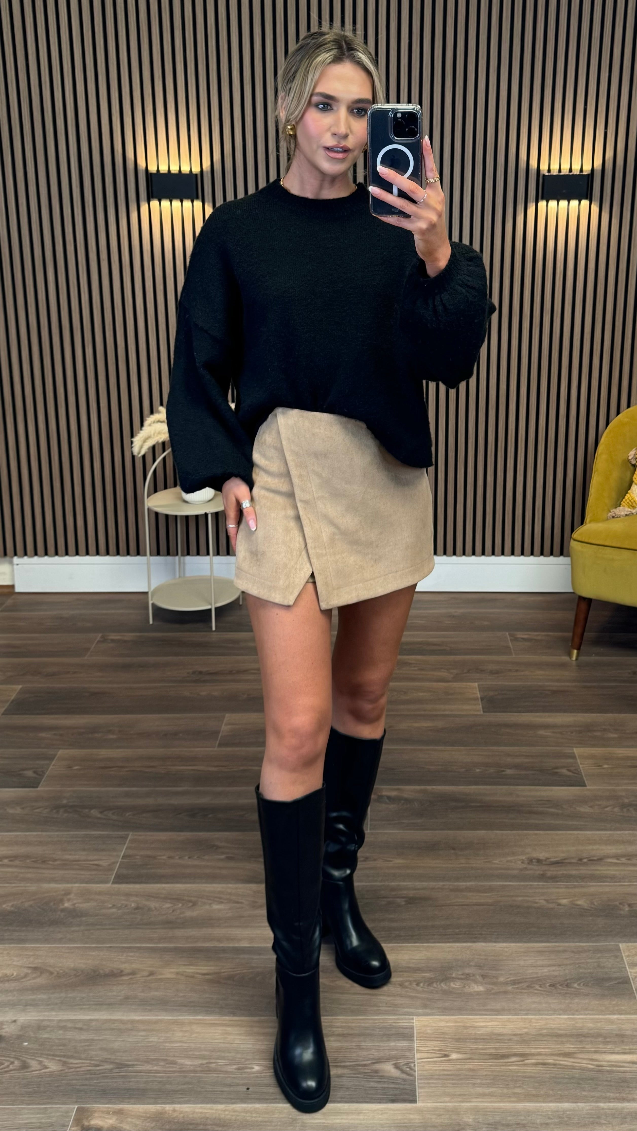 Madeleine Camel Faux Suede Skort
