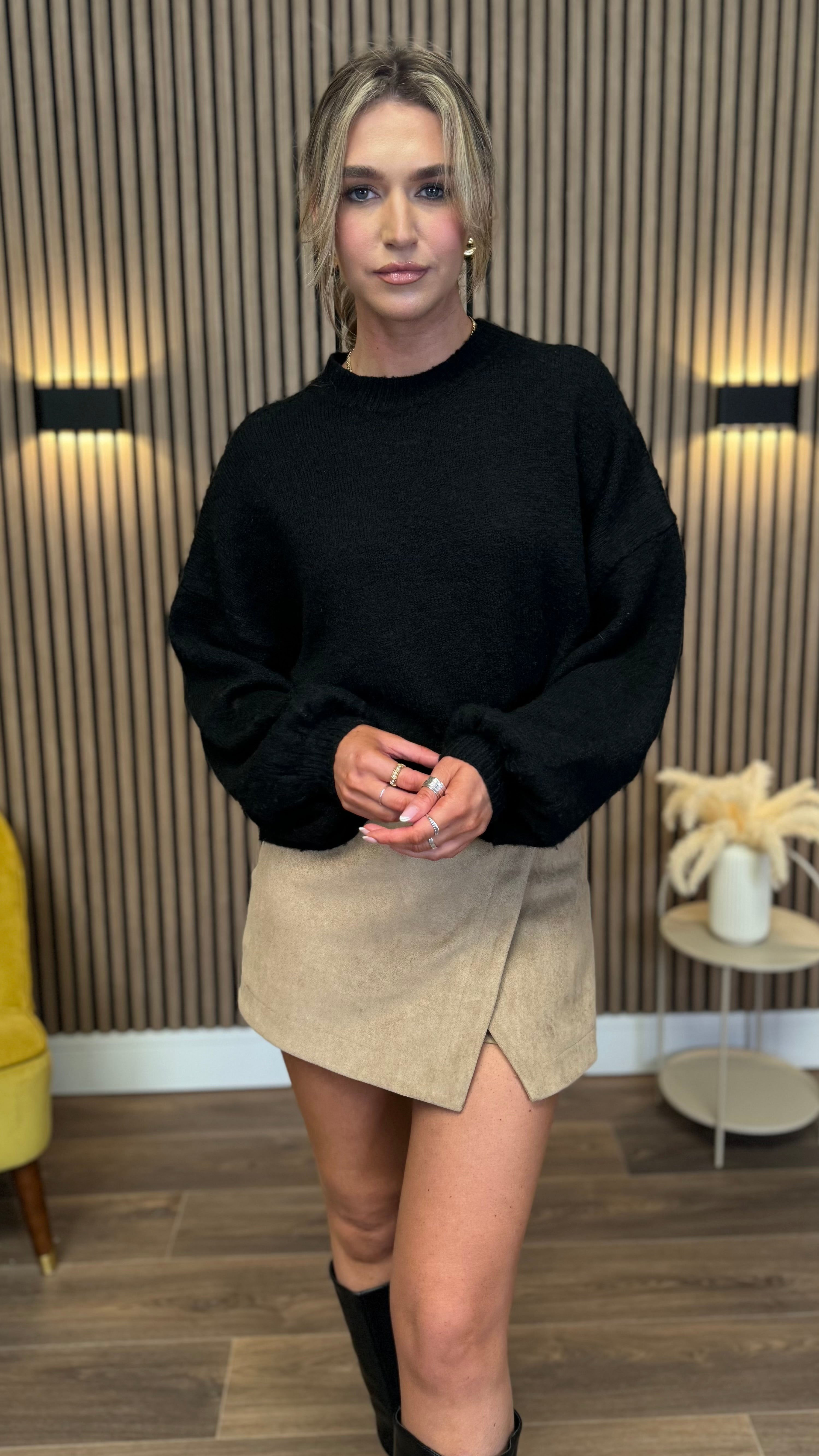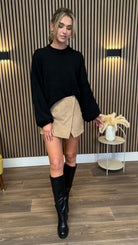 This playful Madeleine Camel Faux Suede Skirt features a chic wrap-over front and a smooth faux suede feel that’s soft to the touch. With a clever concealed zip and stylish shorts at the back, it combines comfort and flair for effortless style that keeps you moving with confidence. Perfect for turning heads wherever you go!