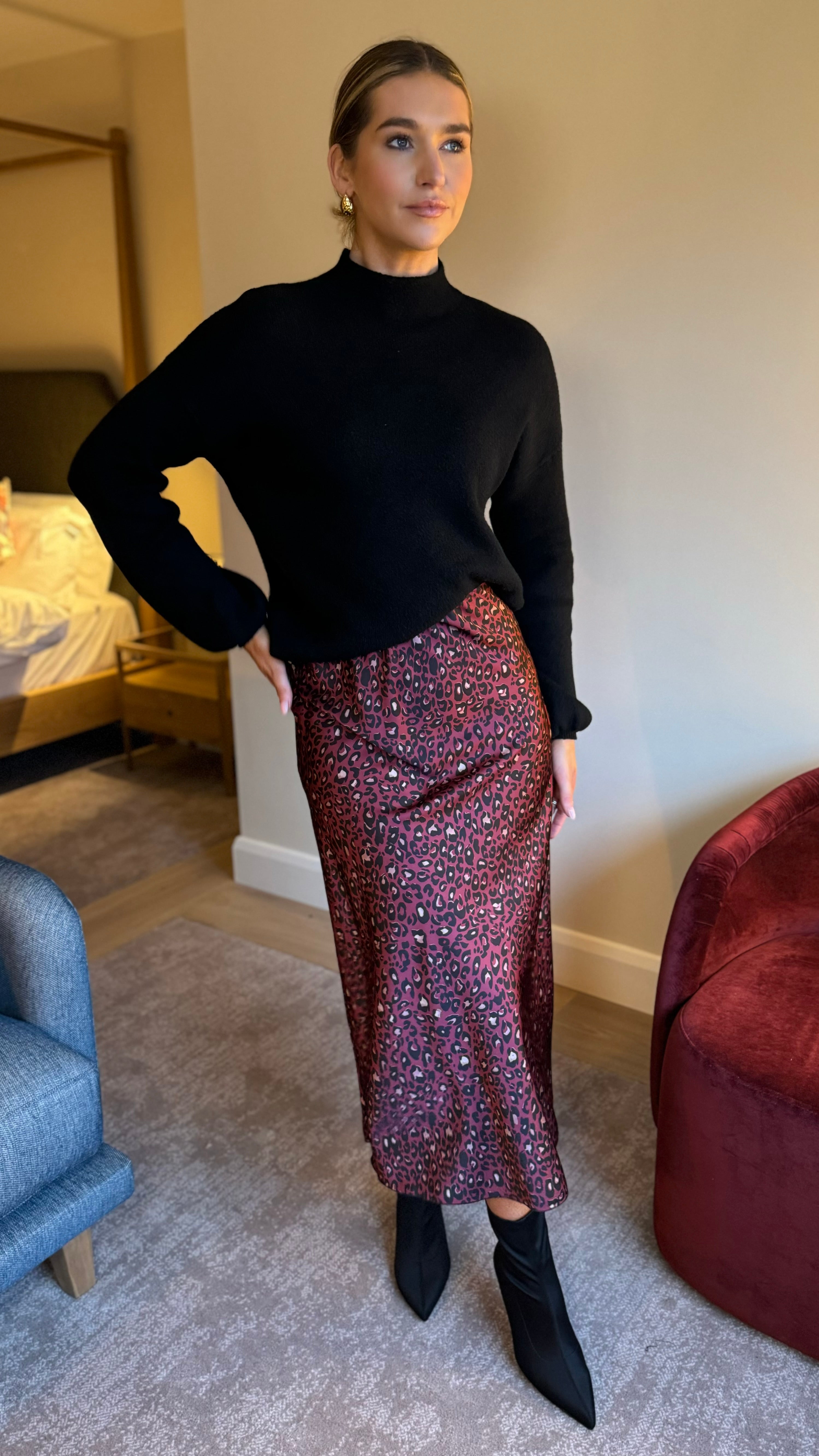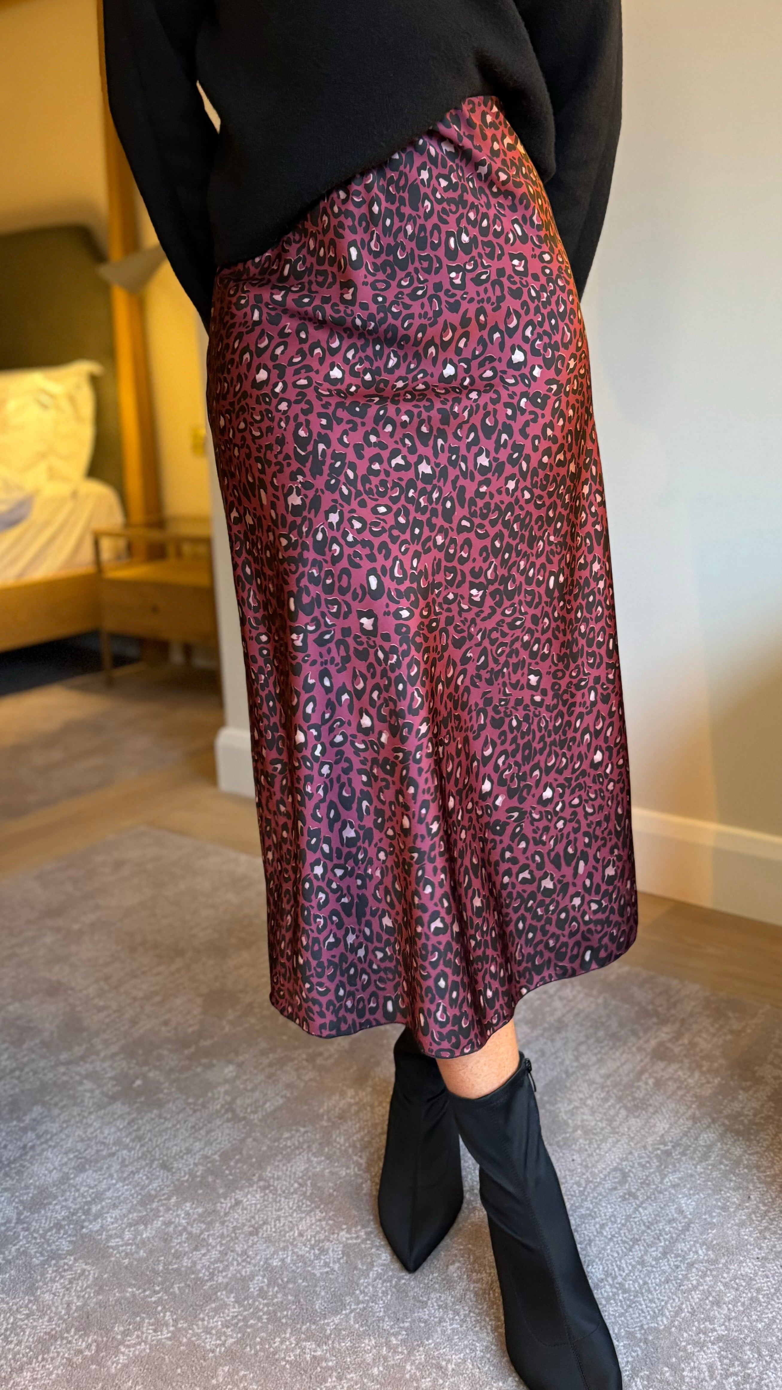 Slip into something effortlessly chic with this stunning red leopard print satin skirt. Featuring a silky-smooth satin finish that catches the light beautifully, this midaxi length piece strikes the perfect balance between bold and wearable. The elasticated waistband ensures a comfortable, flattering fit all day long, while the slip style keeps things simple and versatile. Whether you're dressing it up for a night out or pairing it with a casual tee, this playful leopard print is ready to turn heads.