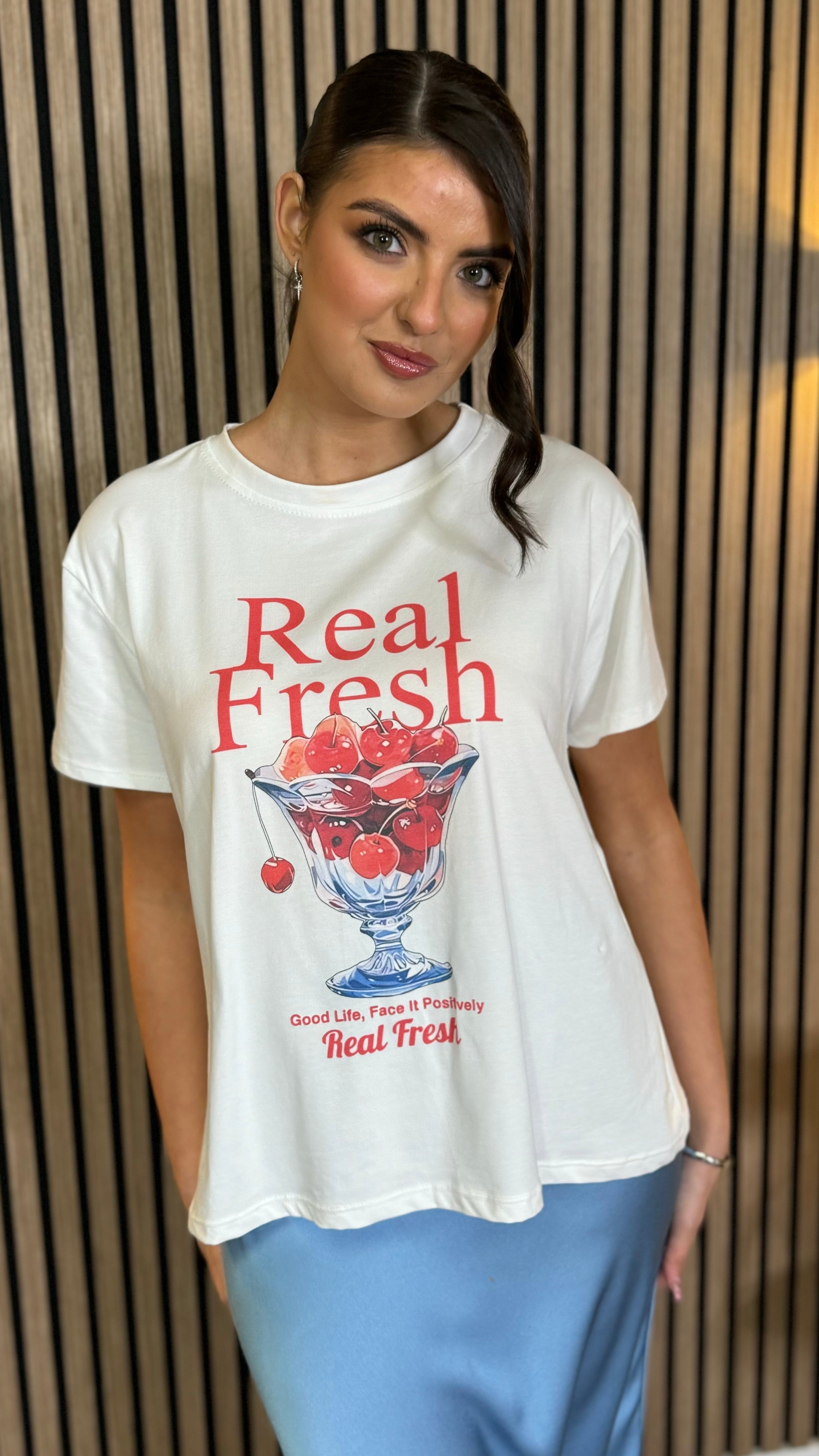 Nola White Graphic 'Real Fresh' Printed T Shirt