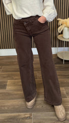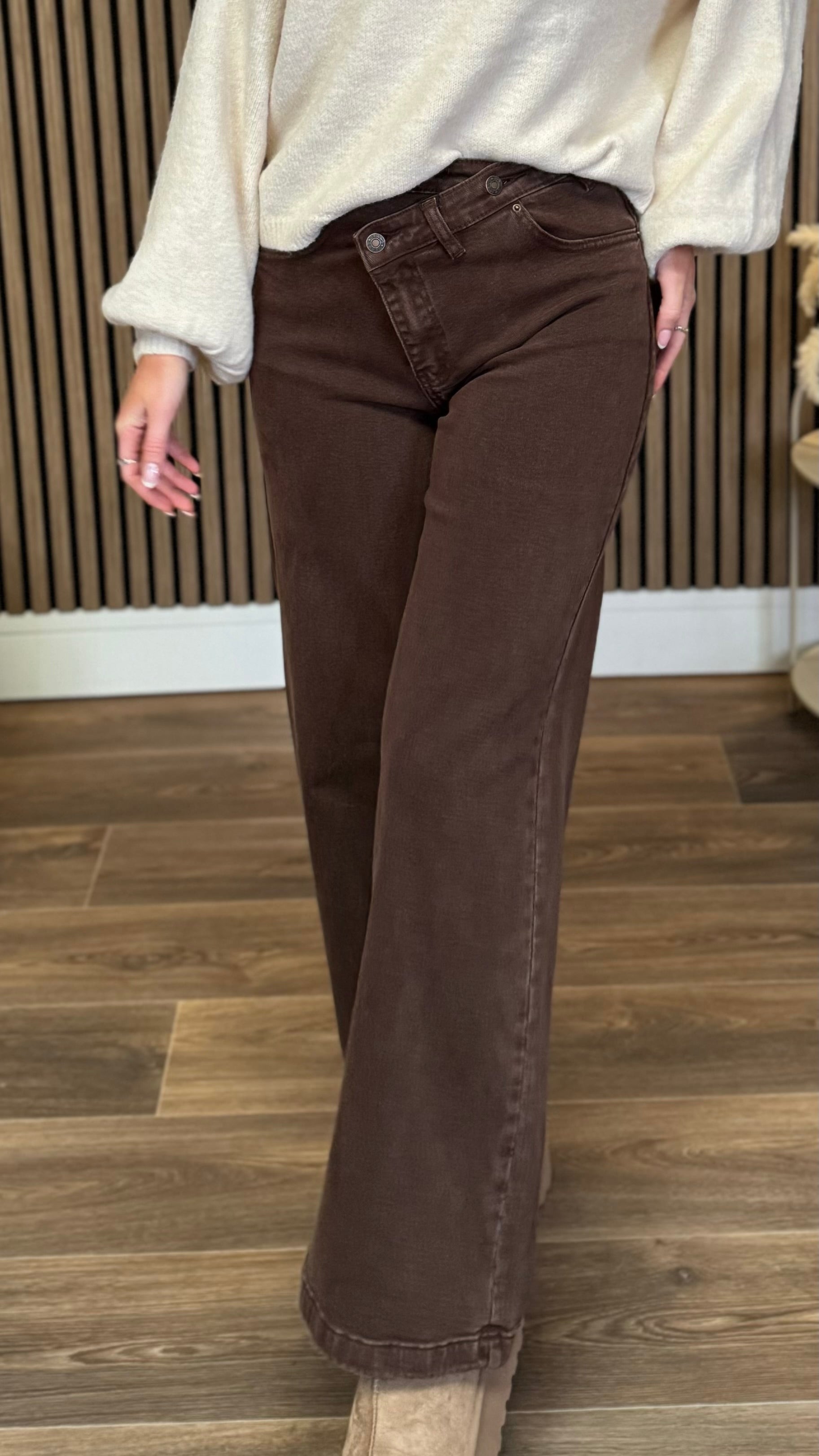 Kehlani Brown Overlap Waist Dad Fit Jeans