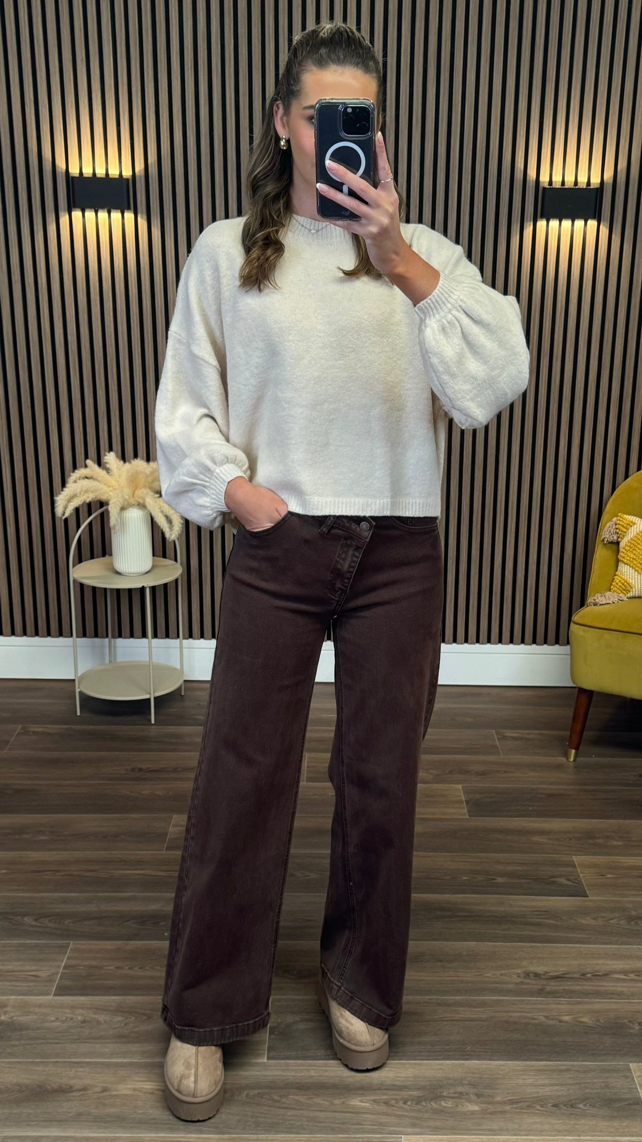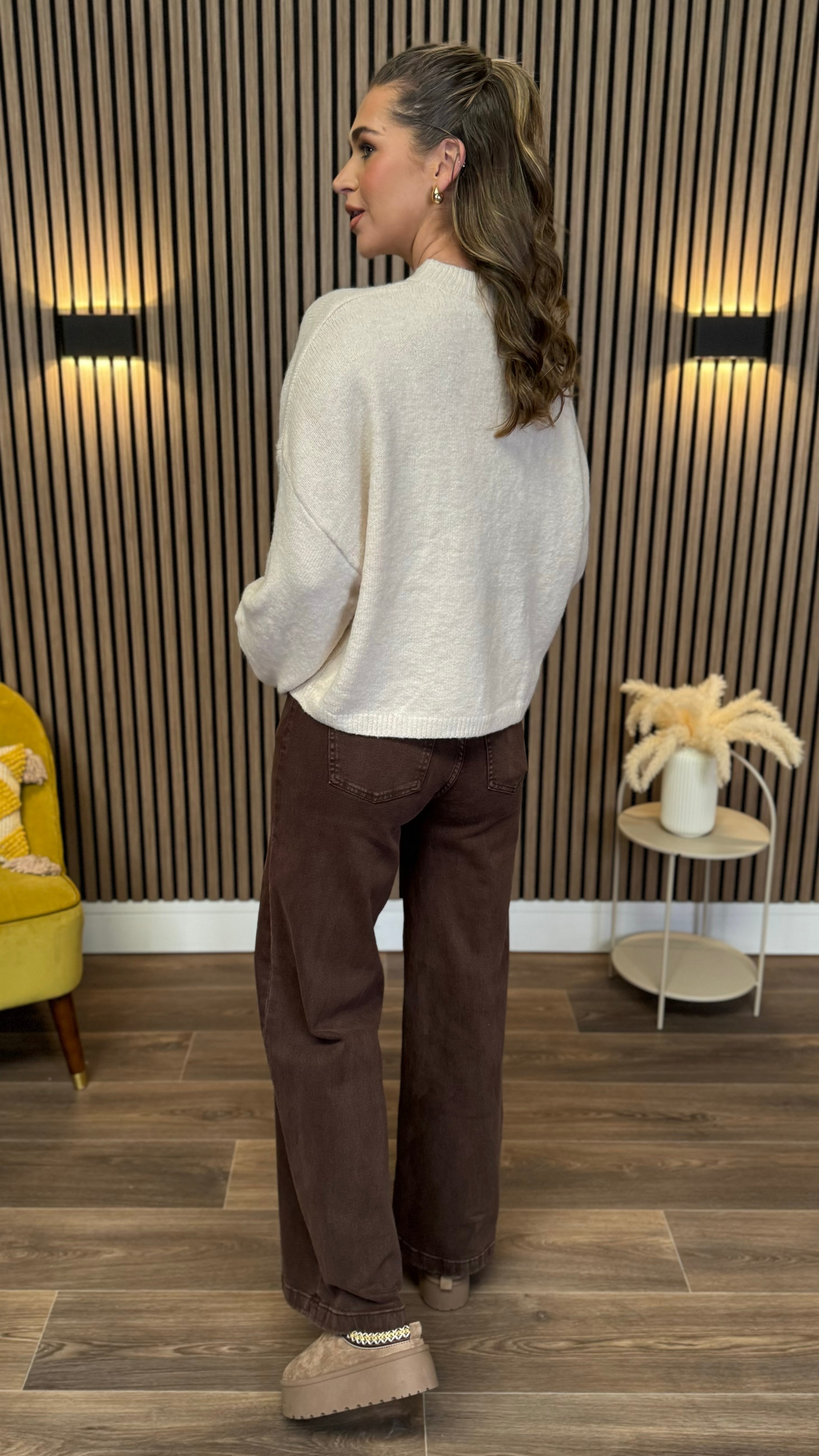 These Kehlani Brown Overlap Waist Dad Fit Jeans bring playful charm with their unique asymmetric overlap waistline, designed to flatter your figure effortlessly. The loose straight fit offers relaxed comfort while keeping your style on point. Practical pockets add convenience, and the front button and zip closure make slipping them on a breeze. Perfect for mixing comfort and cool in one stylish package.