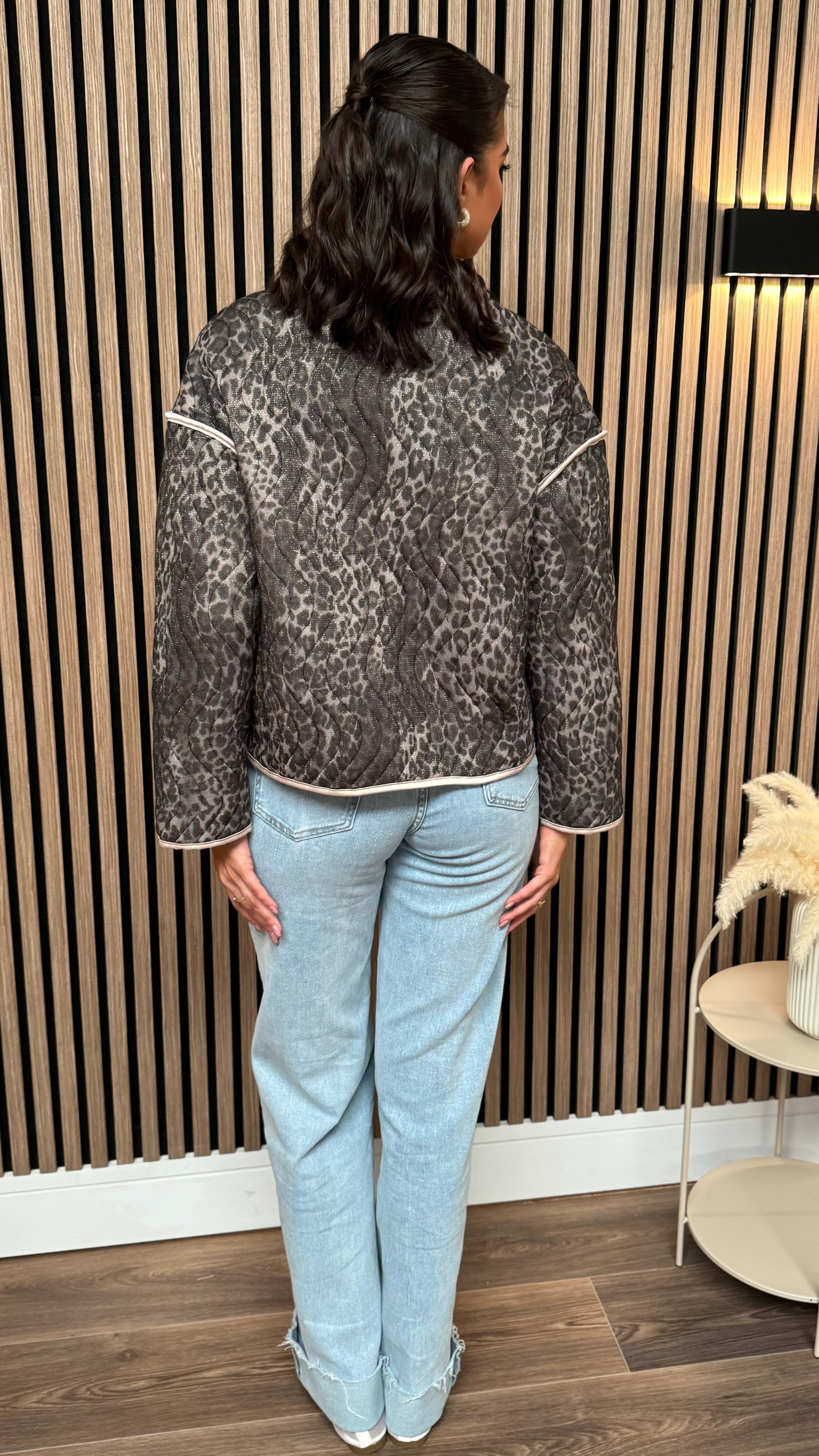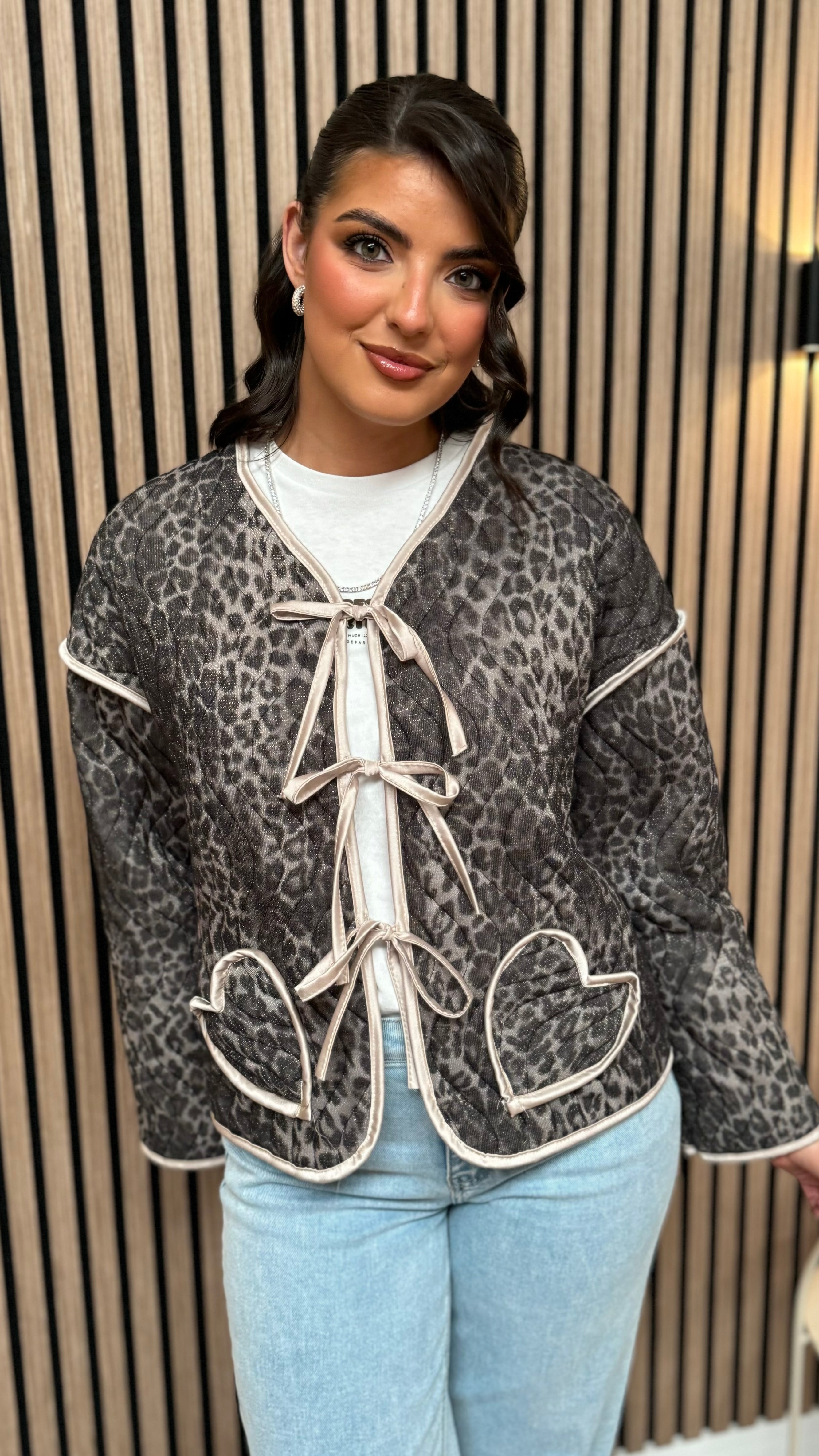 Coen Beige & Black Leopard Print Bow Detail Jacket