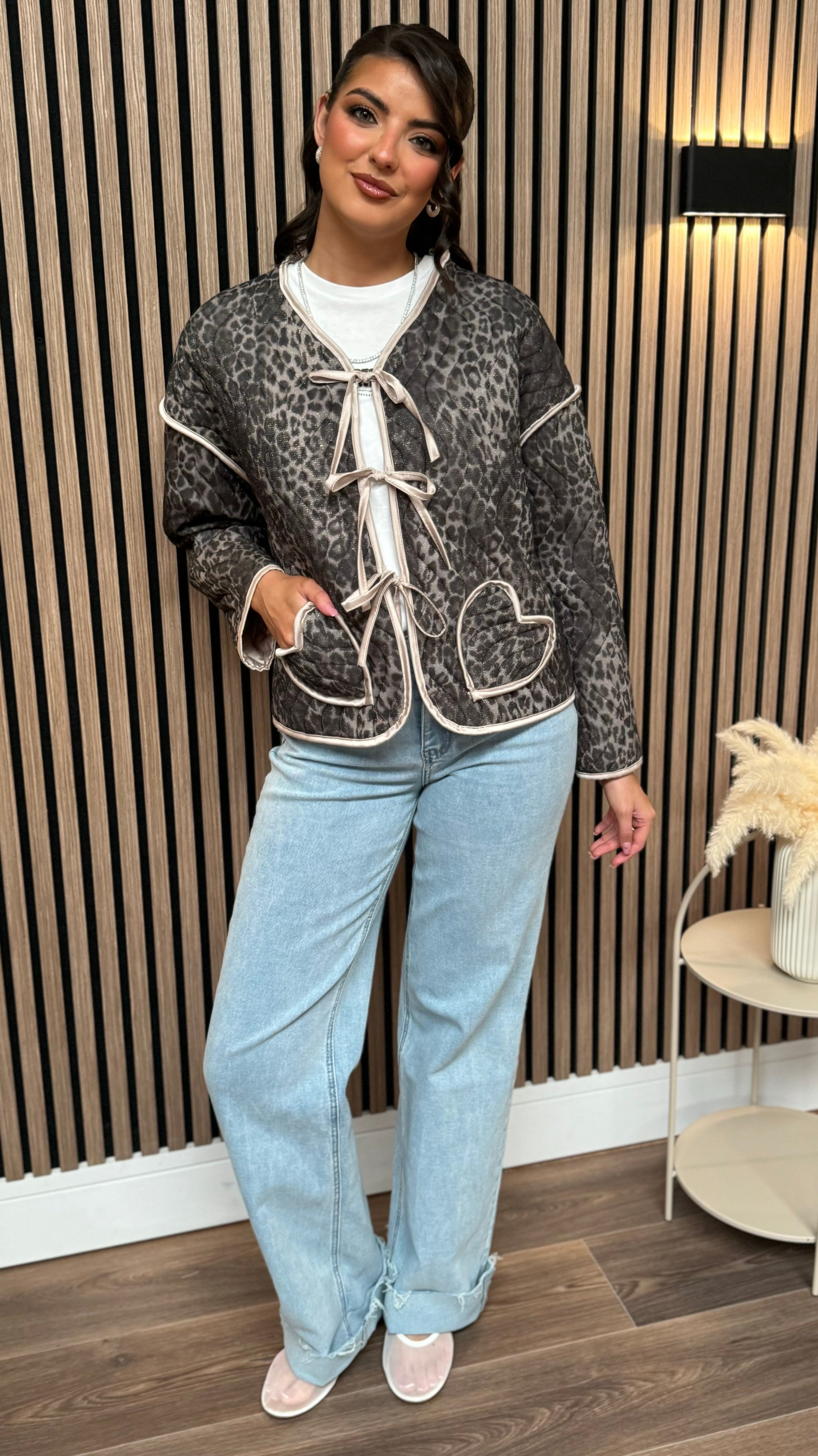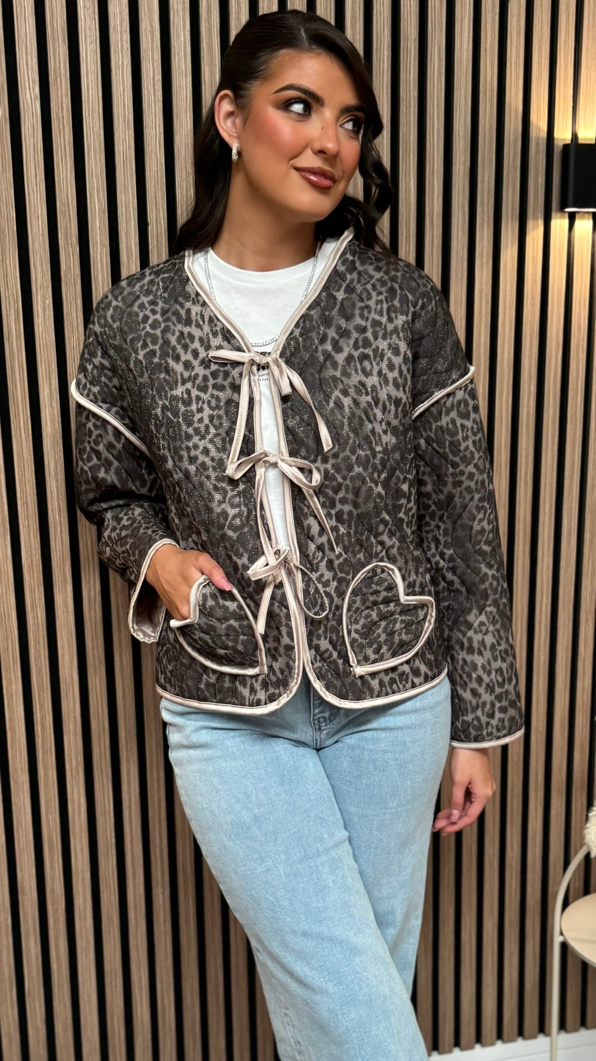 Get ready to add some wild style to your wardrobe with the Coen Beige & Black Leopard Print Bow Detail Jacket! This light spring jacket features a playful leopard print and sweet bow detail, perfect for those who want to make a statement. Don't miss out on this unique and fun addition to your closet! 🐆🎀