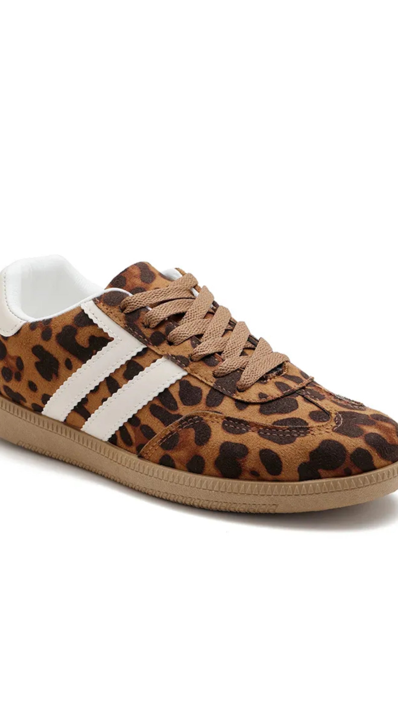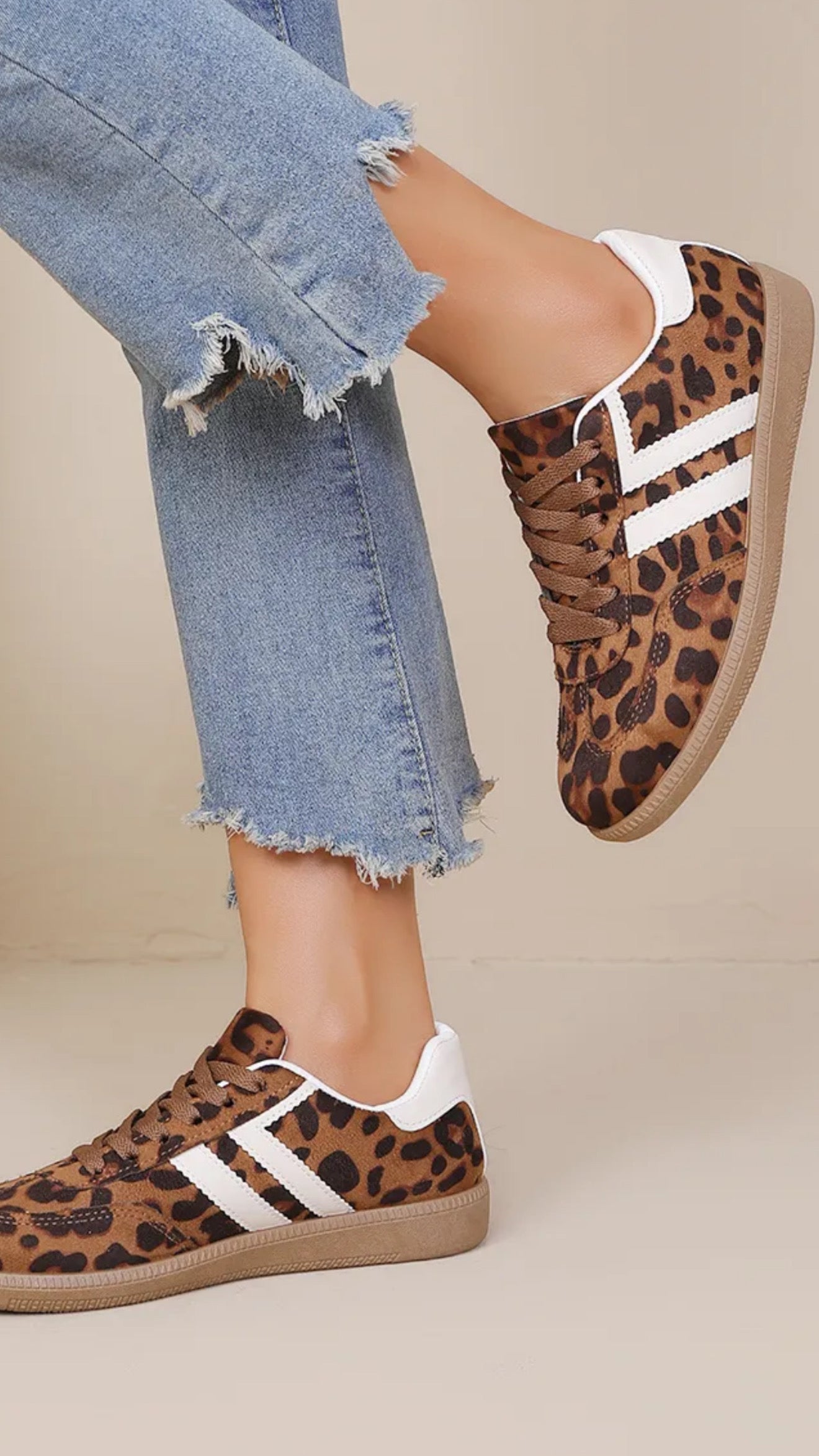Step out in style with the Kianna Leopard Print & Beige Striped Trainers! These eye-catching sneakers blend wild leopard spots with chic beige stripes for a fun, fashion-forward look. Perfect for adding a playful twist to any outfit, they offer comfort and flair wherever you go. Let your feet do the talking and turn heads with every step!