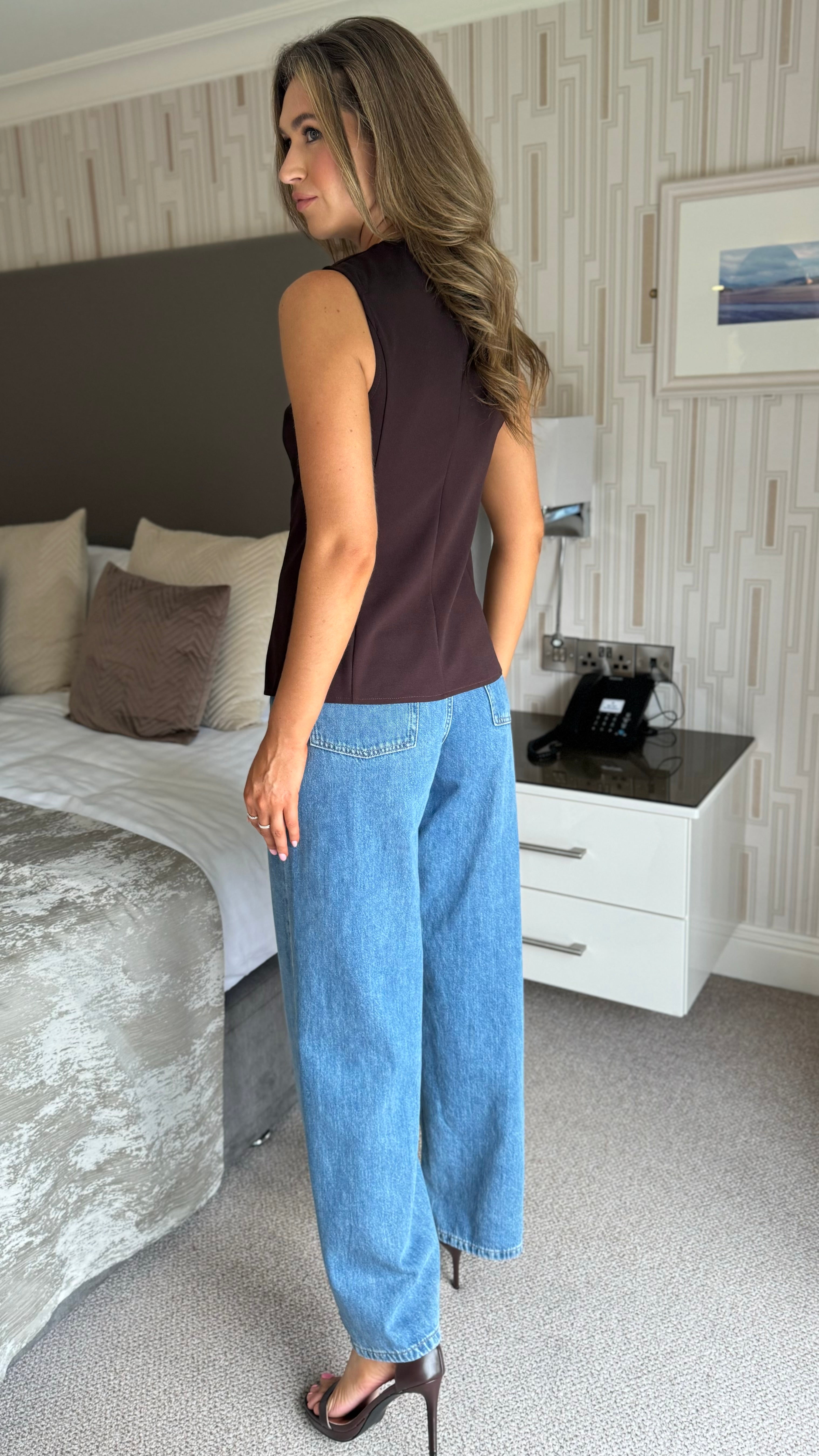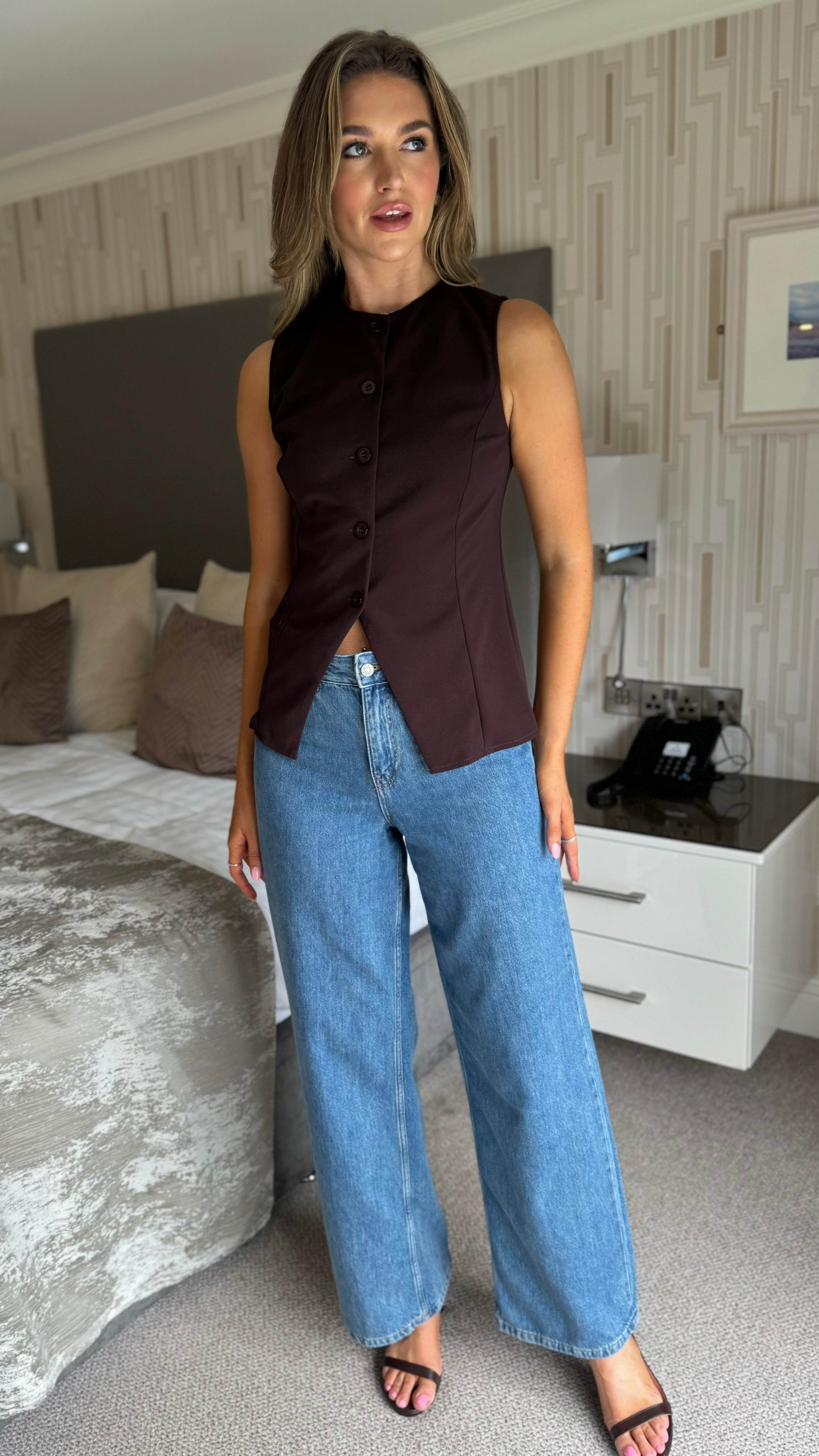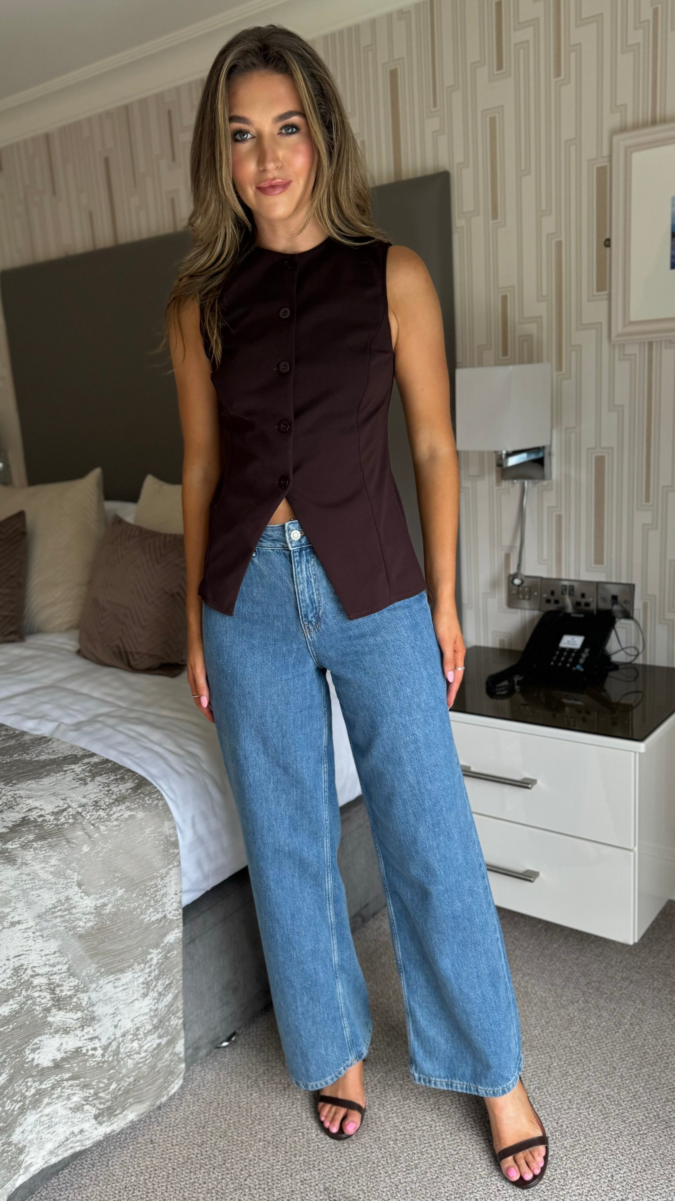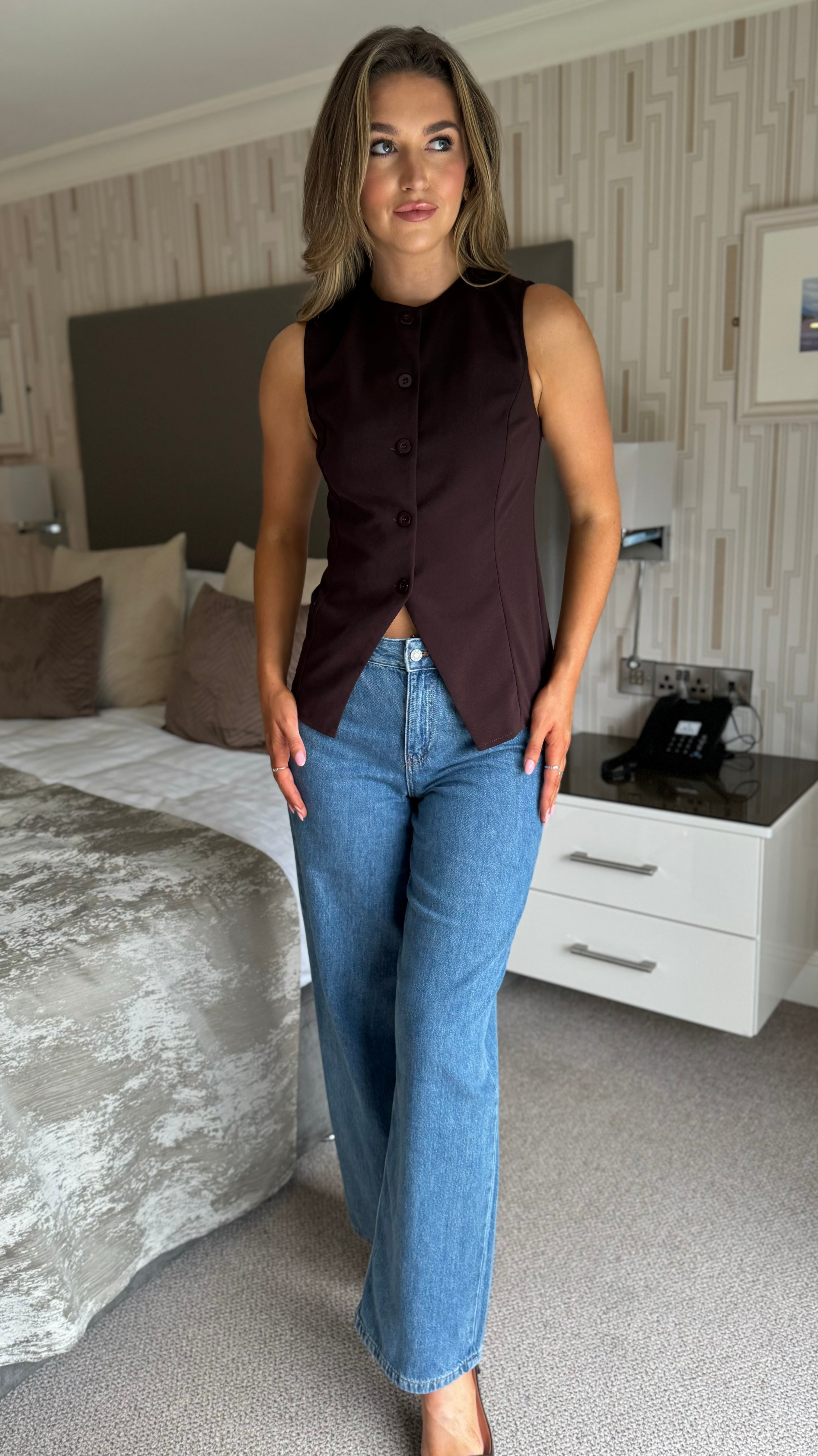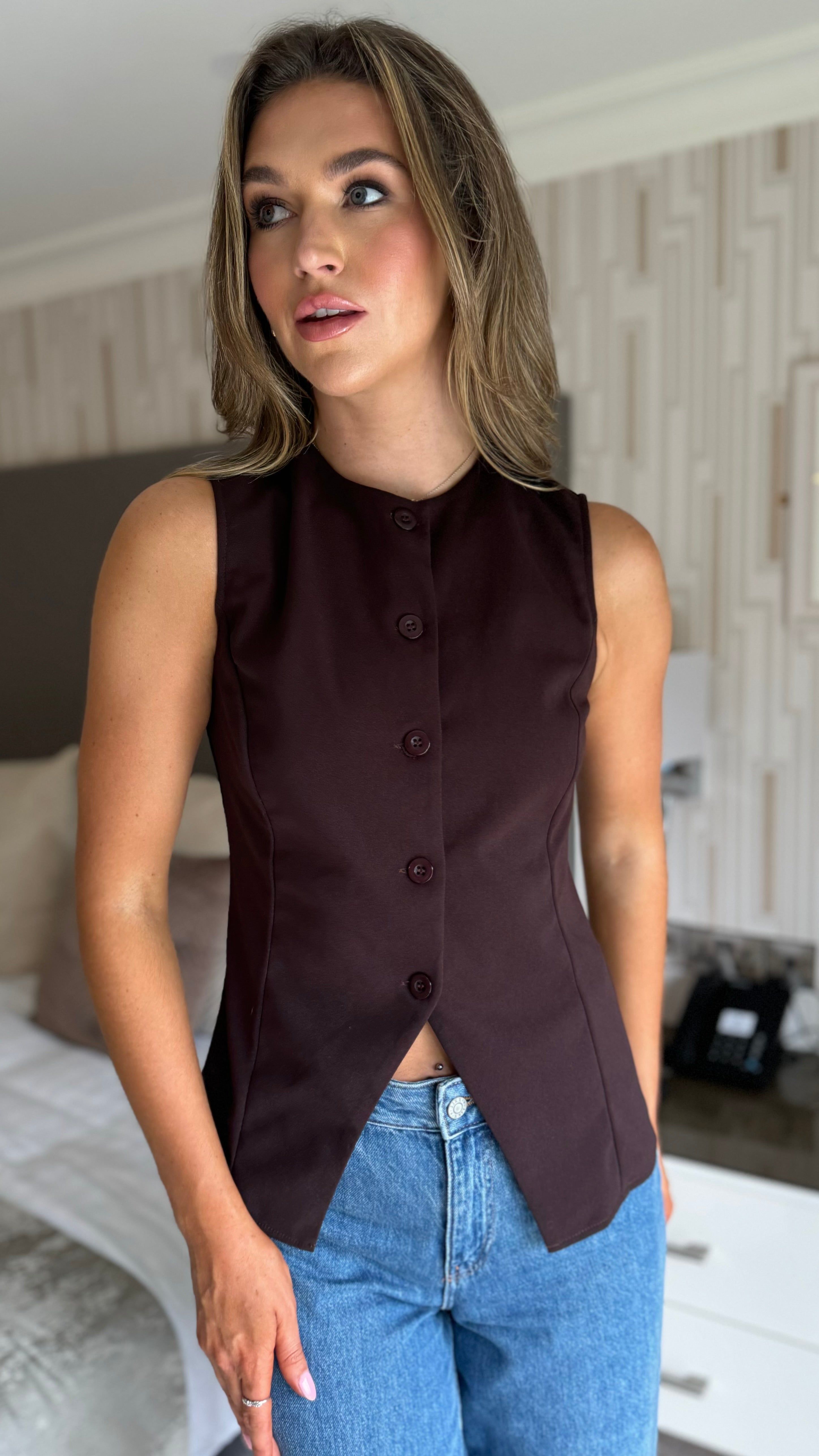 Elevate your style with the Samantha Chocolate Brown Longline Waistcoat! 🍫 This soft, fitted waistcoat features a sleek button front and a flattering round neckline. Perfect for layering—pair it with jeans and boots for a casual vibe or dress it up with a skirt and heels for a night out! ✨👢👗 A versatile addition to brighten any outfit.