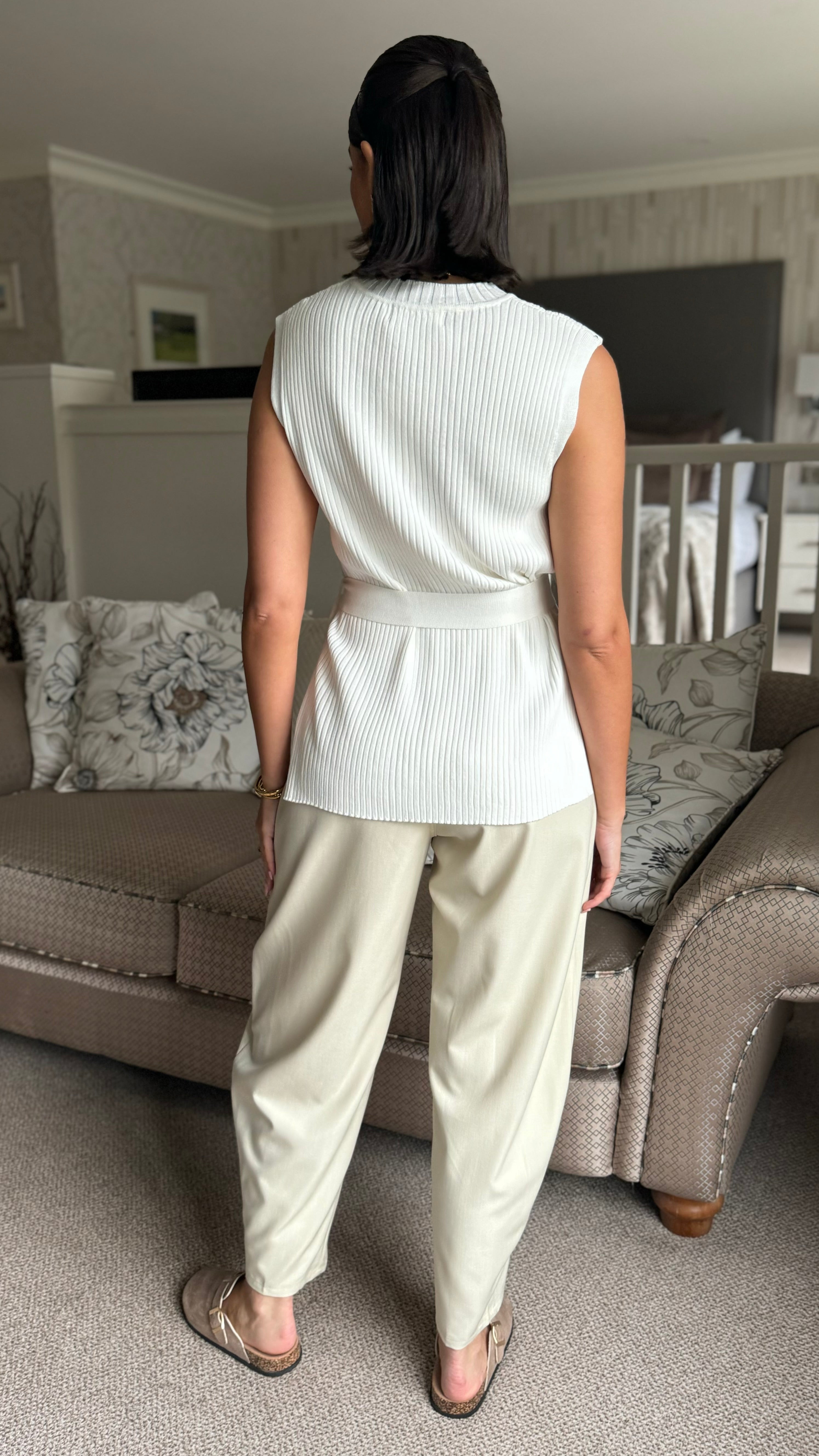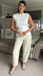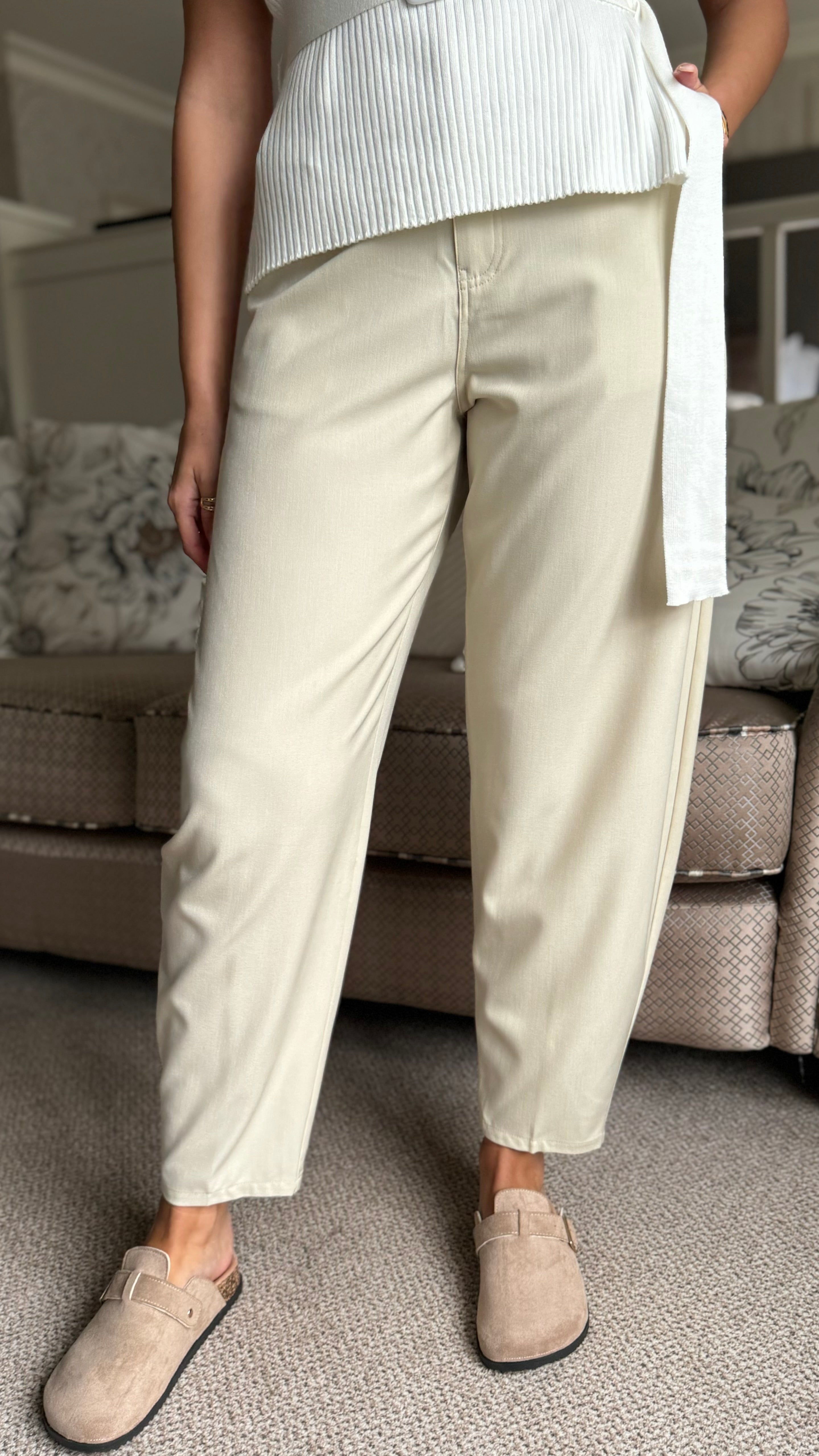 Della Beige High Waisted Cigarette Style Trousers