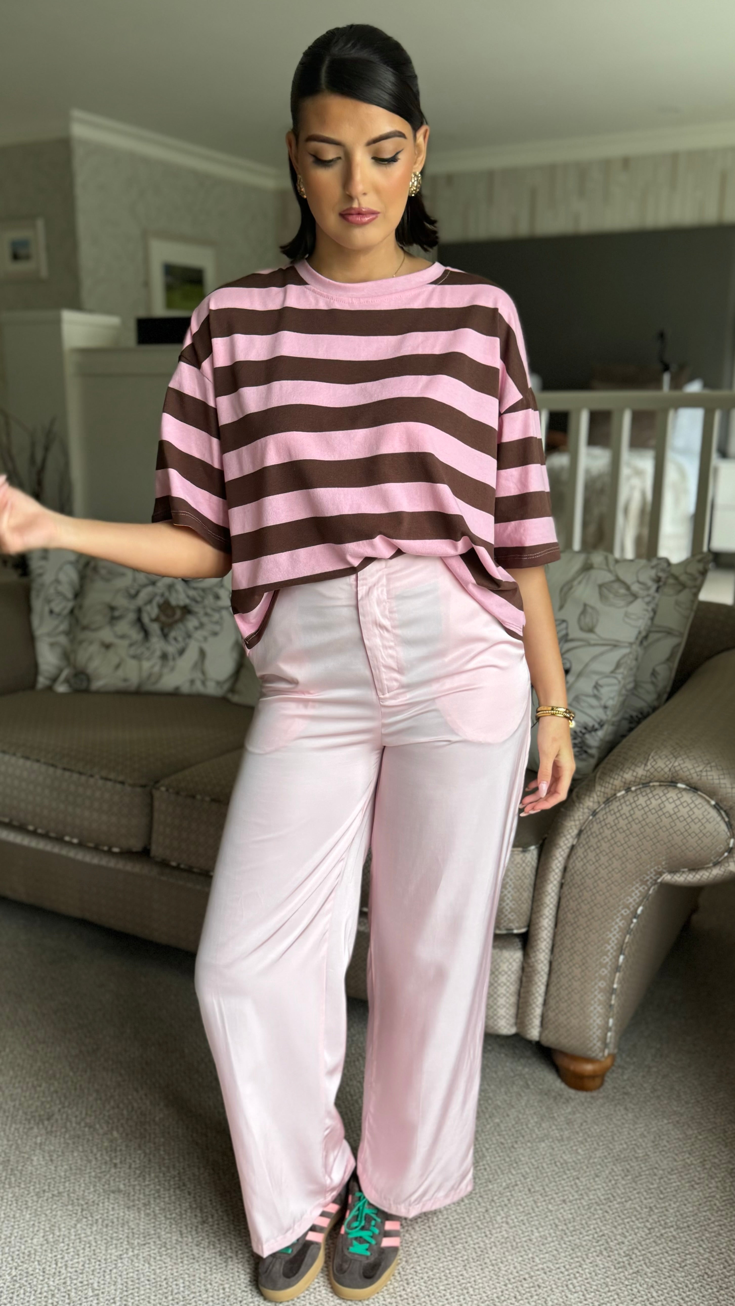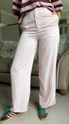 Elevate your everyday wardrobe with these Emelia wide leg trousers in soft baby pink. Designed for comfort and style, they feature a smooth finish that drapes beautifully, a convenient zip fastening, and discreet side pockets for practical ease. The relaxed wide leg silhouette offers a contemporary, flattering fit that works seamlessly from office to weekend. A versatile piece that pairs effortlessly with everything in your closet.