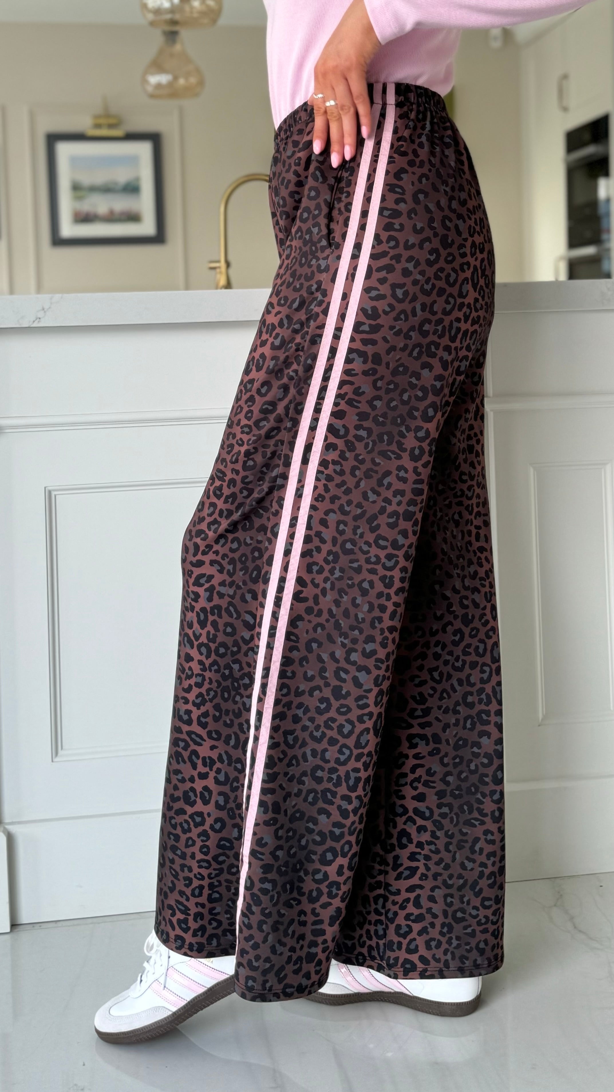 Maggie Leopard Print PINK Stripe Trousers