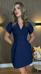 Irene Navy V Neck Puff Sleeve Mini Dress