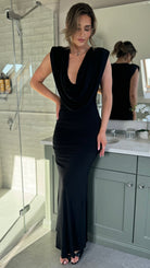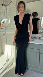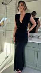 Serenity Black Slinky Cowl Neck Maxi Dress