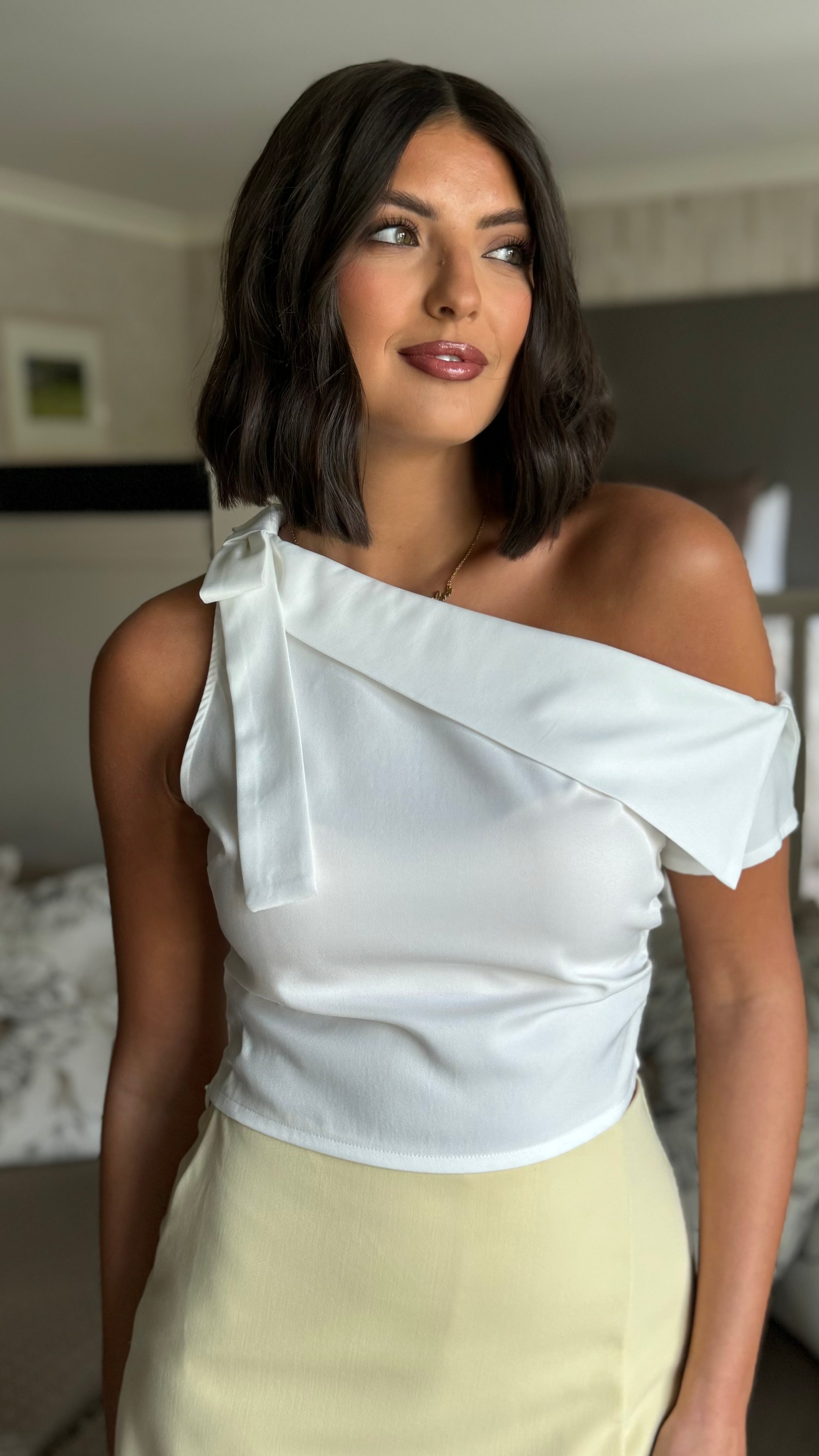 Meet your new go-to top! 🤍 This crisp white beauty features an eye-catching bow detail that adds instant charm and personality to your everyday look. Whether you're dressing it up for a night out or keeping it casual with your favourite jeans, this versatile piece delivers style with a playful twist. 🎀 Simple, chic, and utterly adorable! ✨