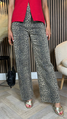 Adley Beige & Black Leopard Print Dad Fit Mid Rise Jeans 🐆 Experience a wild wardrobe upgrade with these stylish jeans! Featuring a mid-rise waist design, wide leg fit, and front button & zip closure, these leopard print jeans are perfect for fashionistas looking to make a bold statement. Soar with confidence in these dad fit jeans!