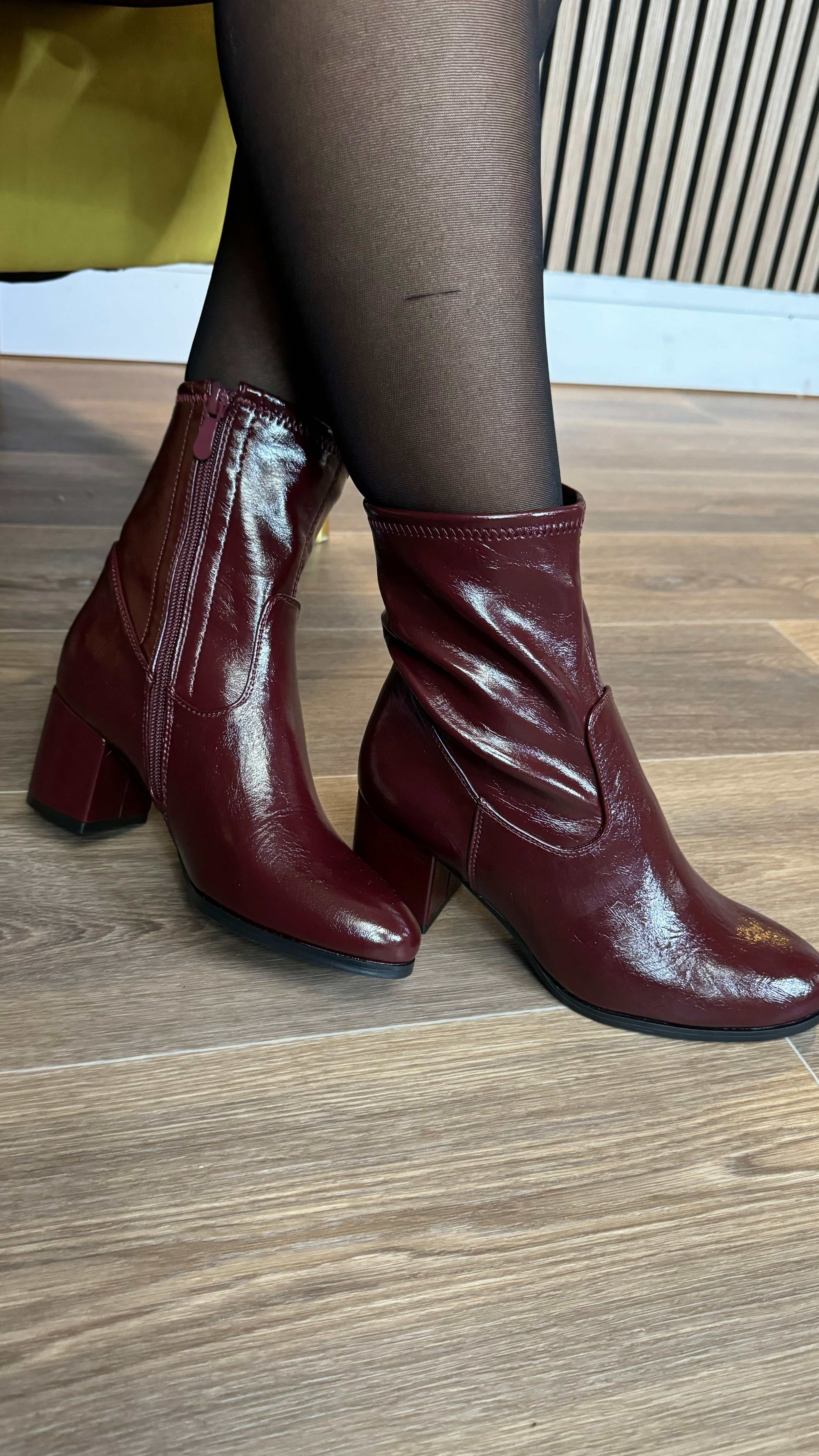 Adriana Burgundy Patent Leather Look Ankle Boots