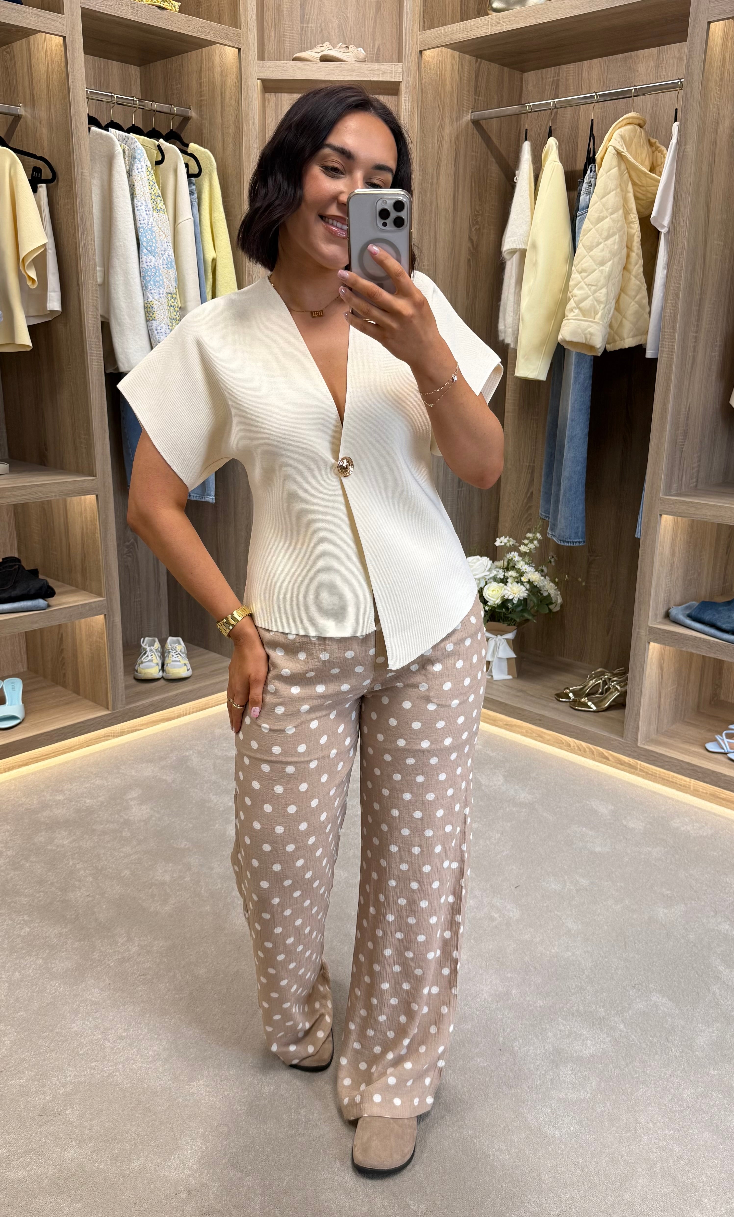 Slip into effortless style with this charming kimono cardigan! Featuring a flattering v neckline and soft, cozy knit fabric that feels like a warm hug, it's perfect for layering over your favorite outfits. The gleaming gold button closure adds a touch of glamour, while the short sleeves keep things breezy and versatile.