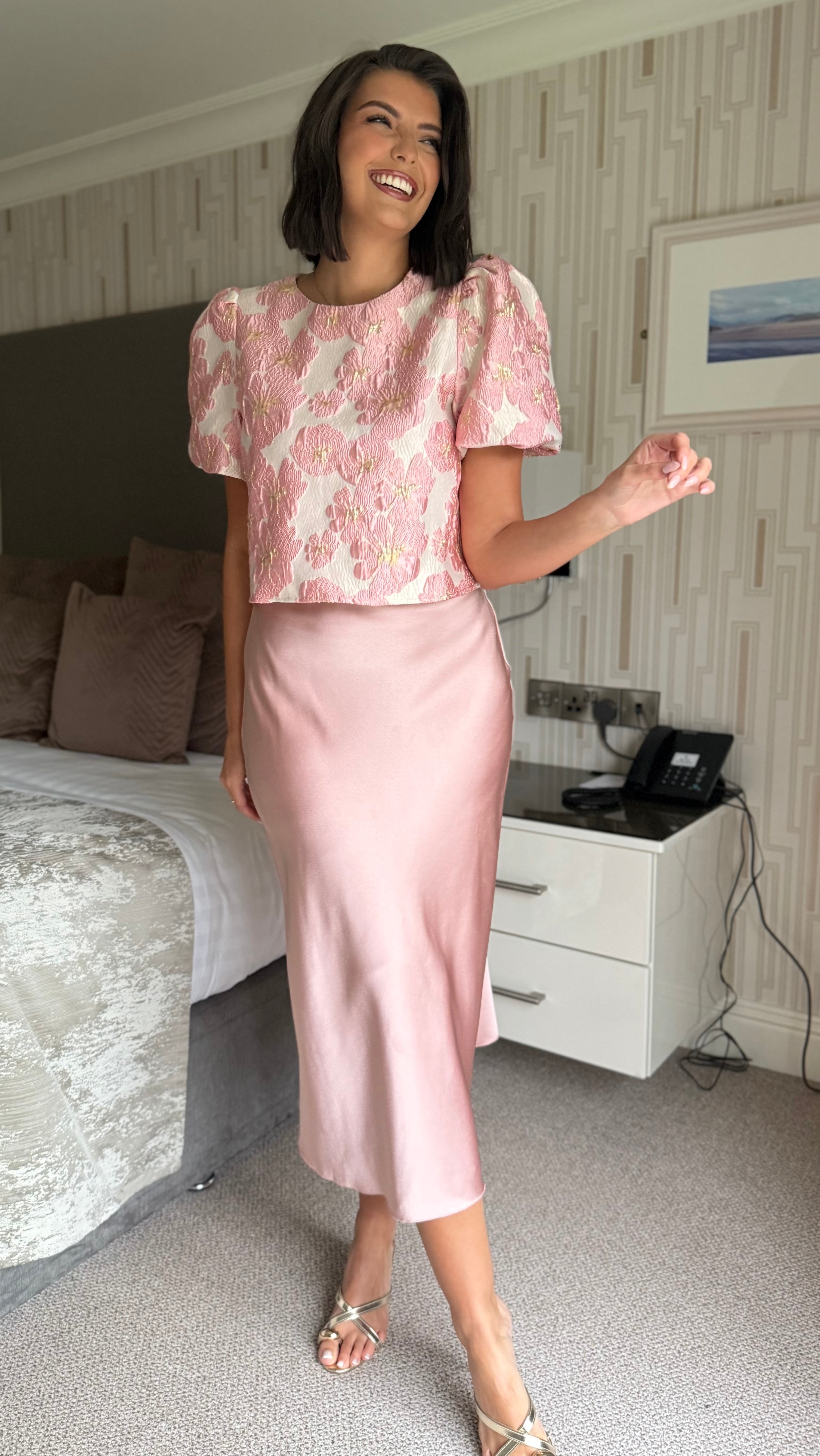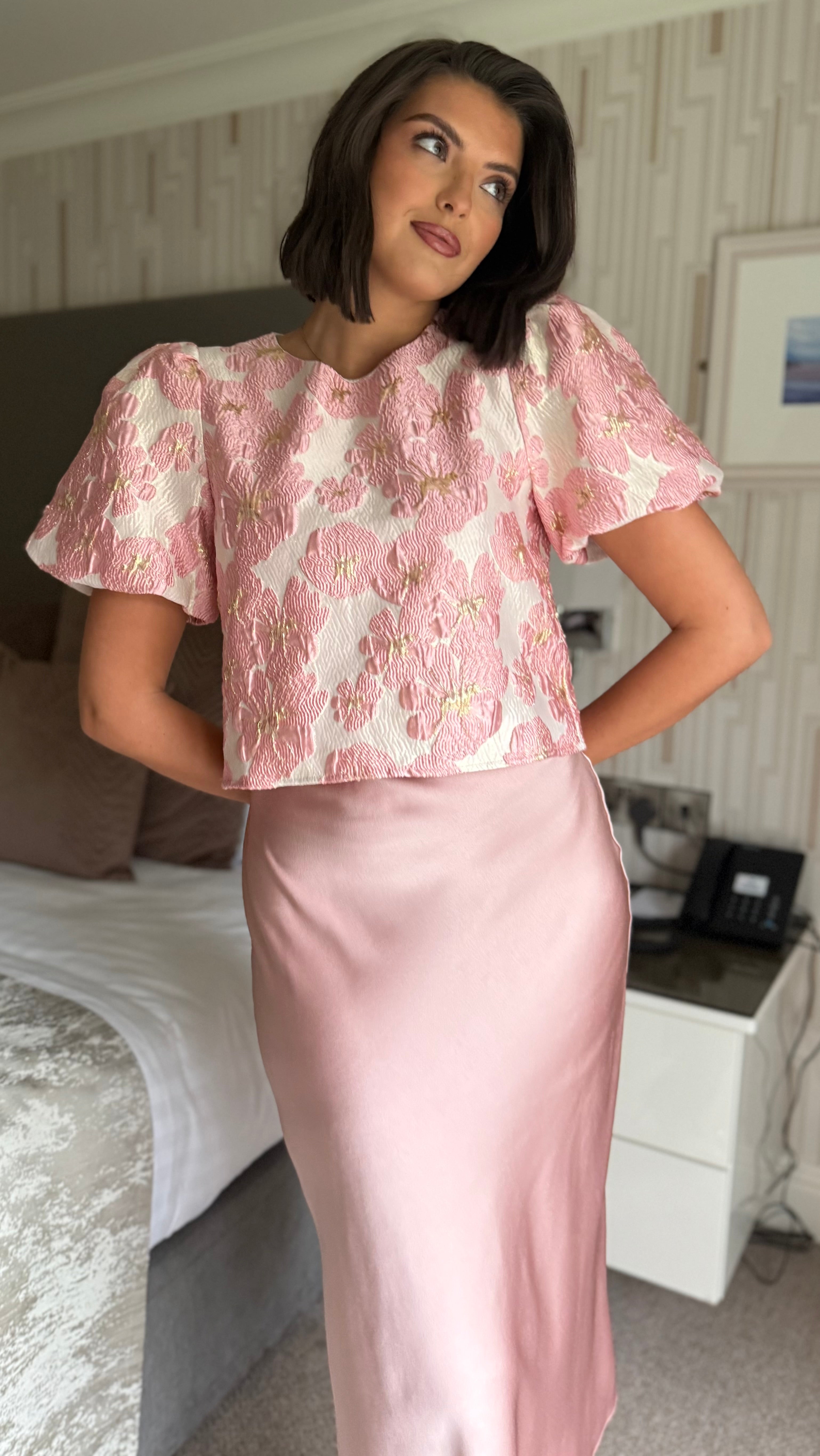 Anaya Light Pink Floral Brocade Puff Sleeve Top