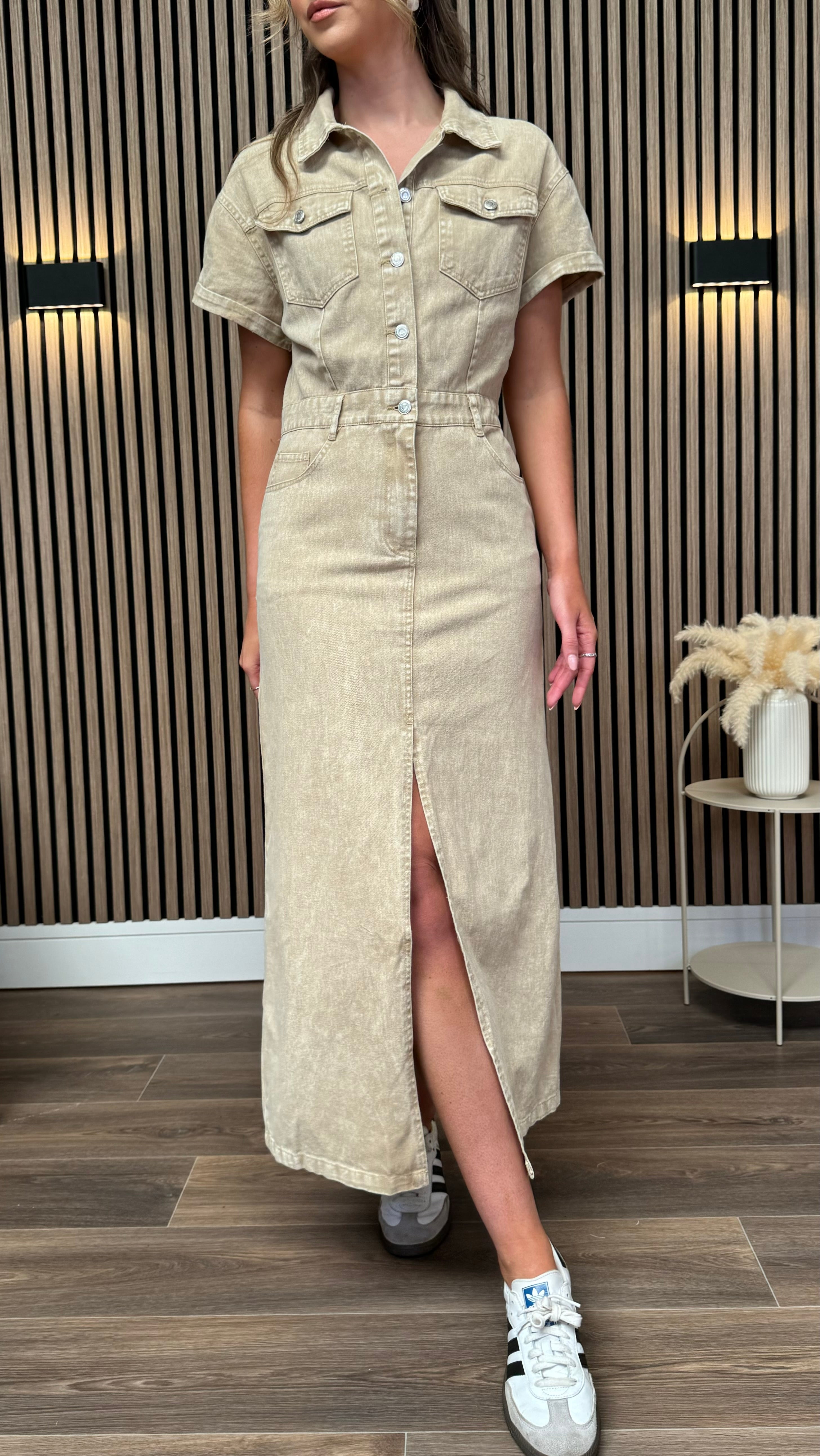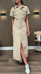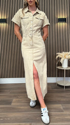 Angelina Beige Denim Midi Dress