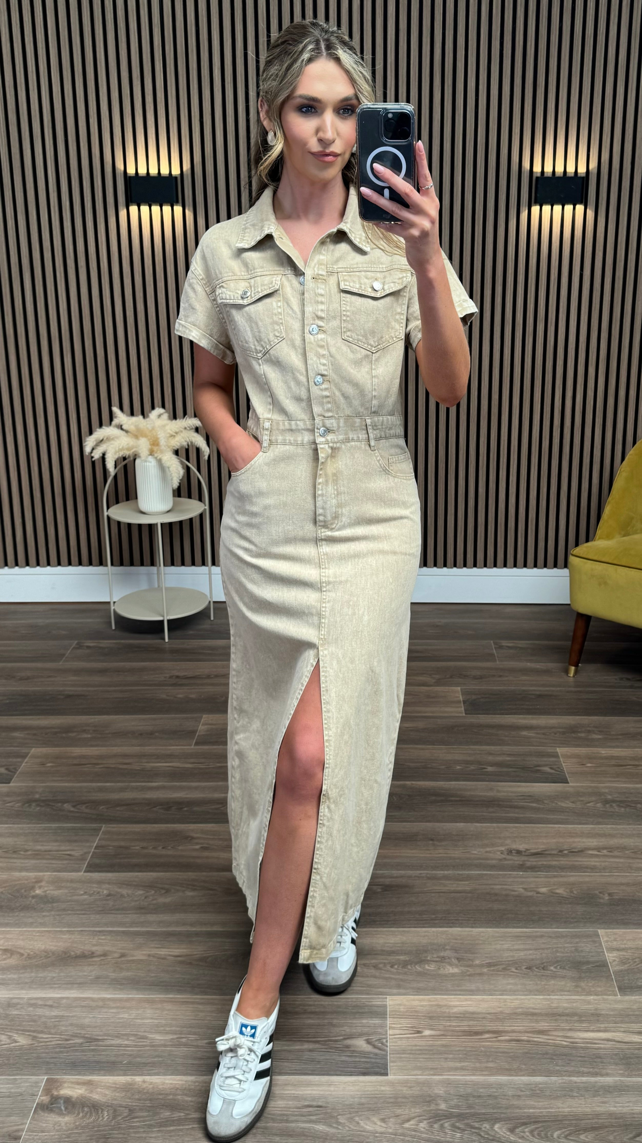 Step out in style with the Angelina Latte Denim Midi Dress! 🌟 Crafted for comfort and elegance, this dress flows beautifully while offering a flattering fit. Perfect for casual outings or special occasions, its versatile latte denim shade pairs effortlessly with your favourite accessories. Elevate your wardrobe and turn heads wherever you go! 👗✨