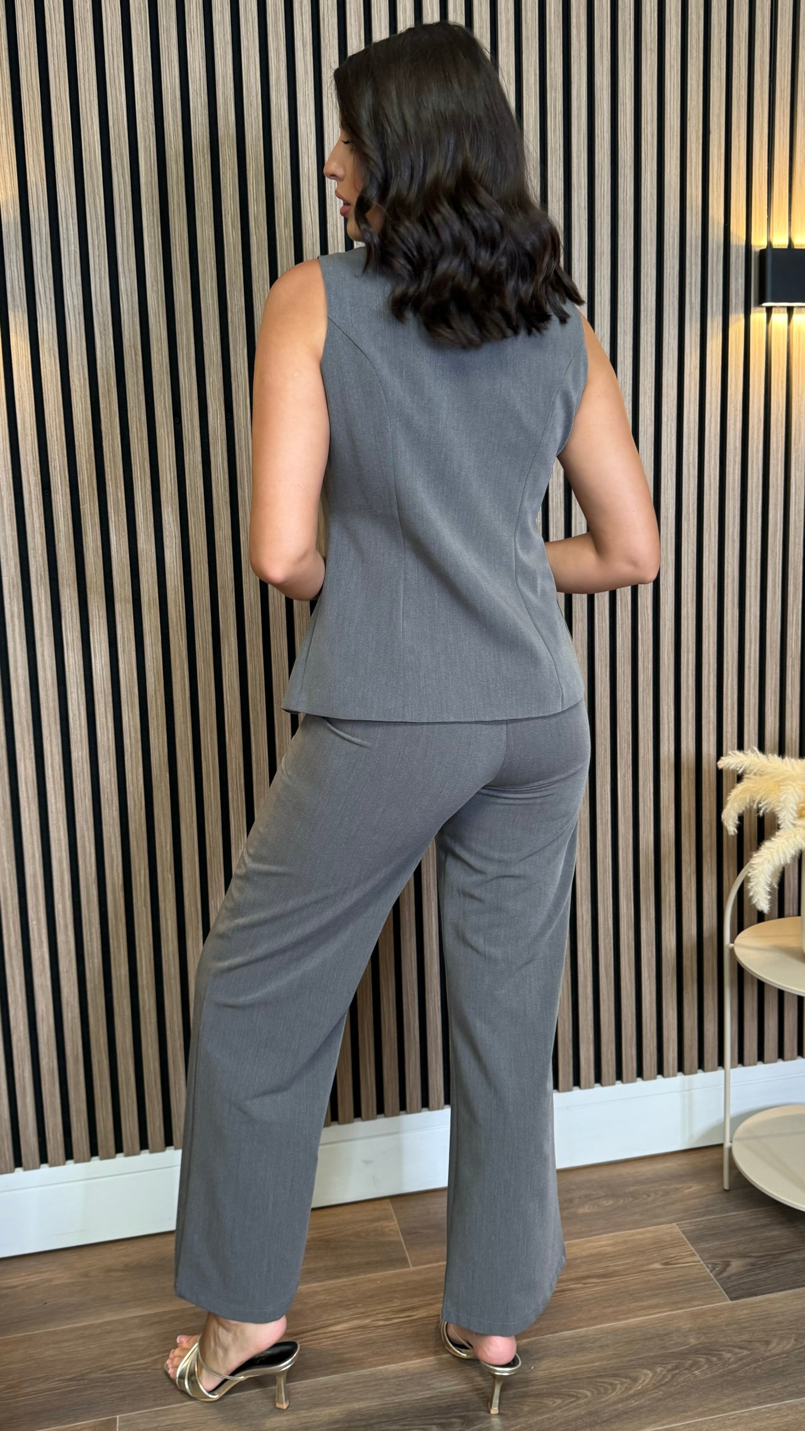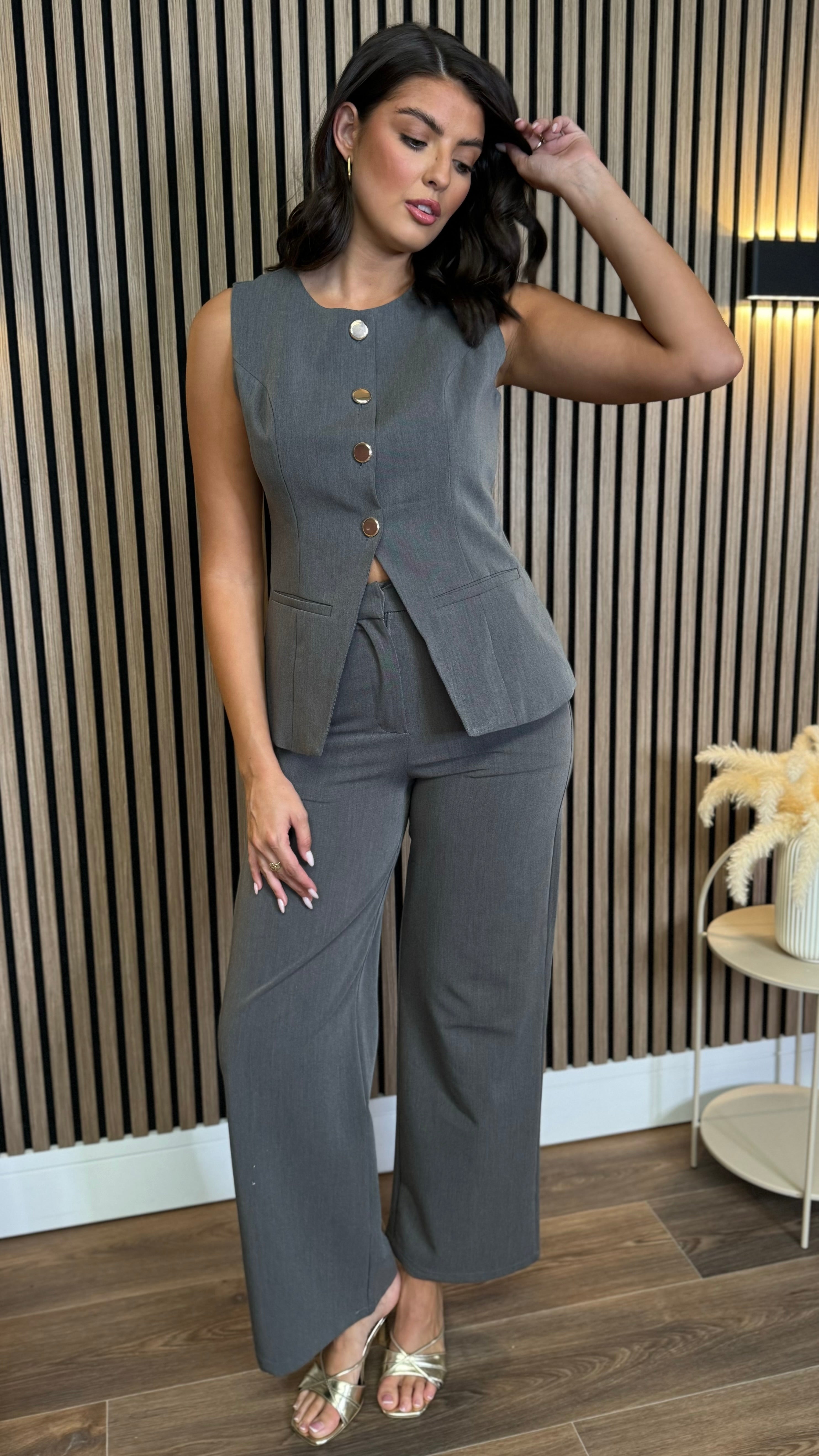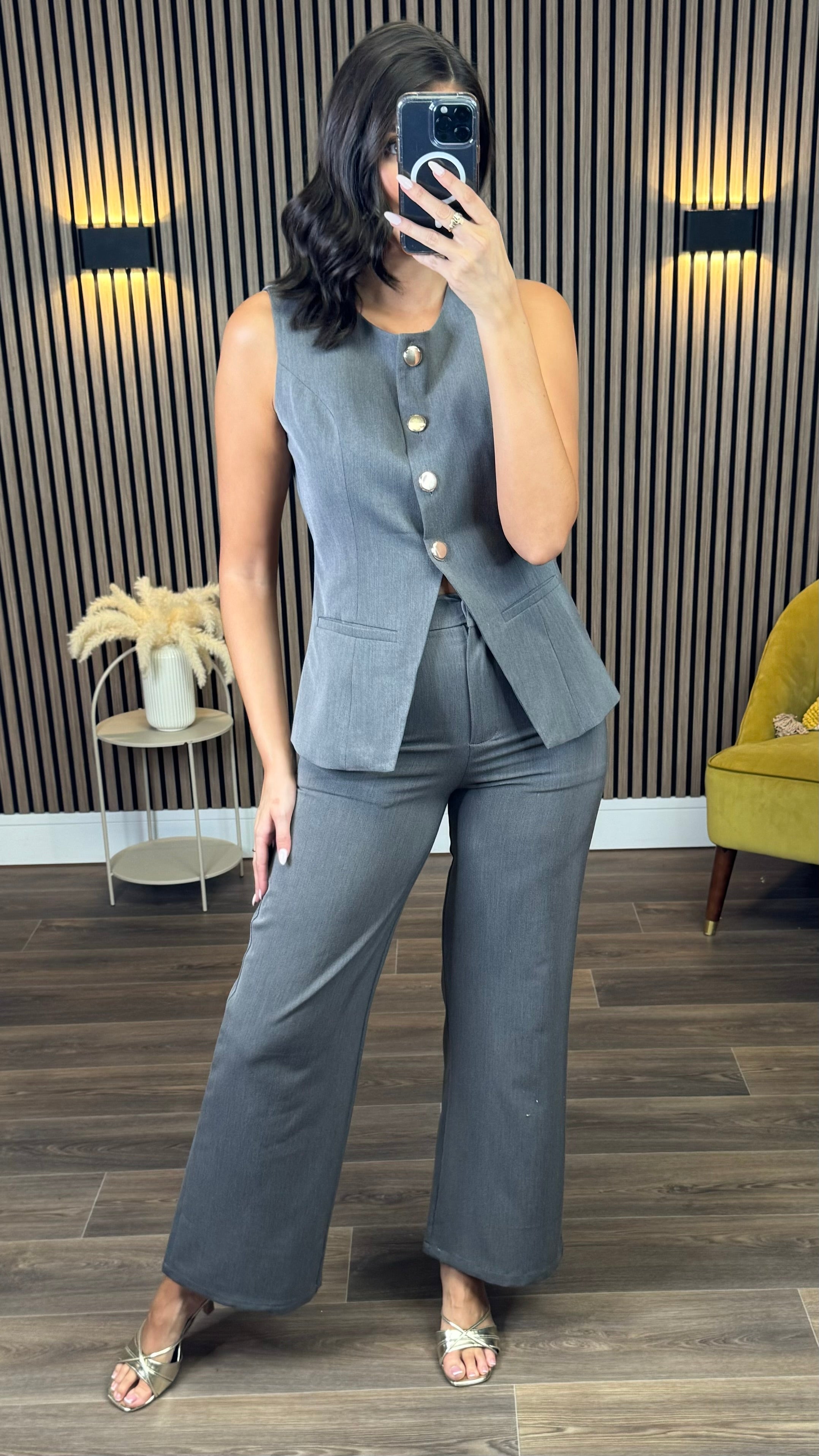 Angelina Grey Longline Gold Button Detail Waistcoat & Trouser Co-Ord