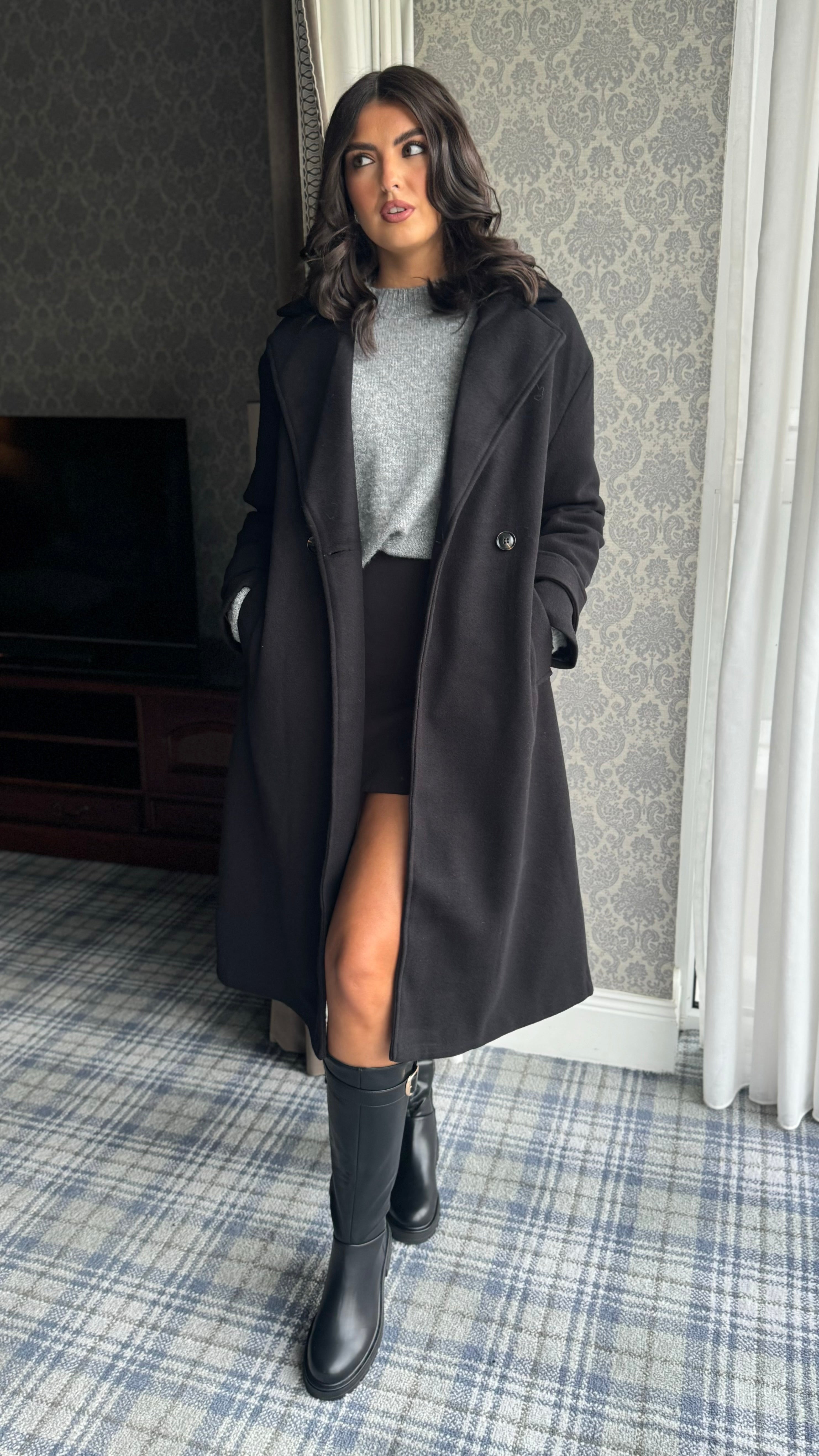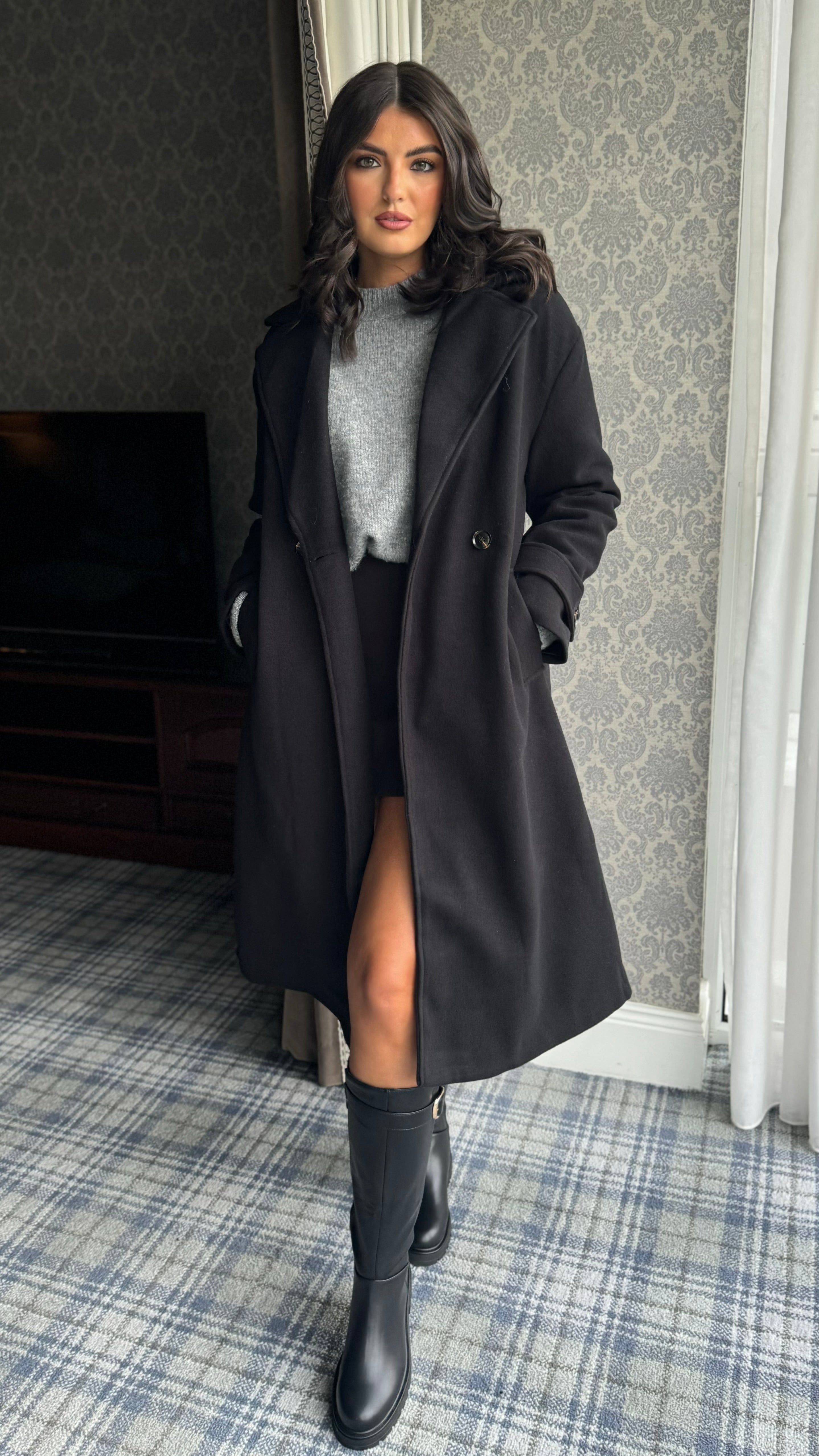 Step out in style with the Anisa Black Oversized Button Detail Coat, featuring striking buttons that pop against the rich black fabric. Enjoy functional pockets perfect for keeping your hands cozy or stashing essentials. The oversized collar adds a fun, bold twist to your look, while belted cuffs let you play with fit and flair.