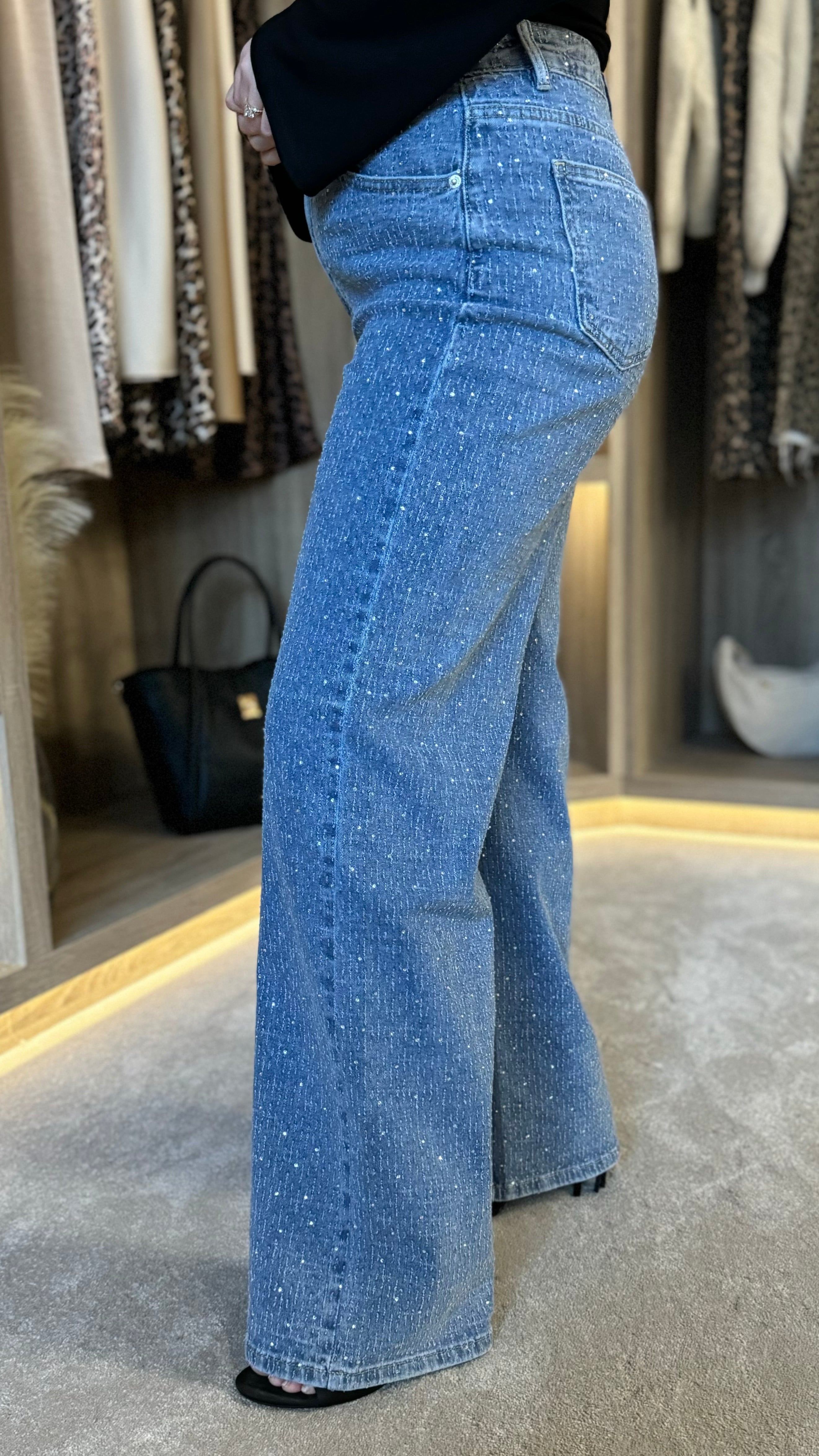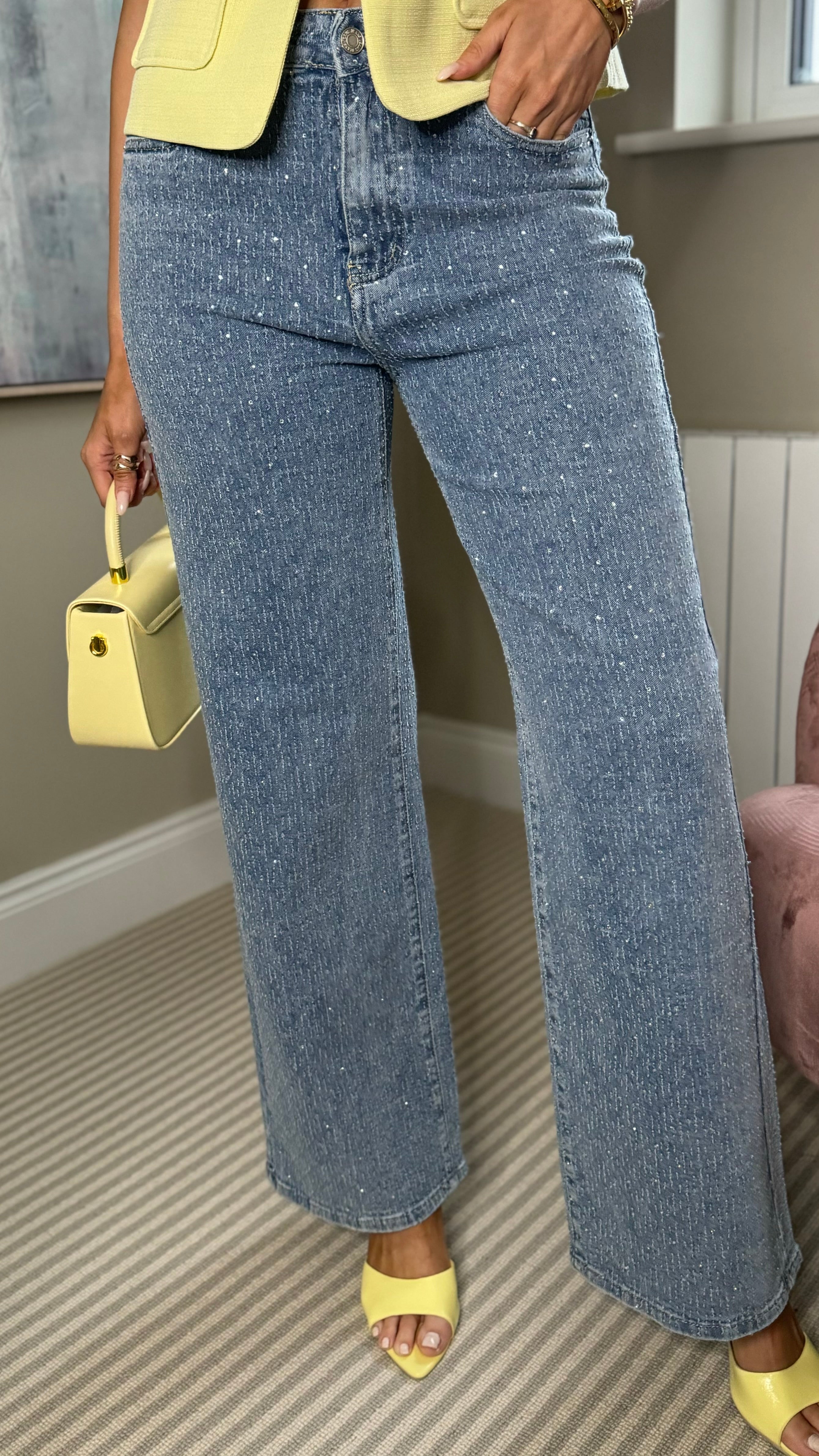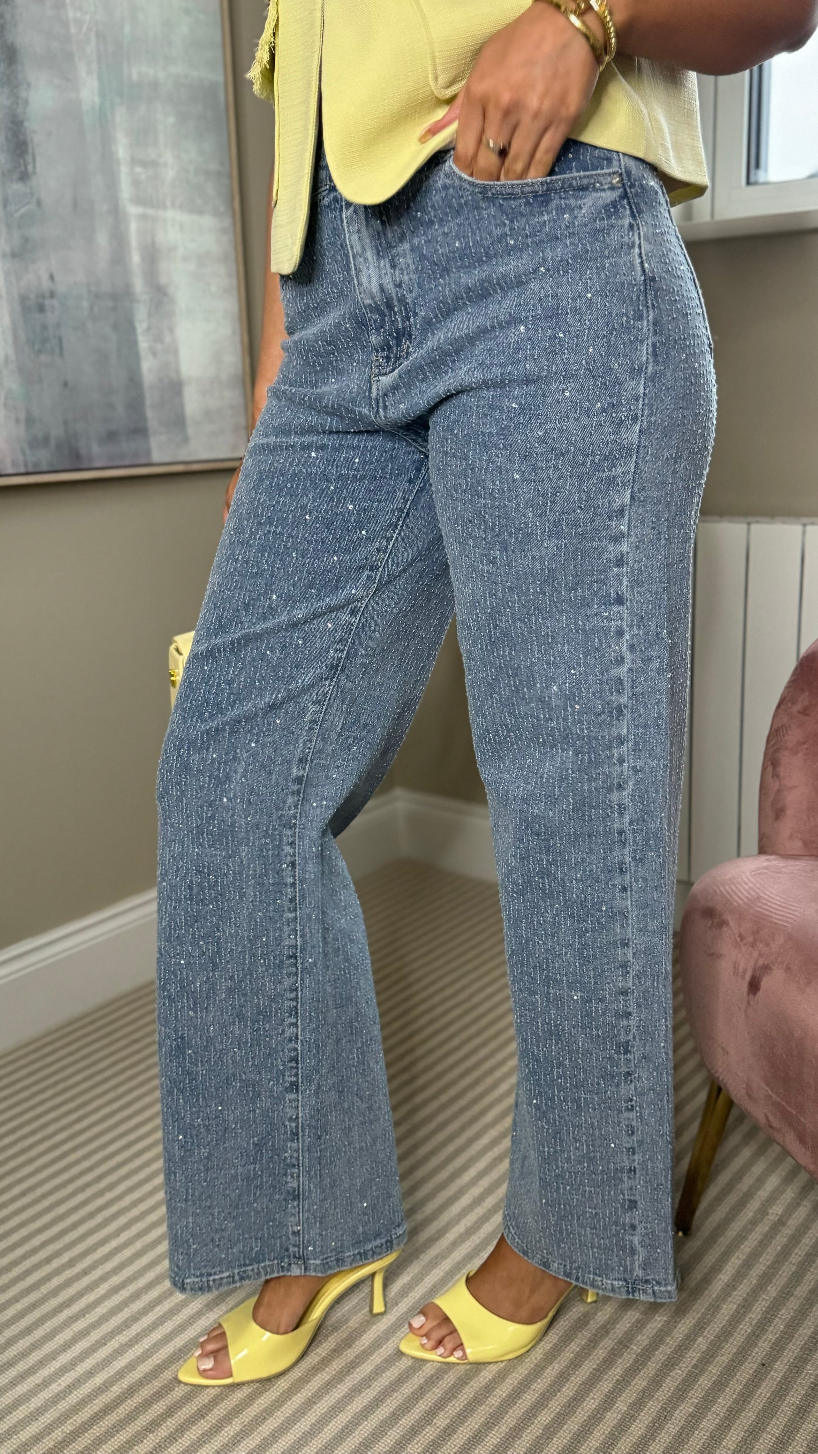 Annette Light Wash Denim Embellished Straight Leg Jeans