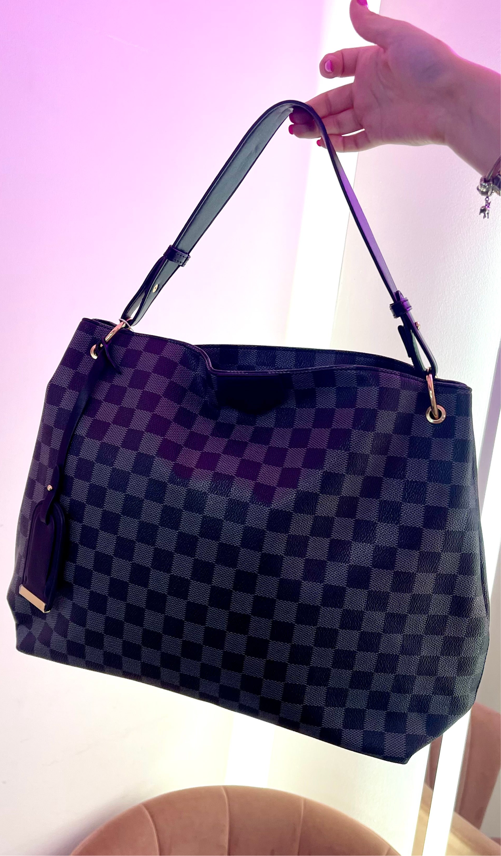 This Annie Black Checked Print Handbag offers a stylish and functional addition to your accessory collection. Its classic checked print design adds a touch of sophistication, while the spacious interior provides ample room for all your essentials. Crafted with high-quality materials, this handbag is a must-have for any fashion-forward individual. ✨